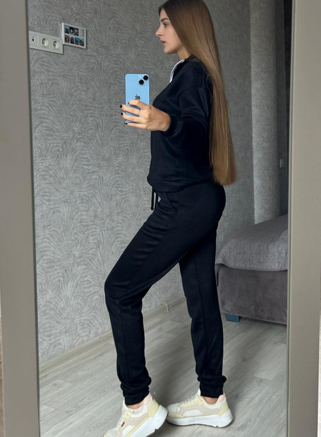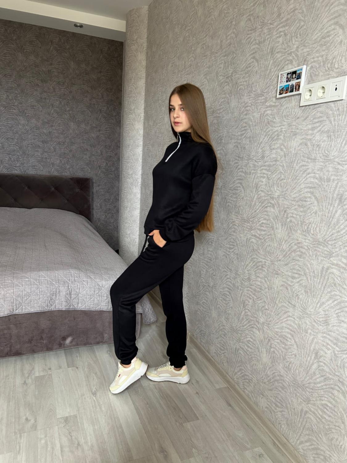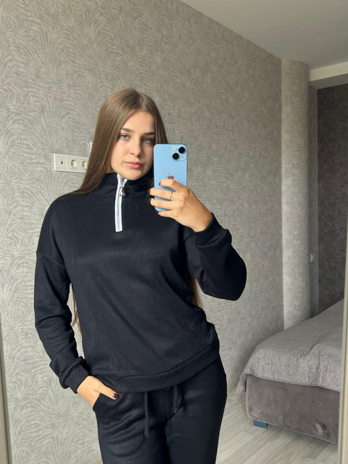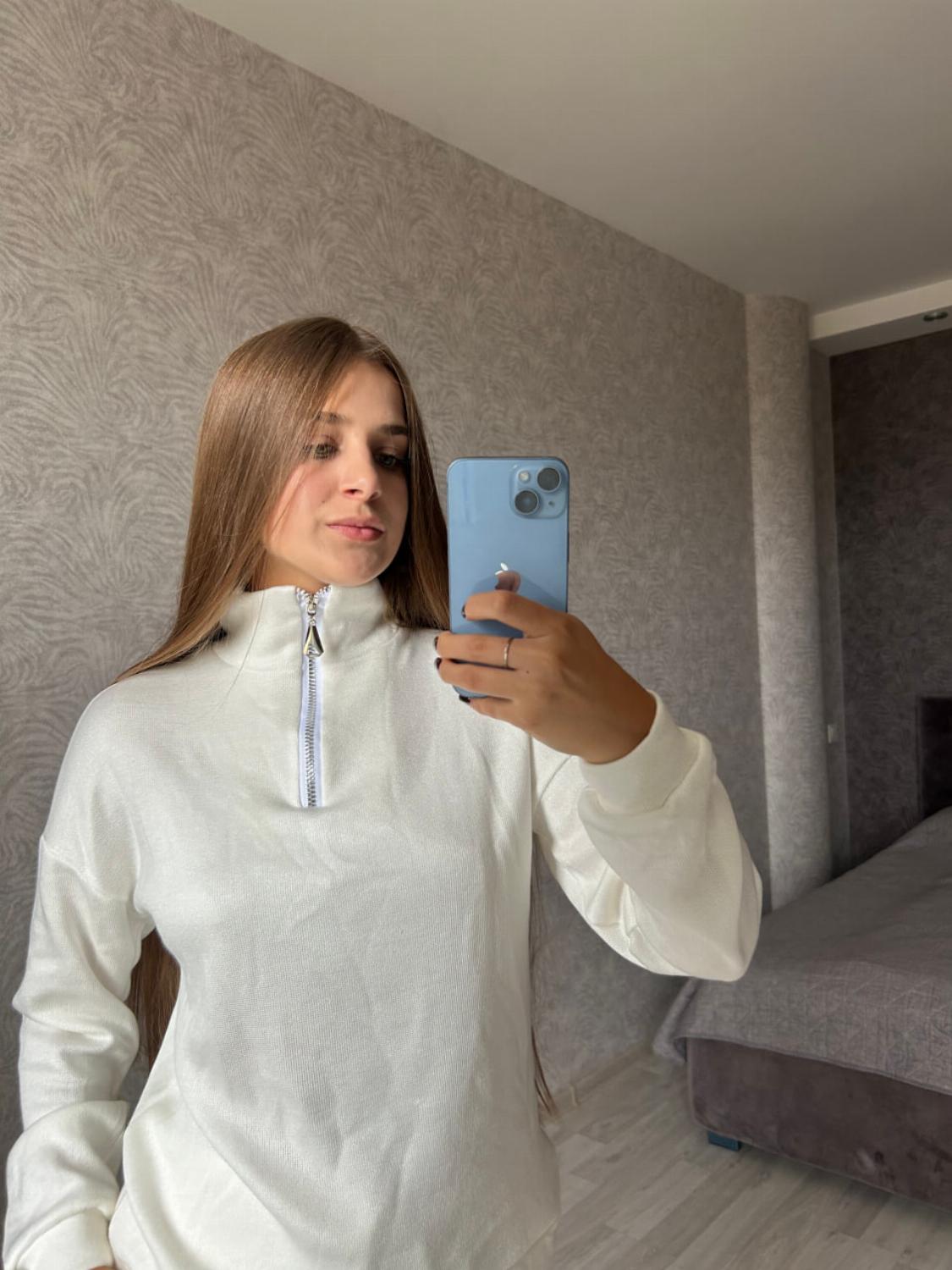 Костюм з ангори «Еладда» виконаний з приголомшливо теплої, м'якої і ніжної шерсті ангорського кролика. Виріб відмінно підкреслює фігуру, зігріває, створює благородний образ. На відміну від інших вовняних виробів, костюм з ангори дуже м'який і ніжний, не коле і не дратує шкіру, забезпечує комфорт. У такому костюмі ви будете почувати себе затишно. Костюм складається зі светра на блискавці з оригінальним коміром і брюк з високою висоткою. Всі елементи комплекту можна носити як разом, так і окремо.