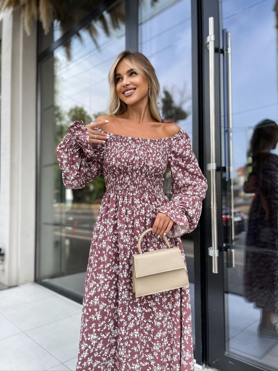 Стильна елегантна жіноча сукня з довгим рукавом та квітковим принтом "Tess" поєднує в собі неповторний стиль і комфорт, допоможе вам урізноманітнити гардероб. Дана модель виконана з якісного матеріалу, що забезпечує приємні відчуття на тілі. Резинка створює зручну посадку і дозволяє підкреслити талію. Ця довга сукня ідеально підходить для різних заходів, починаючи від гучних вечірок і закінчуючи спокійною прогулянкою. Така модель дозволить відчувати себе комфортно і при цьому виглядати вишукано і модно.Завдяки універсальному дизайну, сукню можна легко поєднувати з різними аксесуарами та взуттям, створюючи безліч варіантів стильних образів.