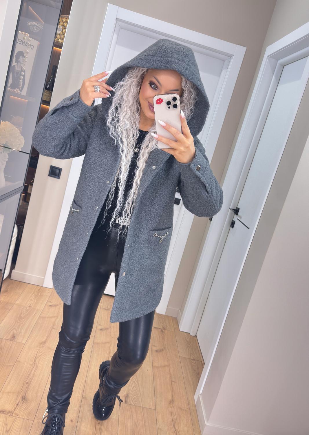 Деталі, що мають значення: глибокий капюшон для захисту від вітру, зручні кнопки та глибокі внутрішні кишені, декоровані вишуканими металевими прикрасами.