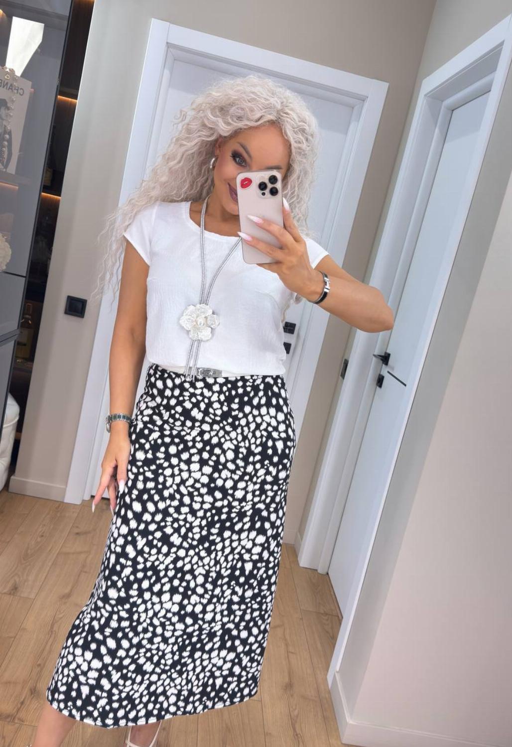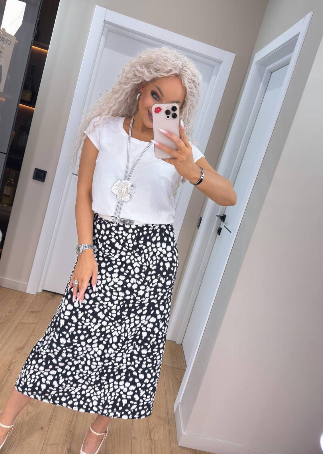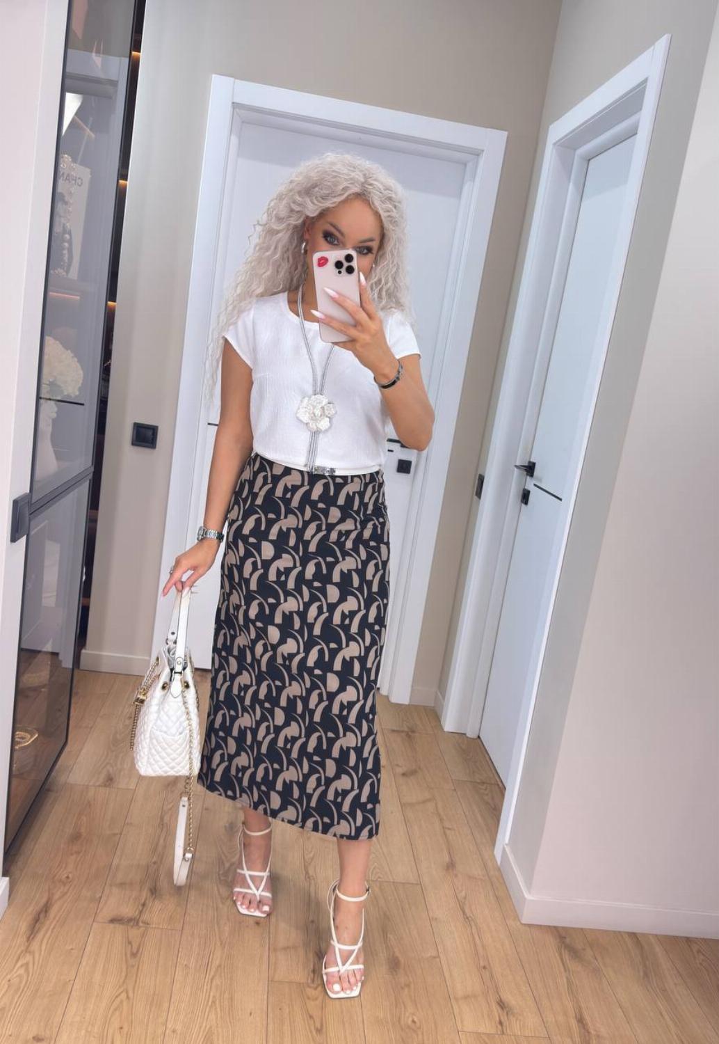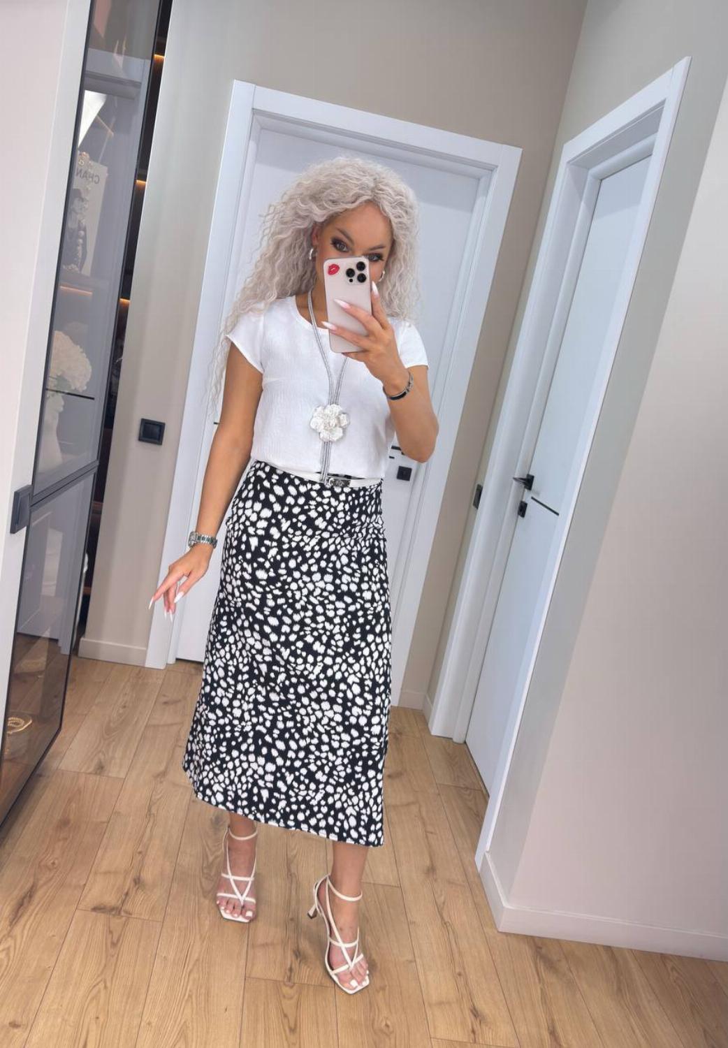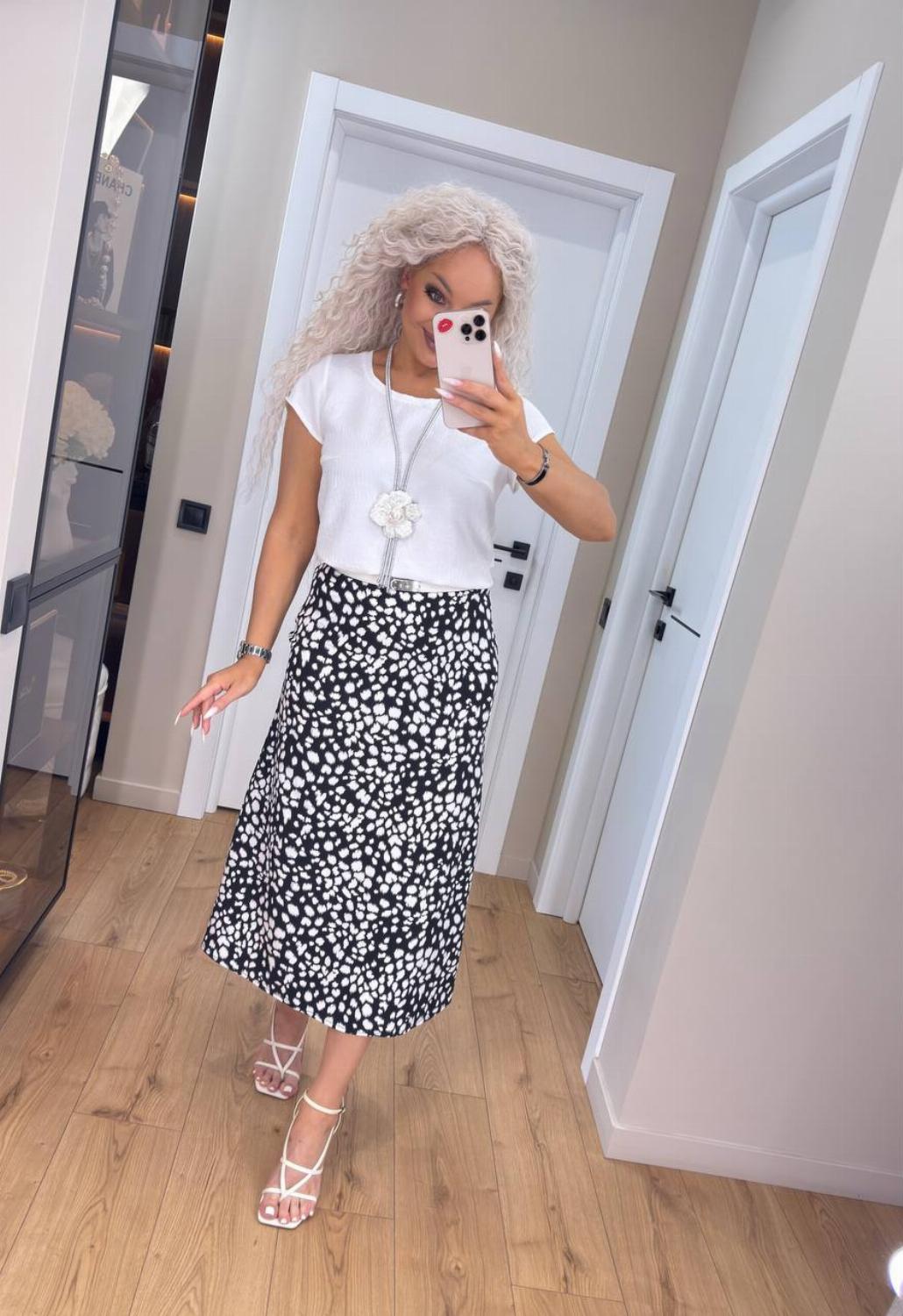 Стильна легка жіноча спідниця-міді на запах із принтом "Hanna". Цей фасон спідниці підкреслить переваги фігури і замаскує можливі недоліки. Підходить для створення безлічі несхожих один на одного образів, від повсякденного до ділового або романтичного. Цю модель дуже легко комбінувати і створювати з нею бездоганні сети. Залежно від того, який образ ви прагнете створити, спідницю "Hanna" можна носити з блузами, джемперами, жакетами, топами, сорочками.