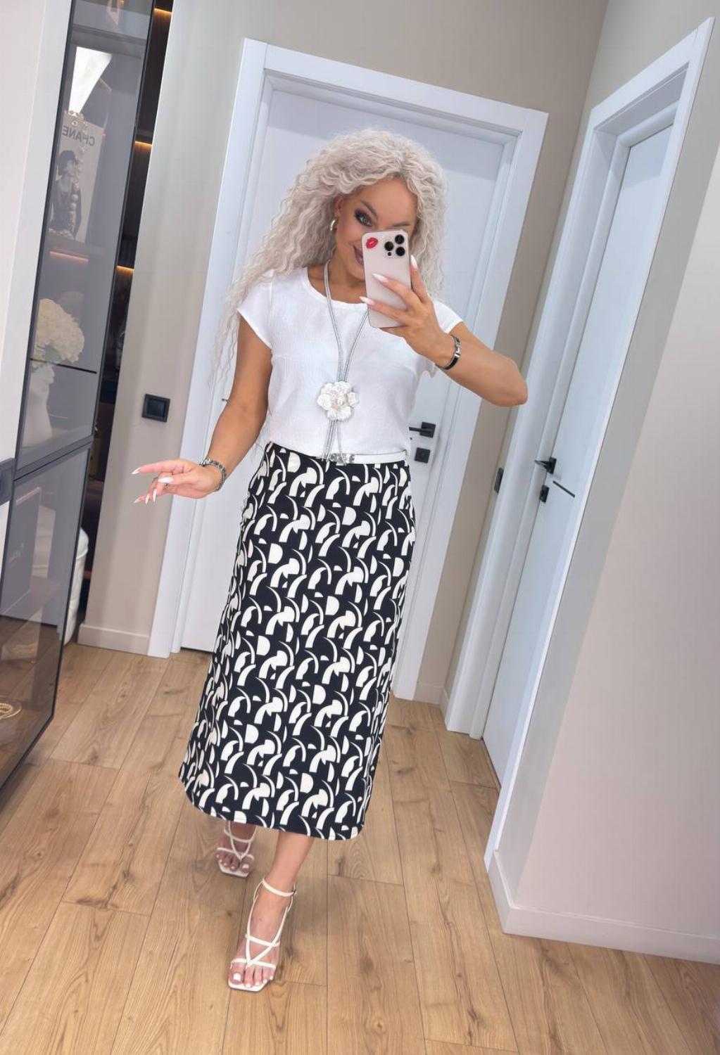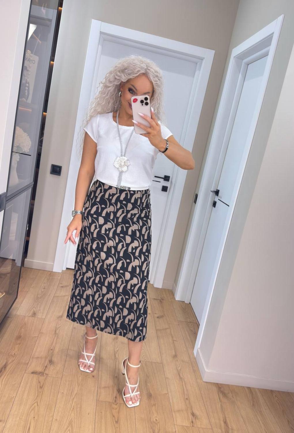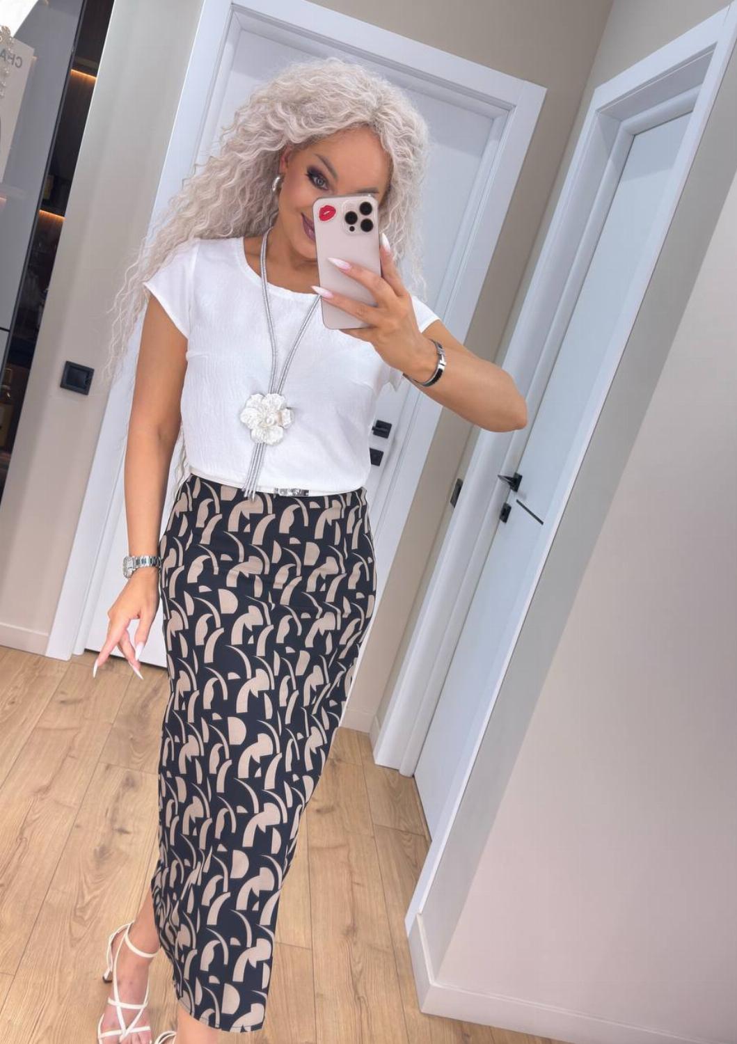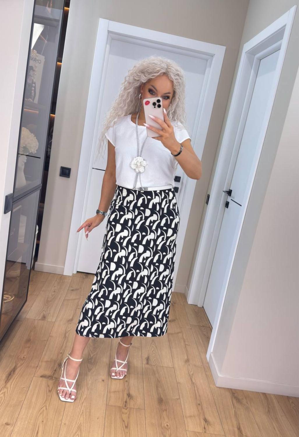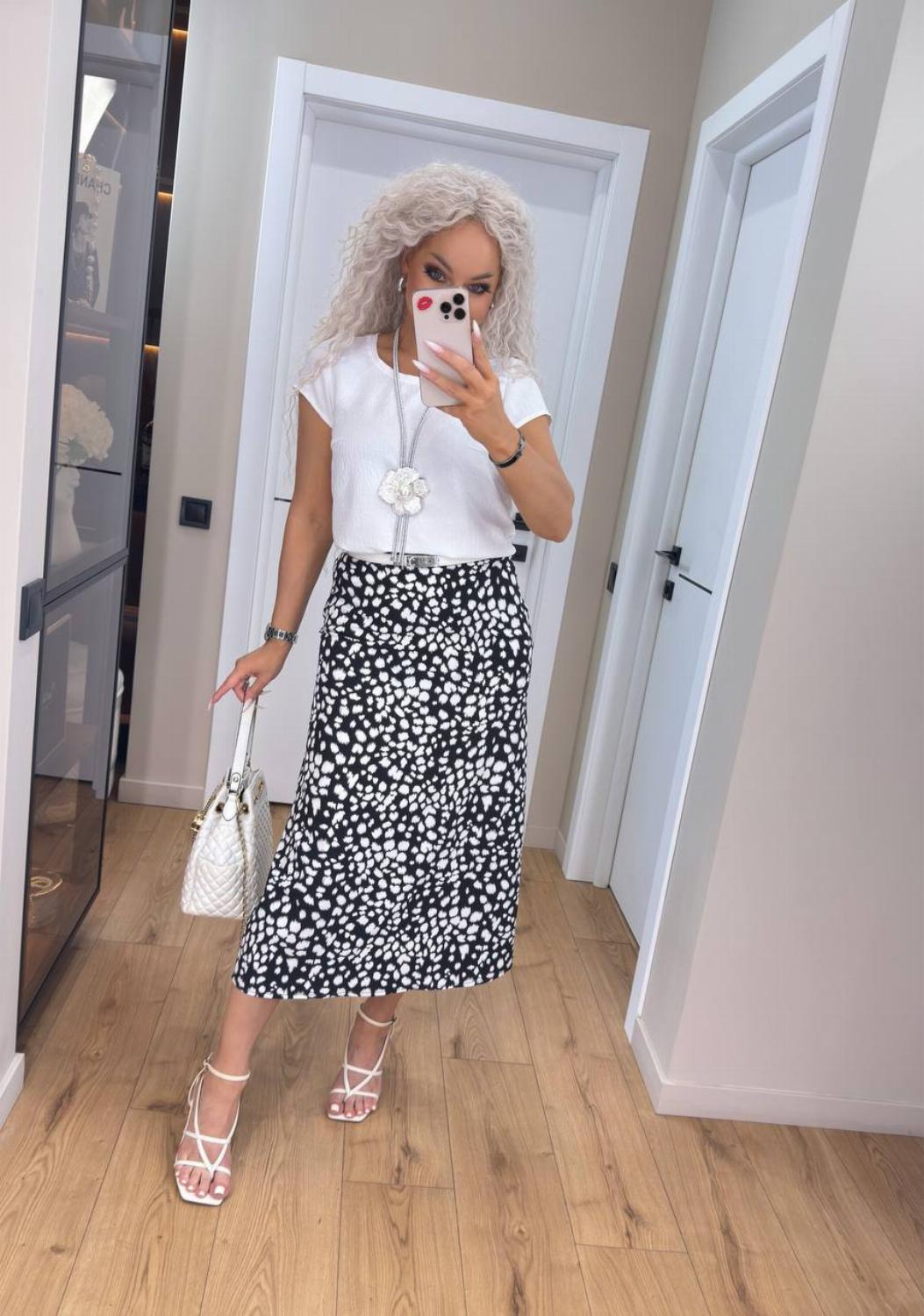Стильна легка жіноча спідниця-міді на запах із принтом "Hanna". Цей фасон спідниці підкреслить переваги фігури і замаскує можливі недоліки. Підходить для створення безлічі несхожих один на одного образів, від повсякденного до ділового або романтичного. Цю модель дуже легко комбінувати і створювати з нею бездоганні сети. Залежно від того, який образ ви прагнете створити, спідницю "Hanna" можна носити з блузами, джемперами, жакетами, топами, сорочками.