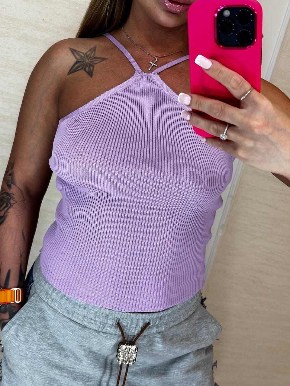 Стильний однотонний топ на бретелях в рубчик "Bella" - відмінна база для створення модних літніх образів! Для повсякденного образу підійде тандем топу з джинсовими шортами. Стриманий, лаконічний топ «Bella» чудово виглядатиме з однотонними лляними костюмами, спідницями міді та жакетами оверсайз, а також вільними брюками та подовженими жакетами.