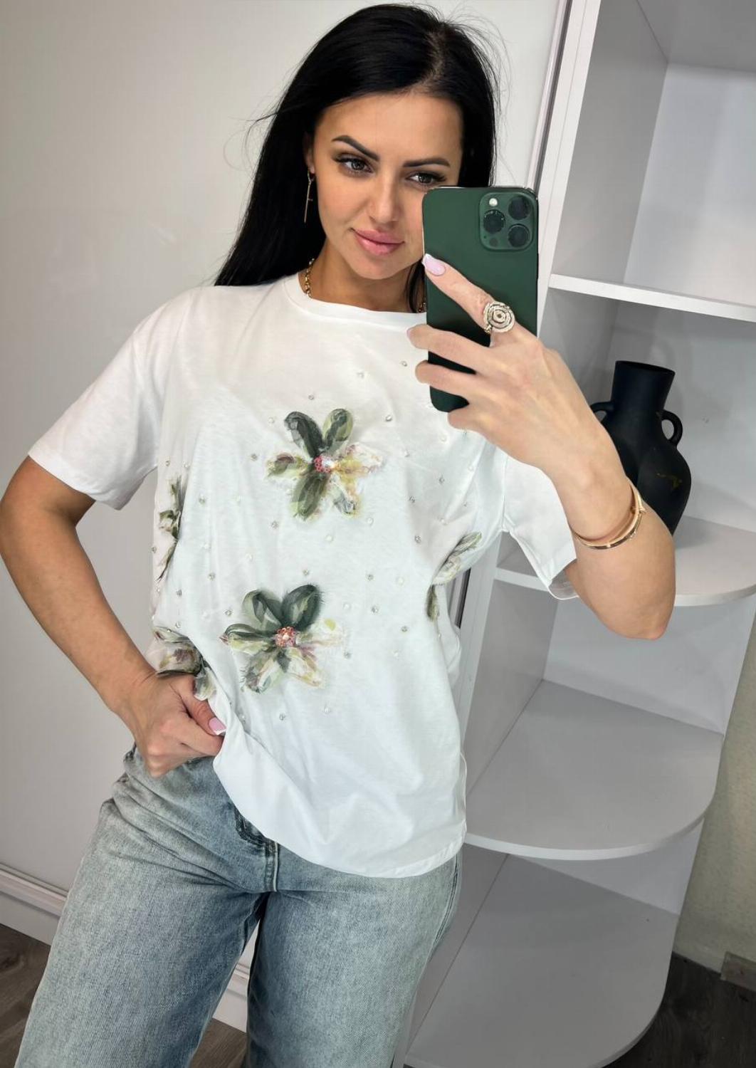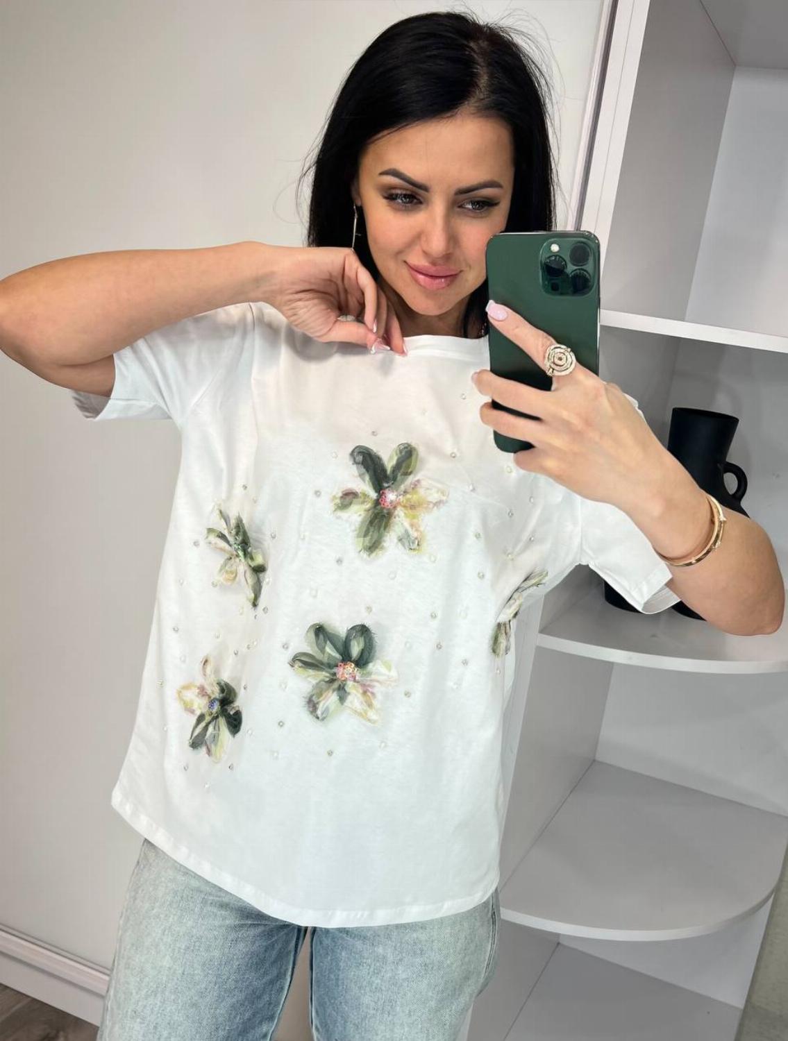 Стильна жіноча футболка зі стразами "Dorothy" - відмінна база для створення модних літніх образів! Для повсякденного образу підійде тандем футболки з джинсами. Використовуйте модні широкі джинси, а також моделі з необробленим подолом або потертостями - будь-який варіант допоможе вам створити яскравий наряд. Стримана, лаконічна футболка «Dorothy» також чудово виглядає зі спідницями, причому будь-яких фасонів і матеріалів.