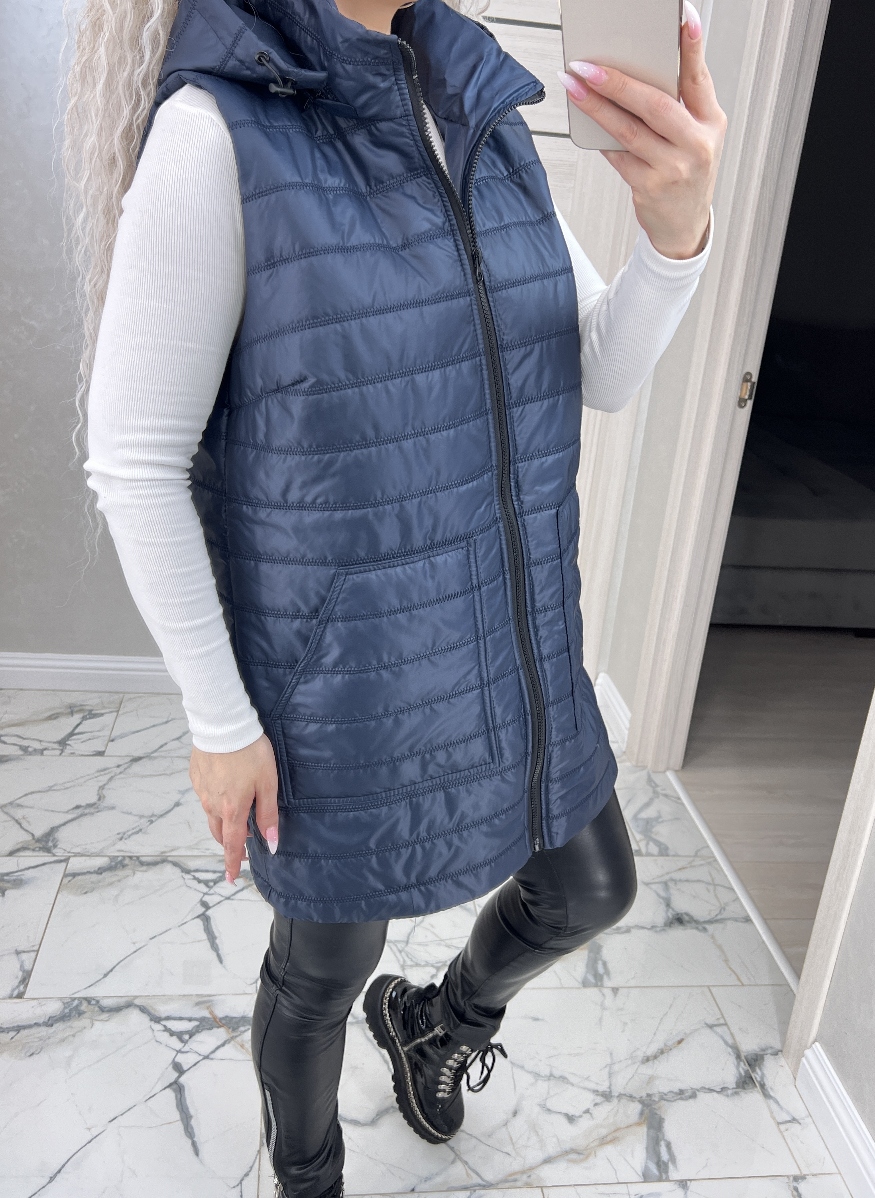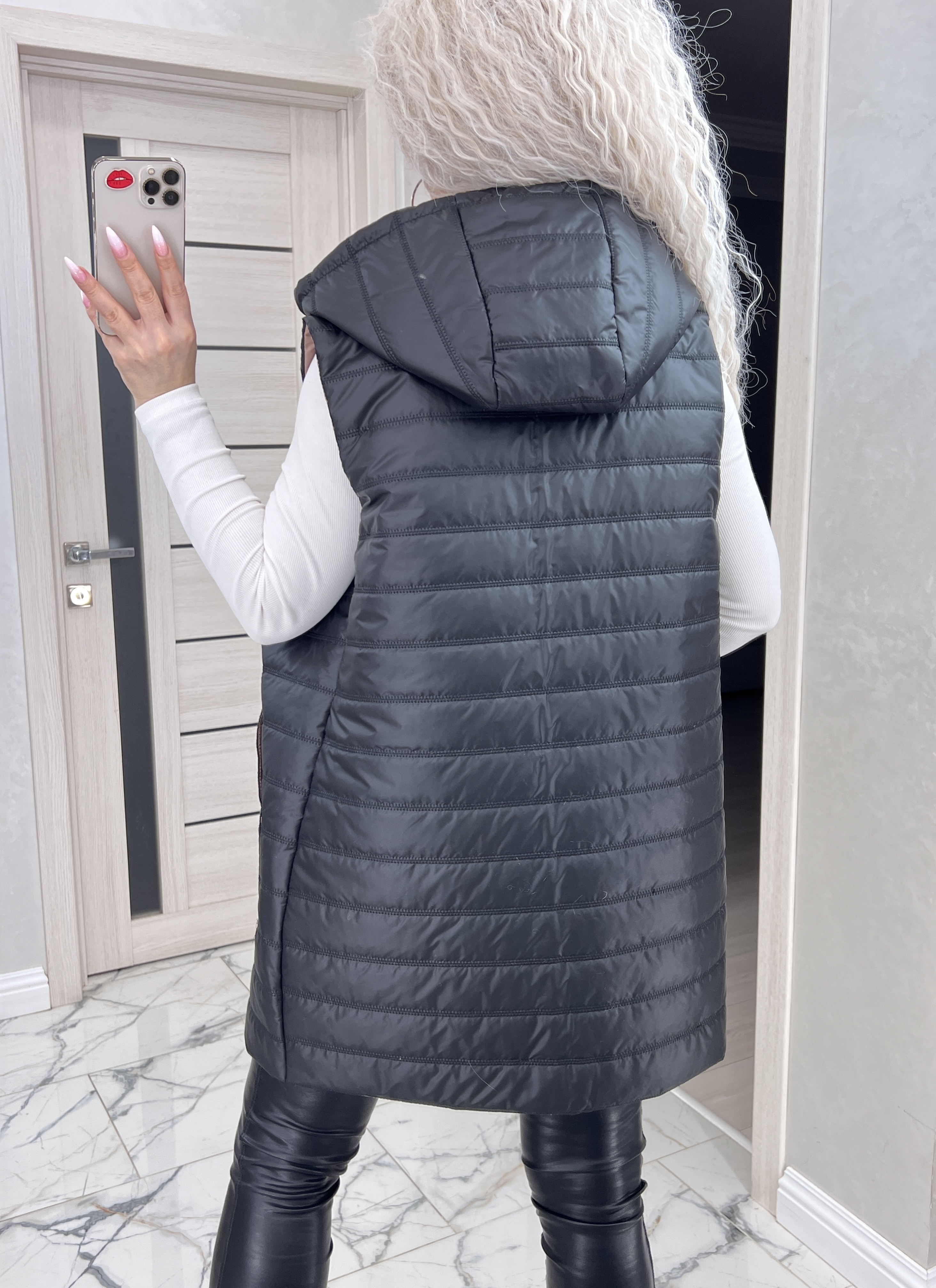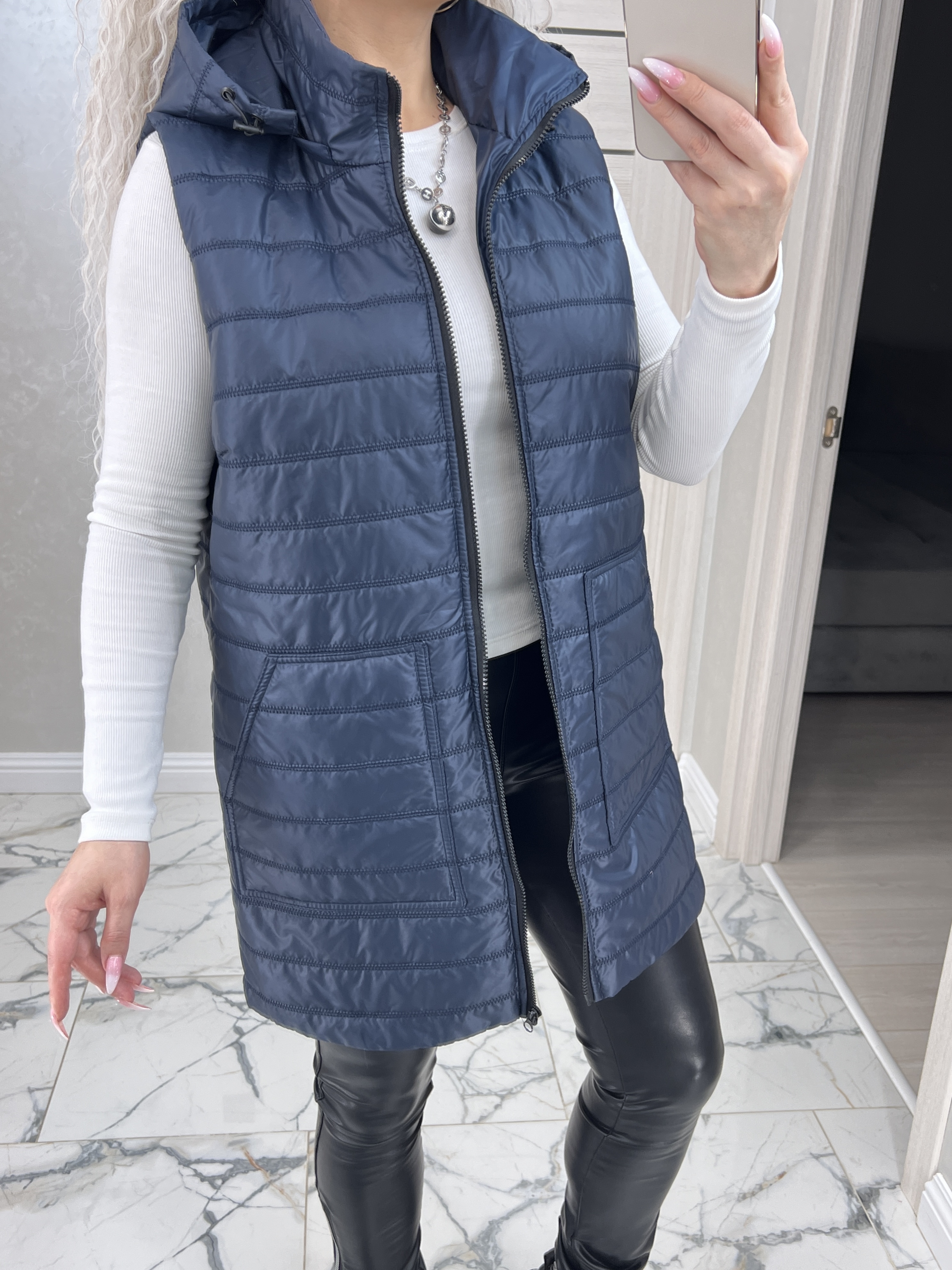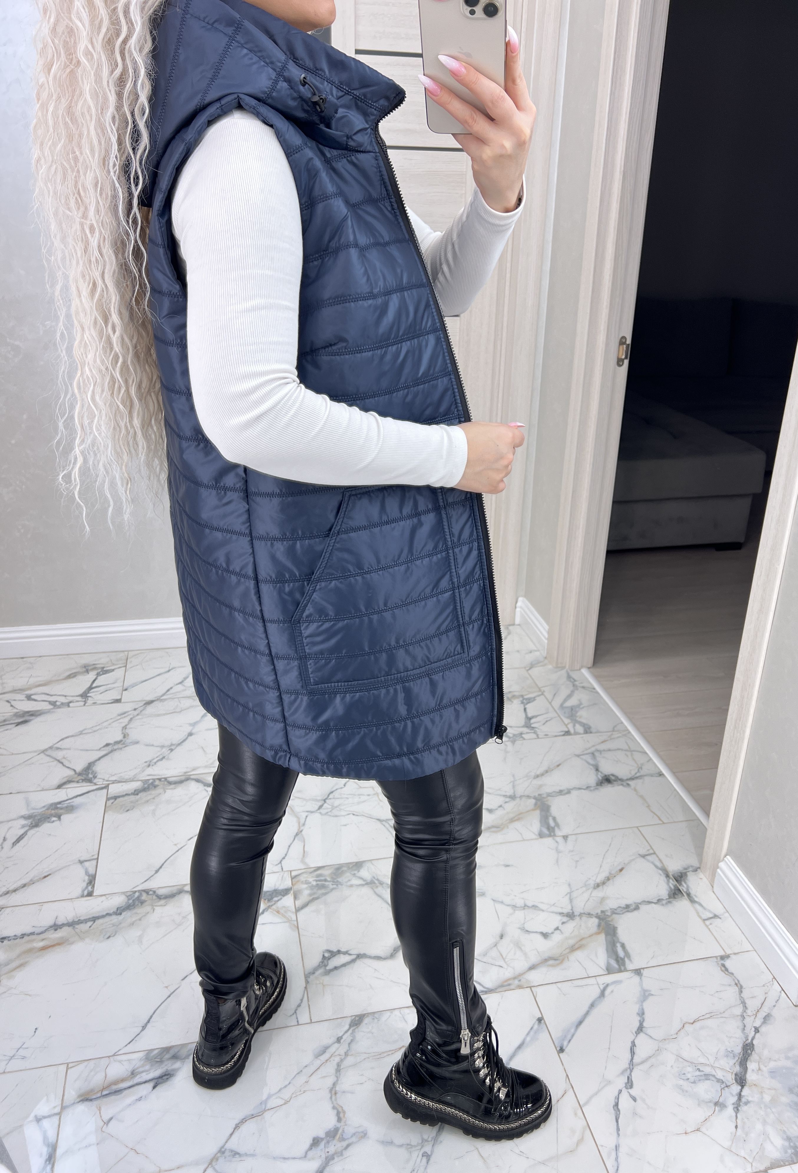 Жилет жіночий стьобаний з синтепоновою підкладкою щільністю 100. Ідеально підходить для весняно-осіннього сезону. Зручні бічні кишені і елегантний замок з високим коміром роблять жилет незамінним. Він підійде під будь-який низ і під неї можна одягти светри і кофти різних фасонів. Практичний в носінні і простий в пранні, тканина не викличе проблем у догляді за нею. Капюшон з'ємний.