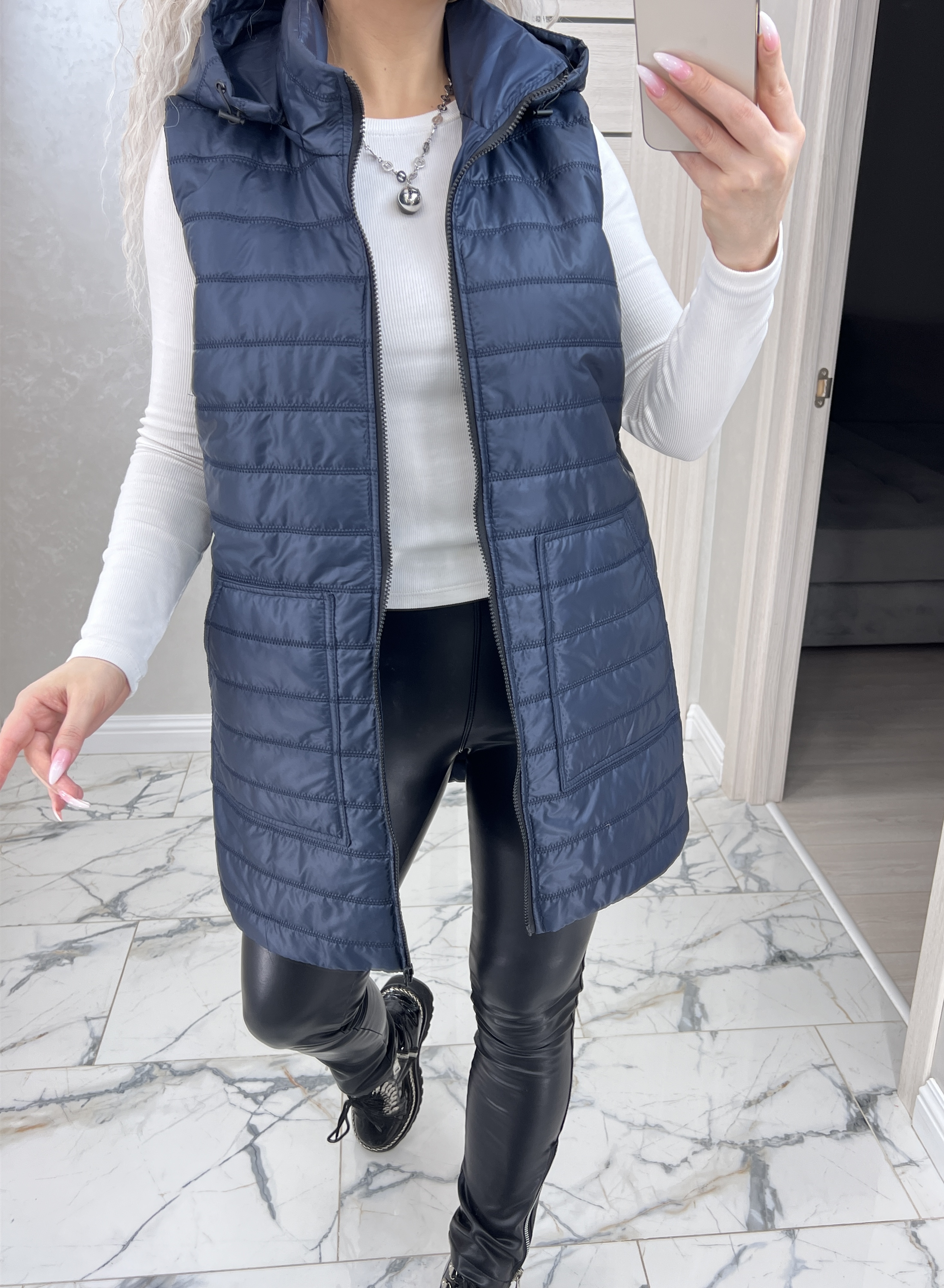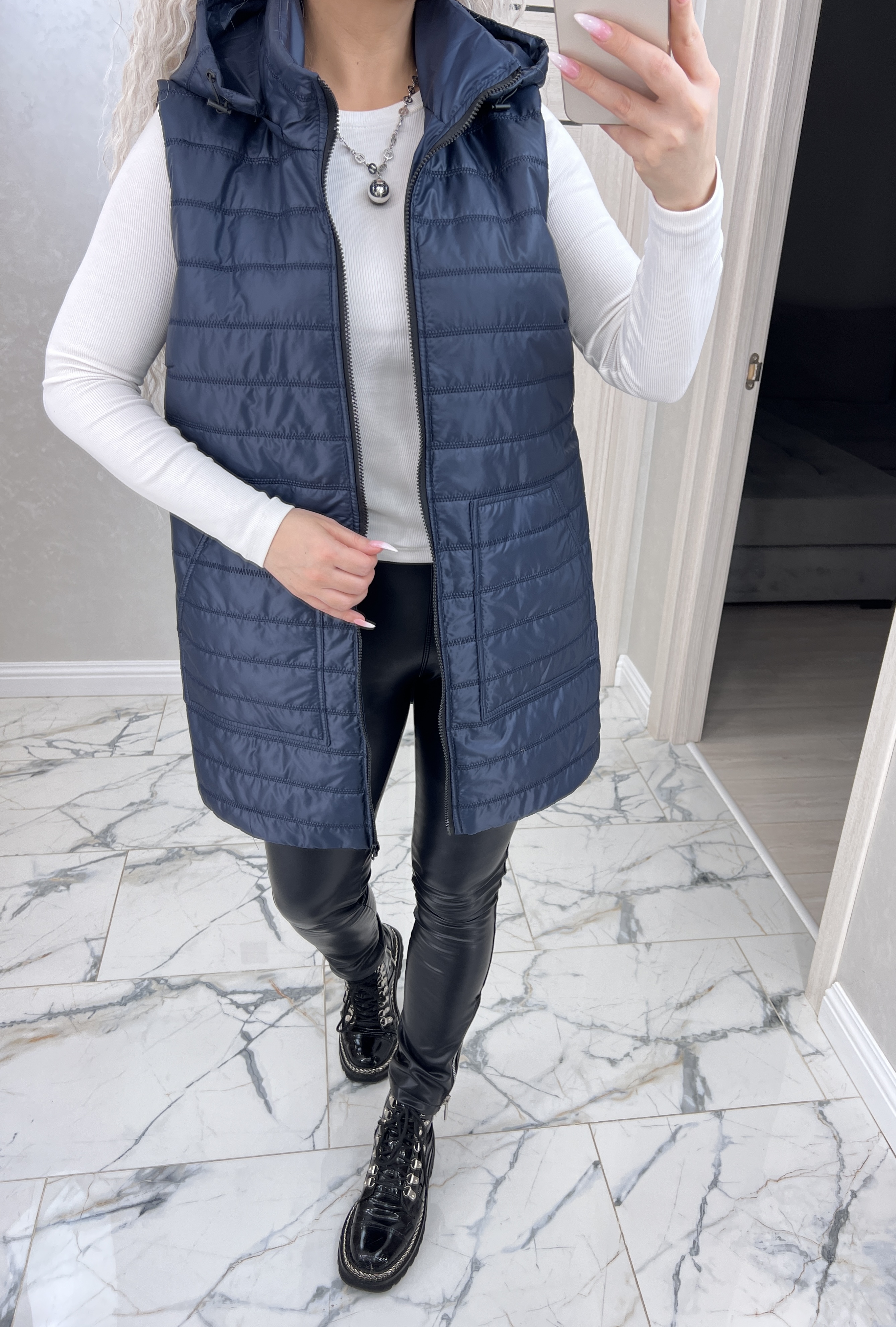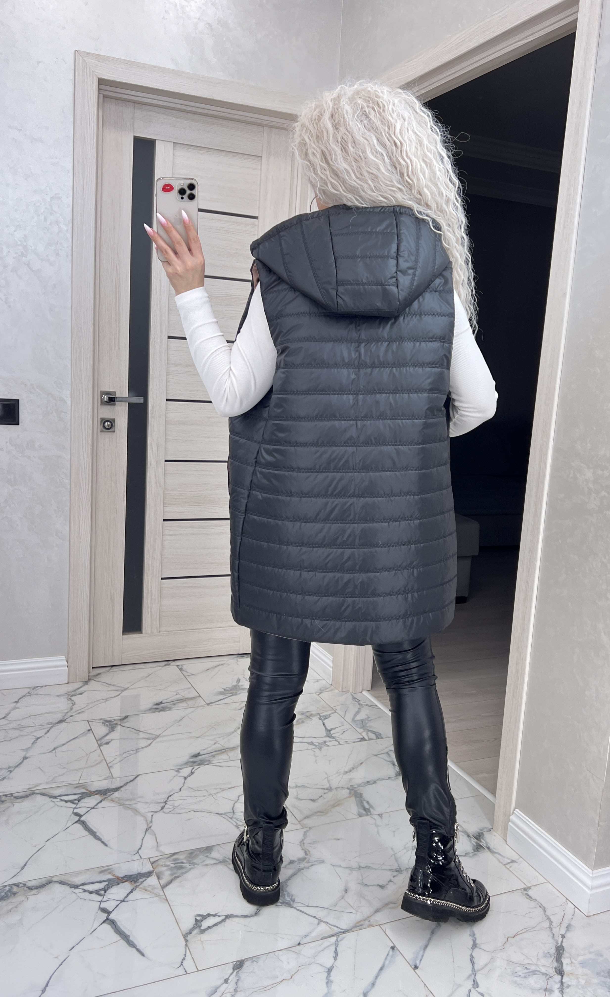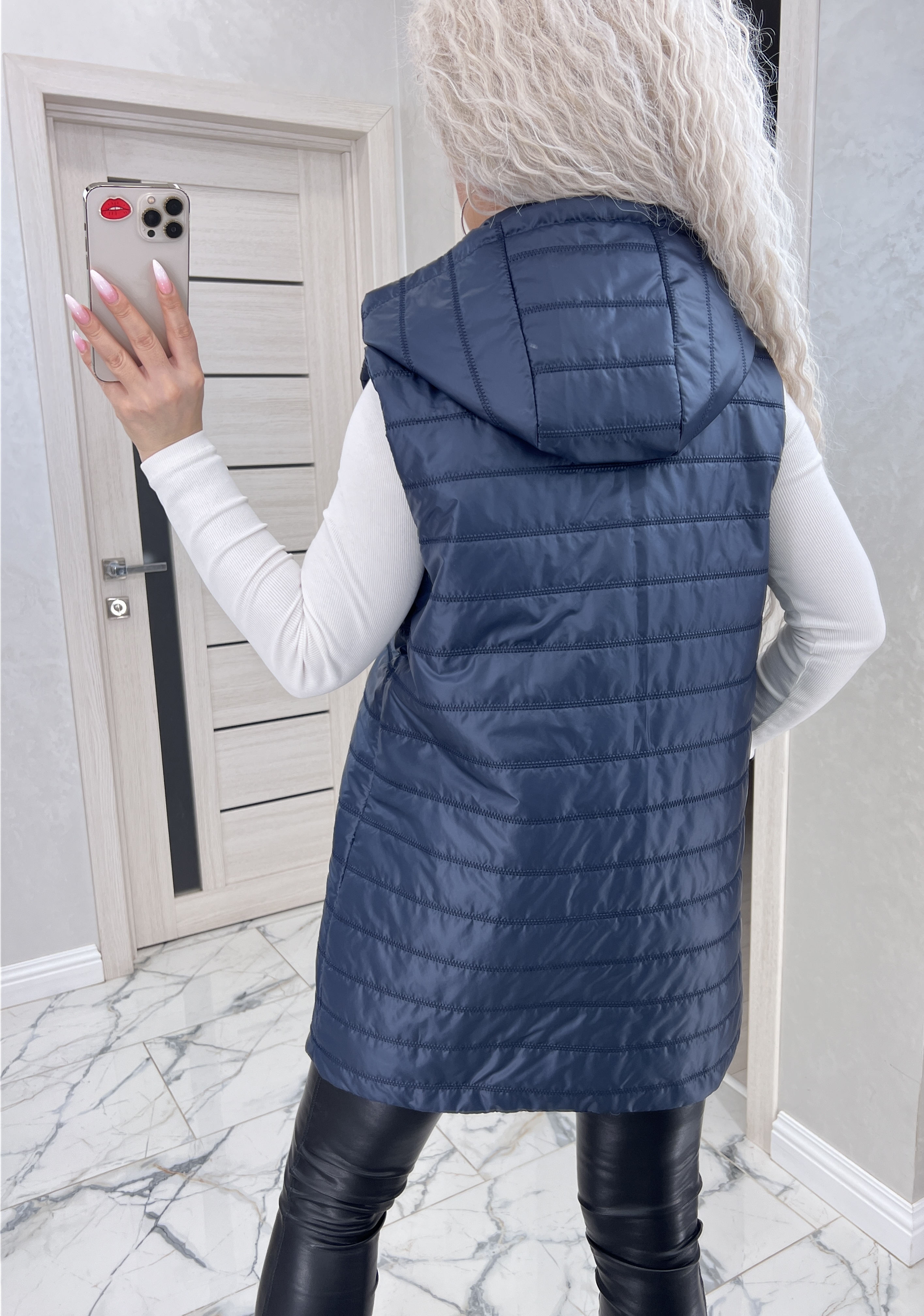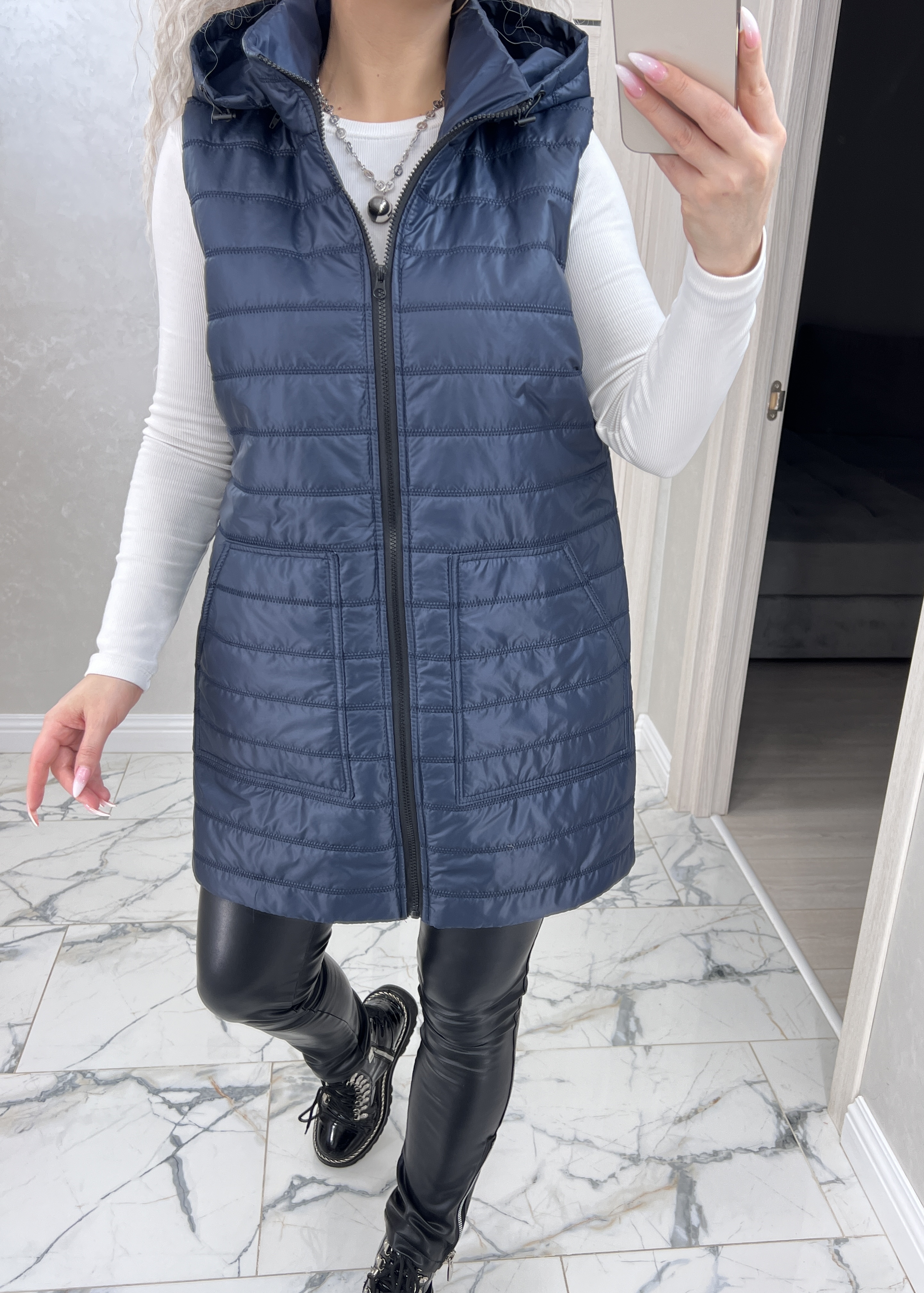 Жилет жіночий стьобаний з синтепоновою підкладкою щільністю 100. Ідеально підходить для весняно-осіннього сезону. Зручні бічні кишені і елегантний замок з високим коміром роблять жилет незамінним. Він підійде під будь-який низ і під неї можна одягти светри і кофти різних фасонів. Практичний в носінні і простий в пранні, тканина не викличе проблем у догляді за нею. Капюшон з'ємний.