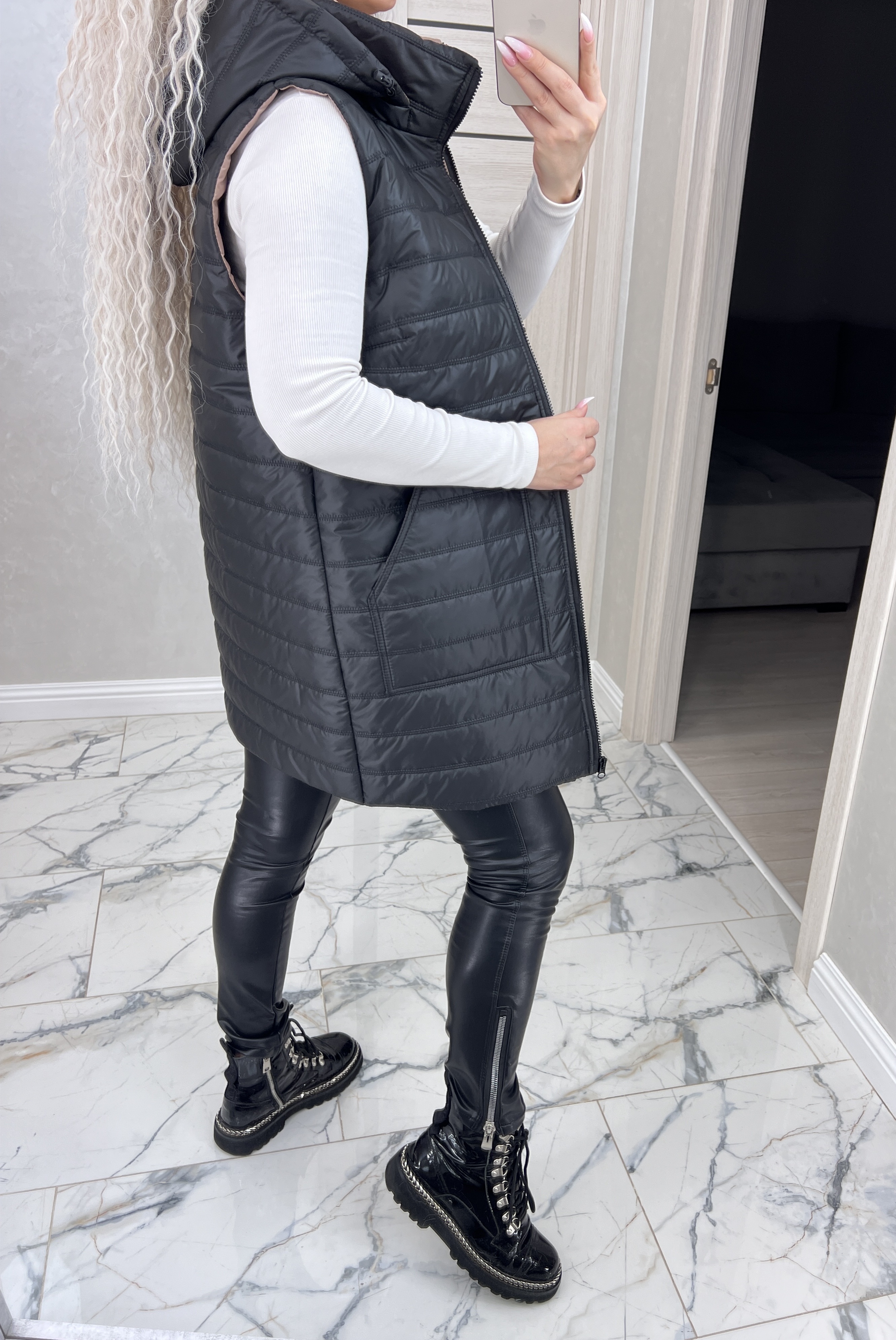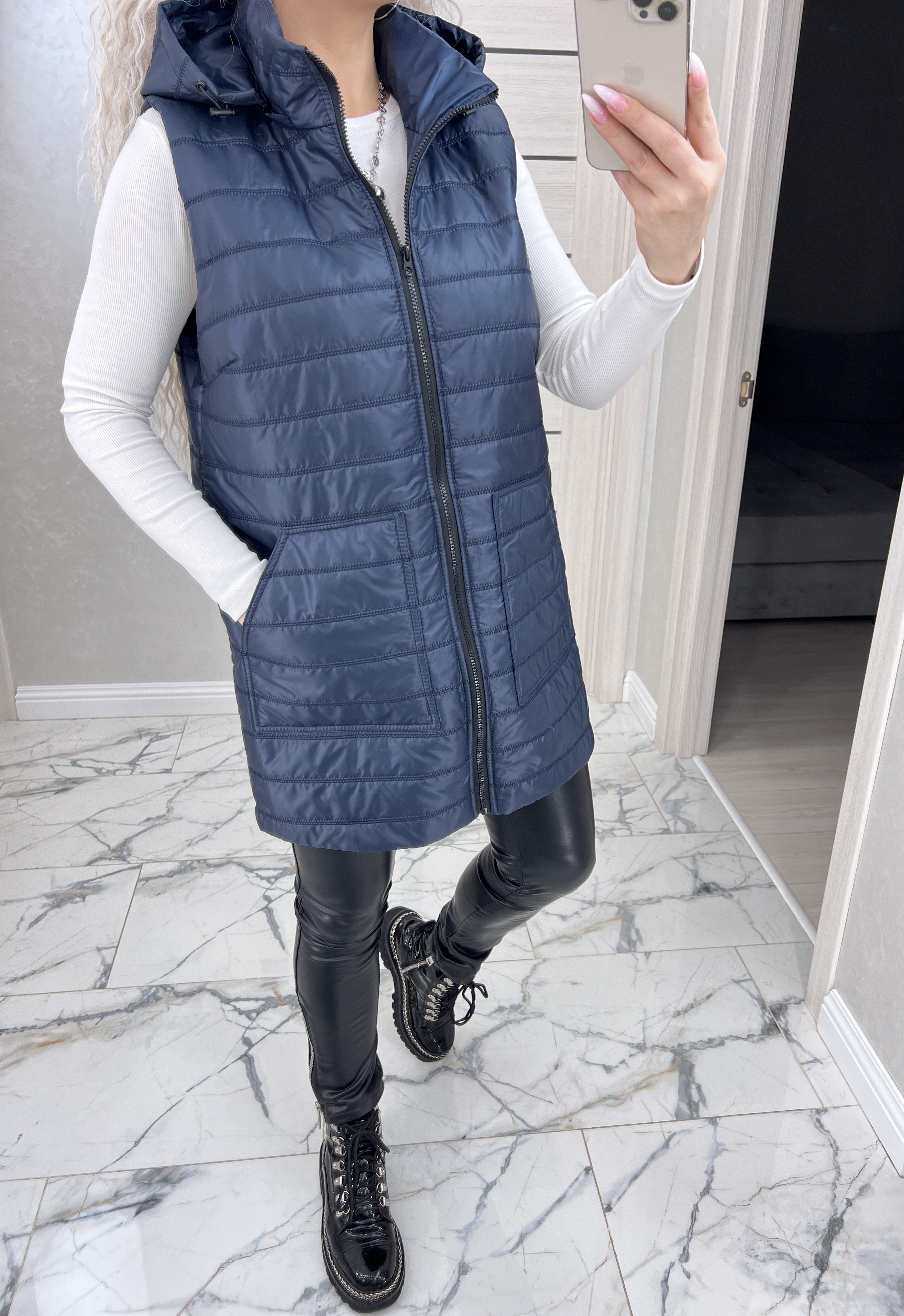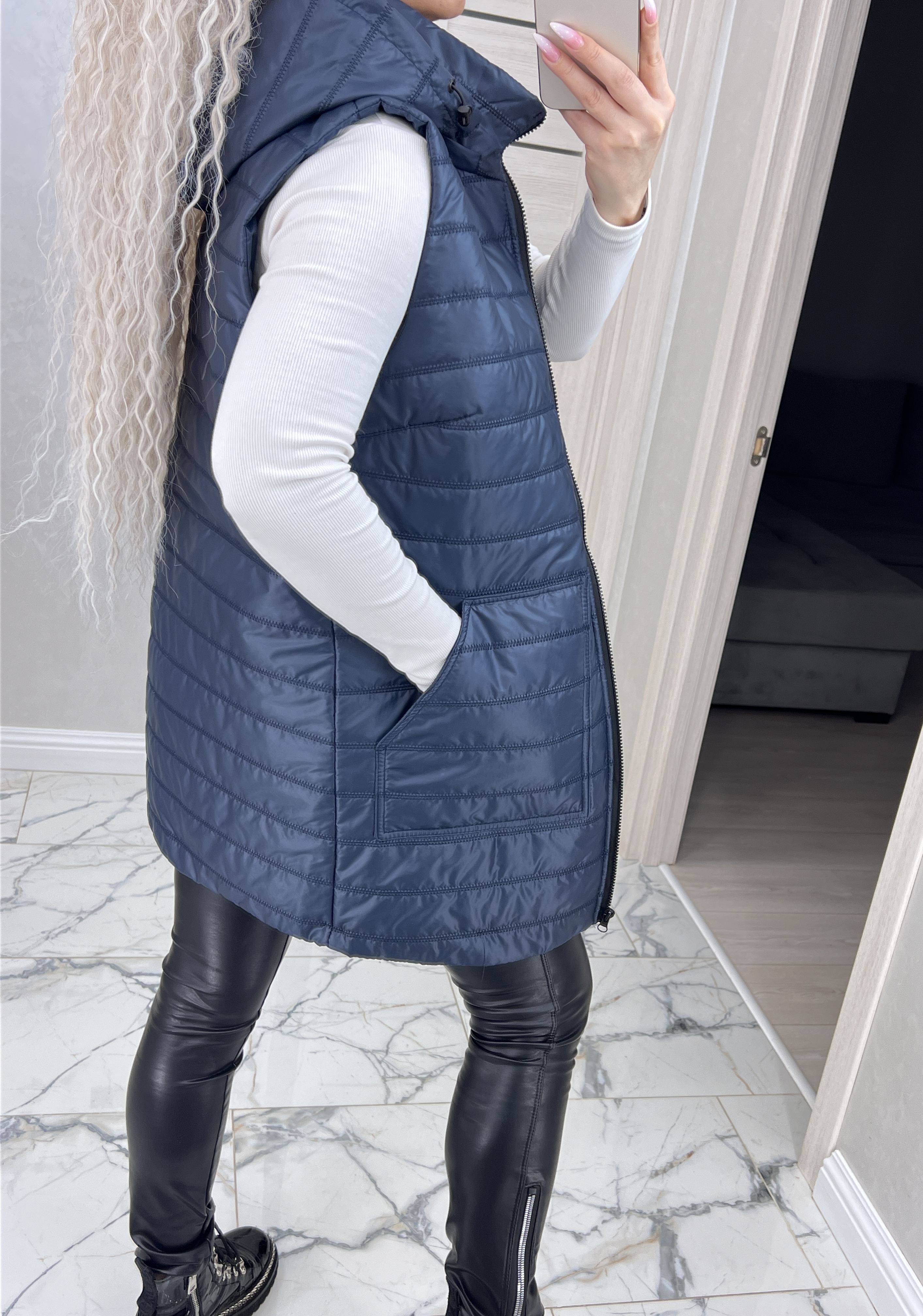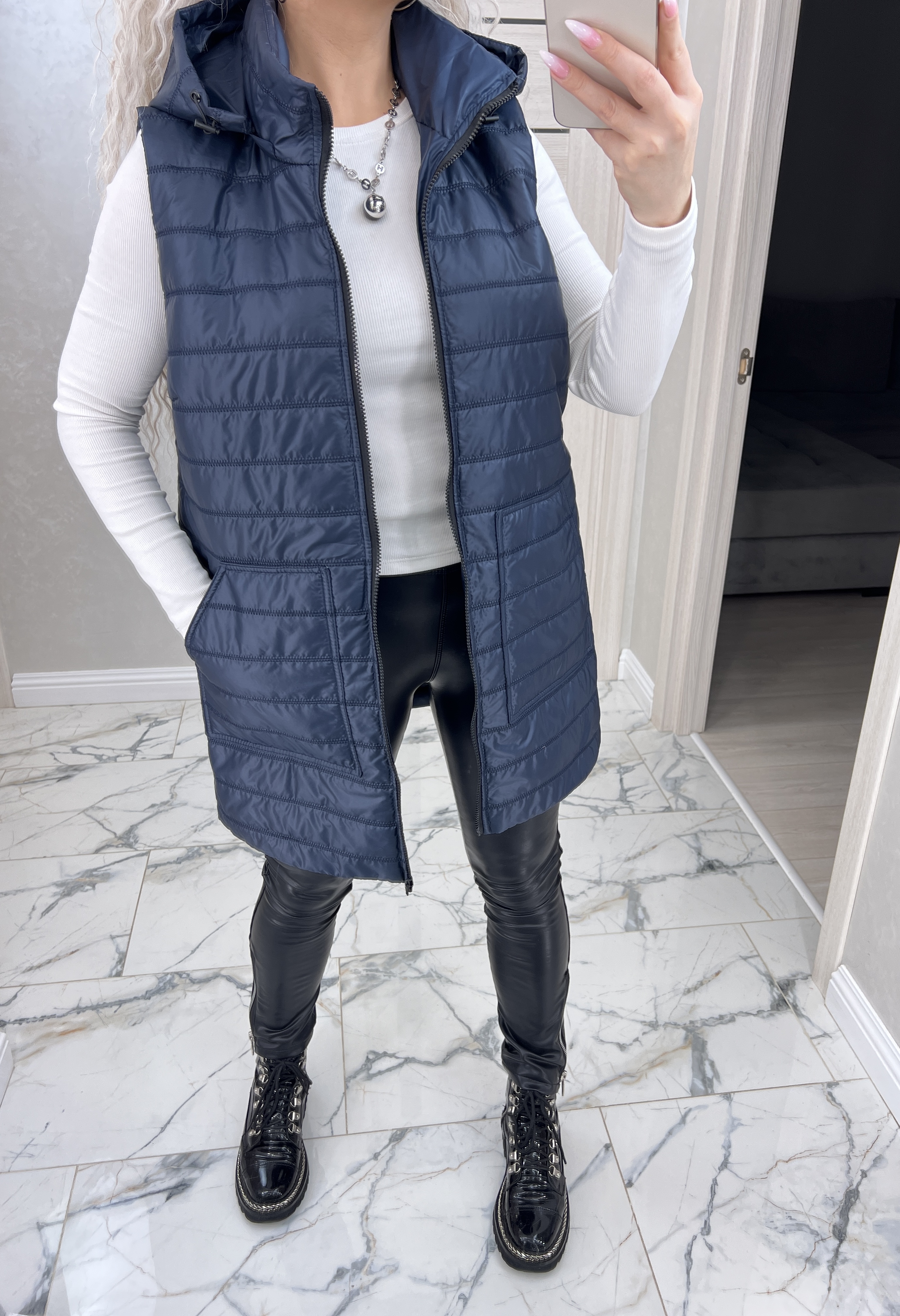 Жилет жіночий стьобаний з синтепоновою підкладкою щільністю 100. Ідеально підходить для весняно-осіннього сезону. Зручні бічні кишені і елегантний замок з високим коміром роблять жилет незамінним. Він підійде під будь-який низ і під неї можна одягти светри і кофти різних фасонів. Практичний в носінні і простий в пранні, тканина не викличе проблем у догляді за нею. Капюшон з'ємний.
