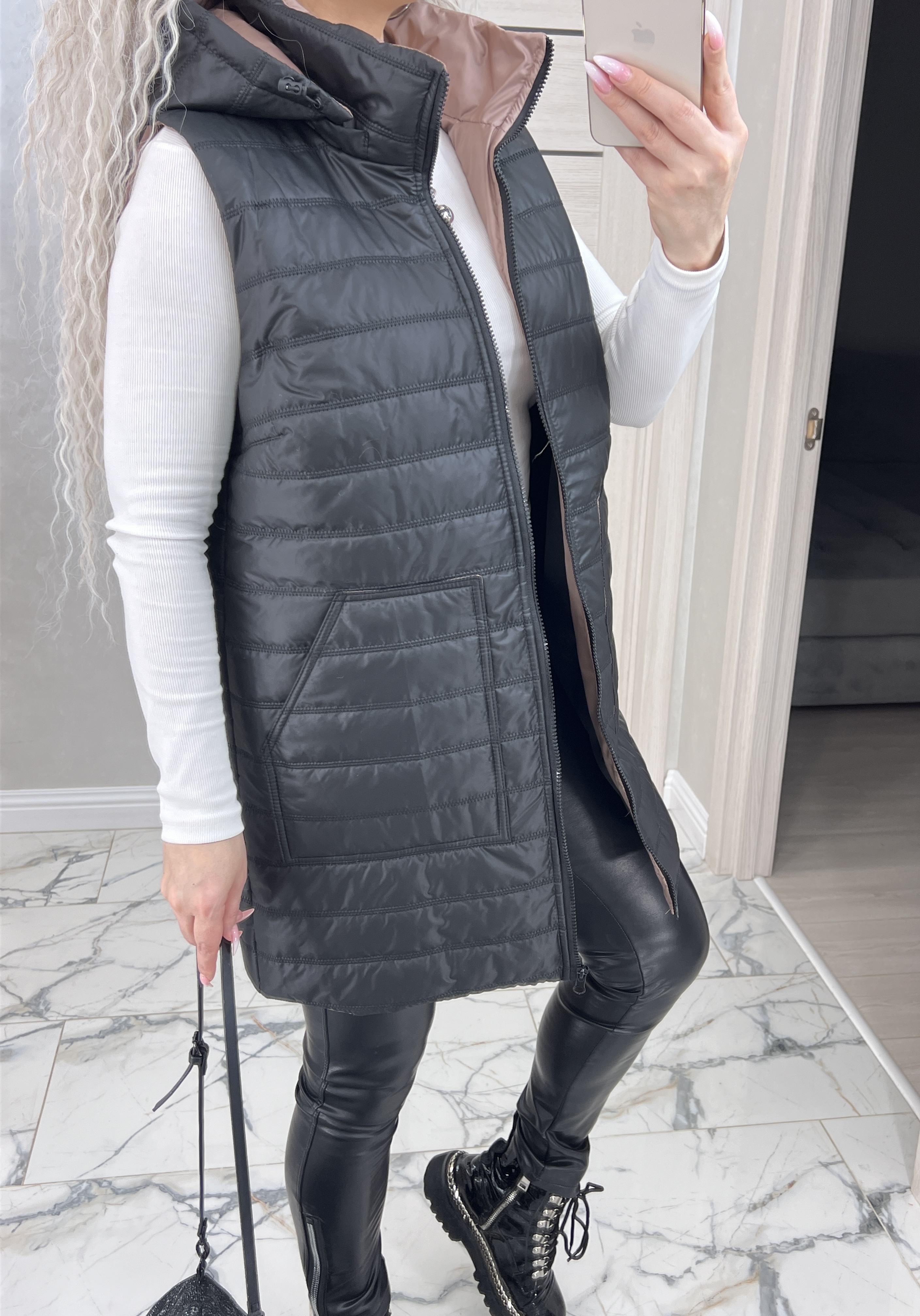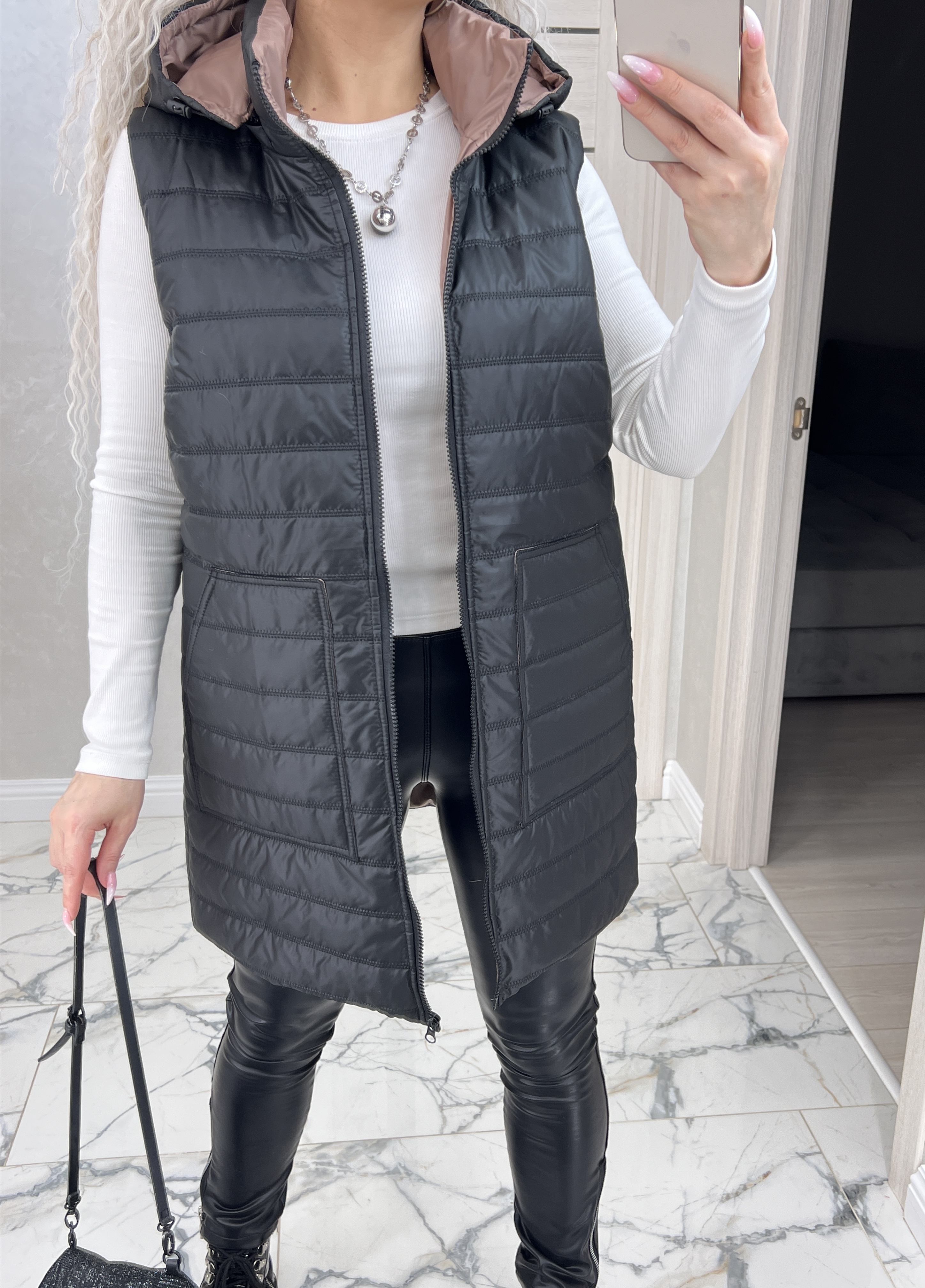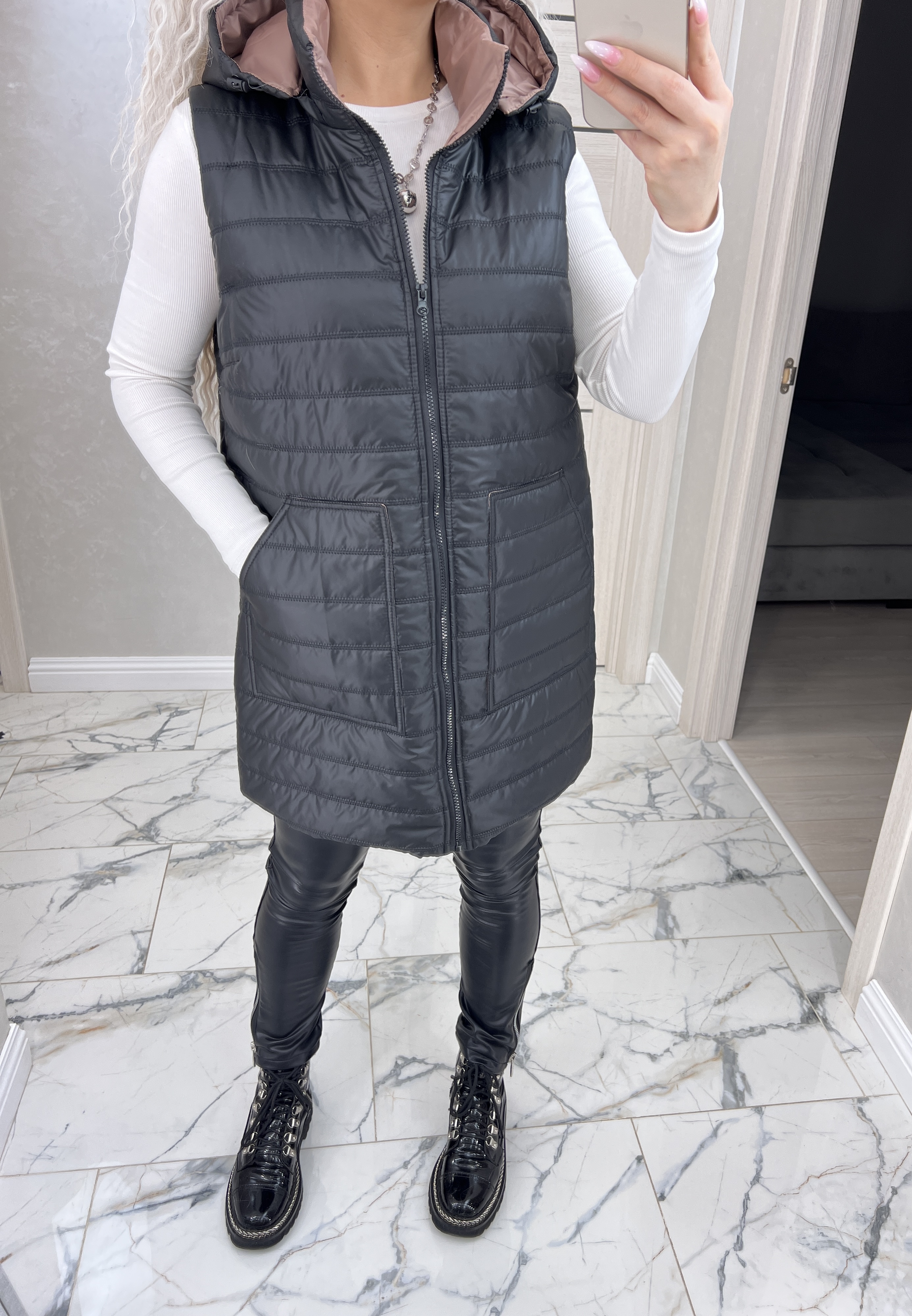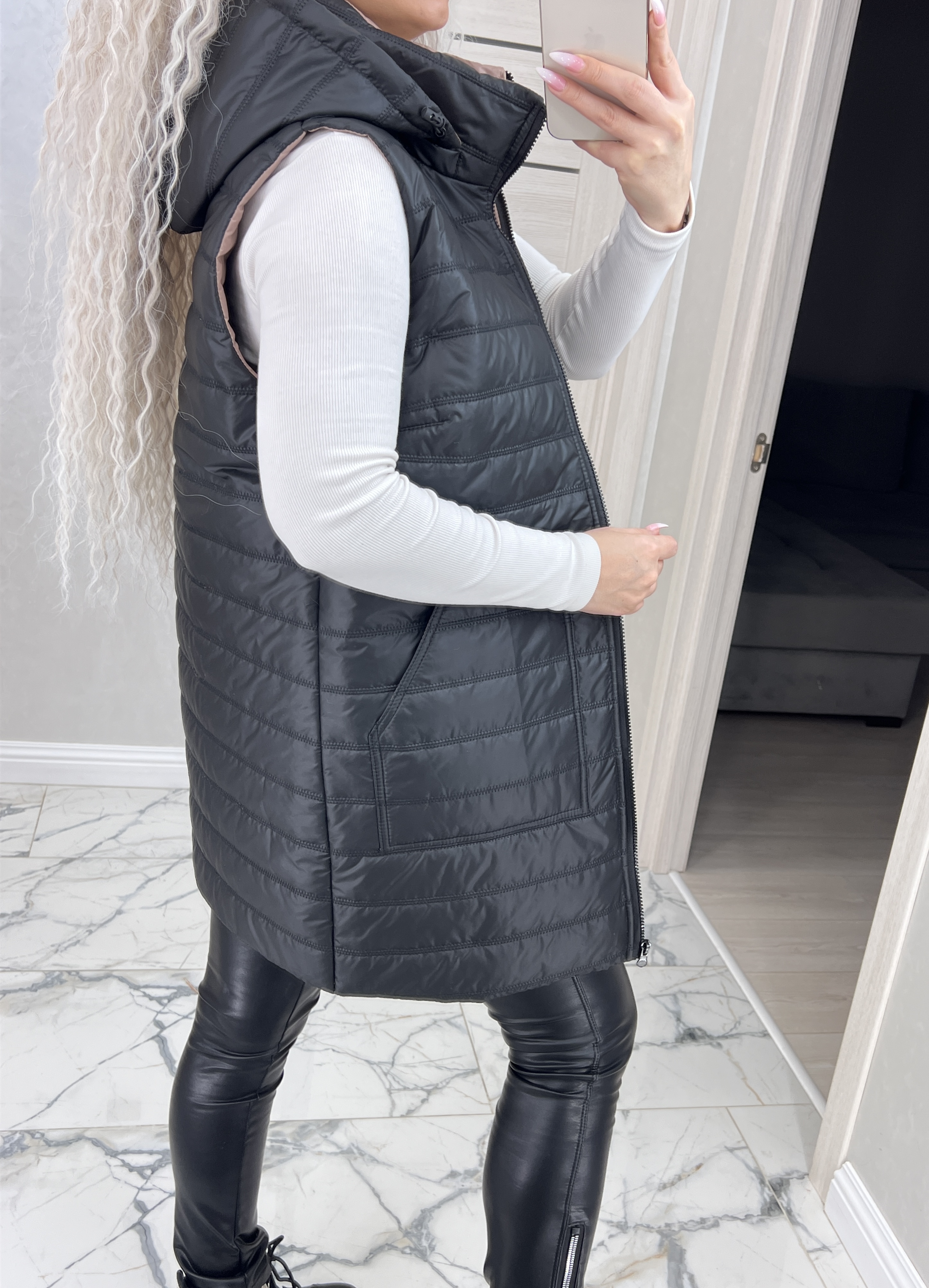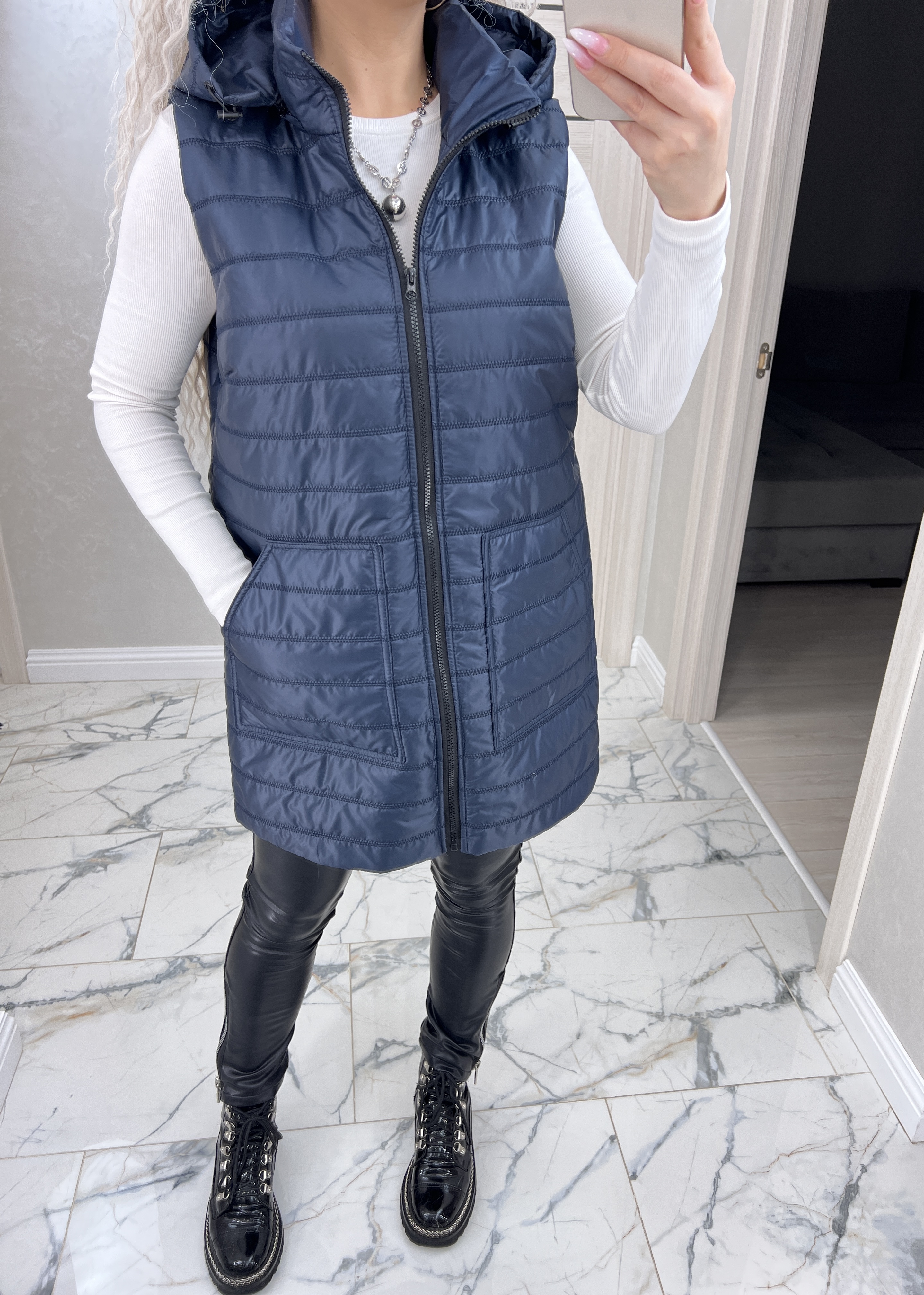 Жилет жіночий стьобаний з синтепоновою підкладкою щільністю 100. Ідеально підходить для весняно-осіннього сезону. Зручні бічні кишені і елегантний замок з високим коміром роблять жилет незамінним. Він підійде під будь-який низ і під неї можна одягти светри і кофти різних фасонів. Практичний в носінні і простий в пранні, тканина не викличе проблем у догляді за нею. Капюшон з'ємний.