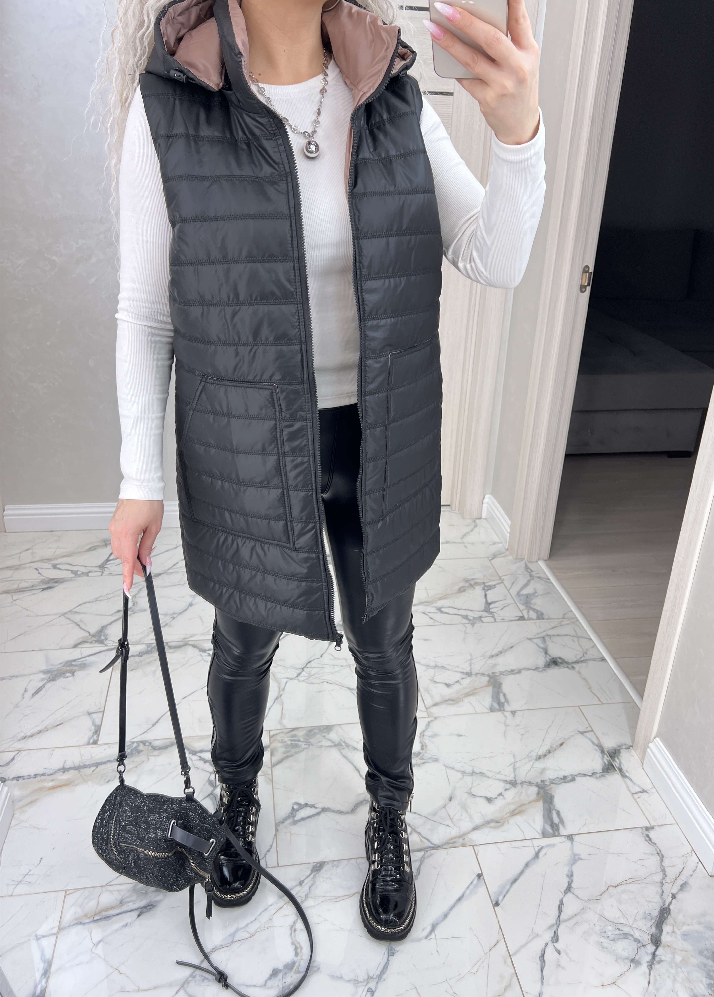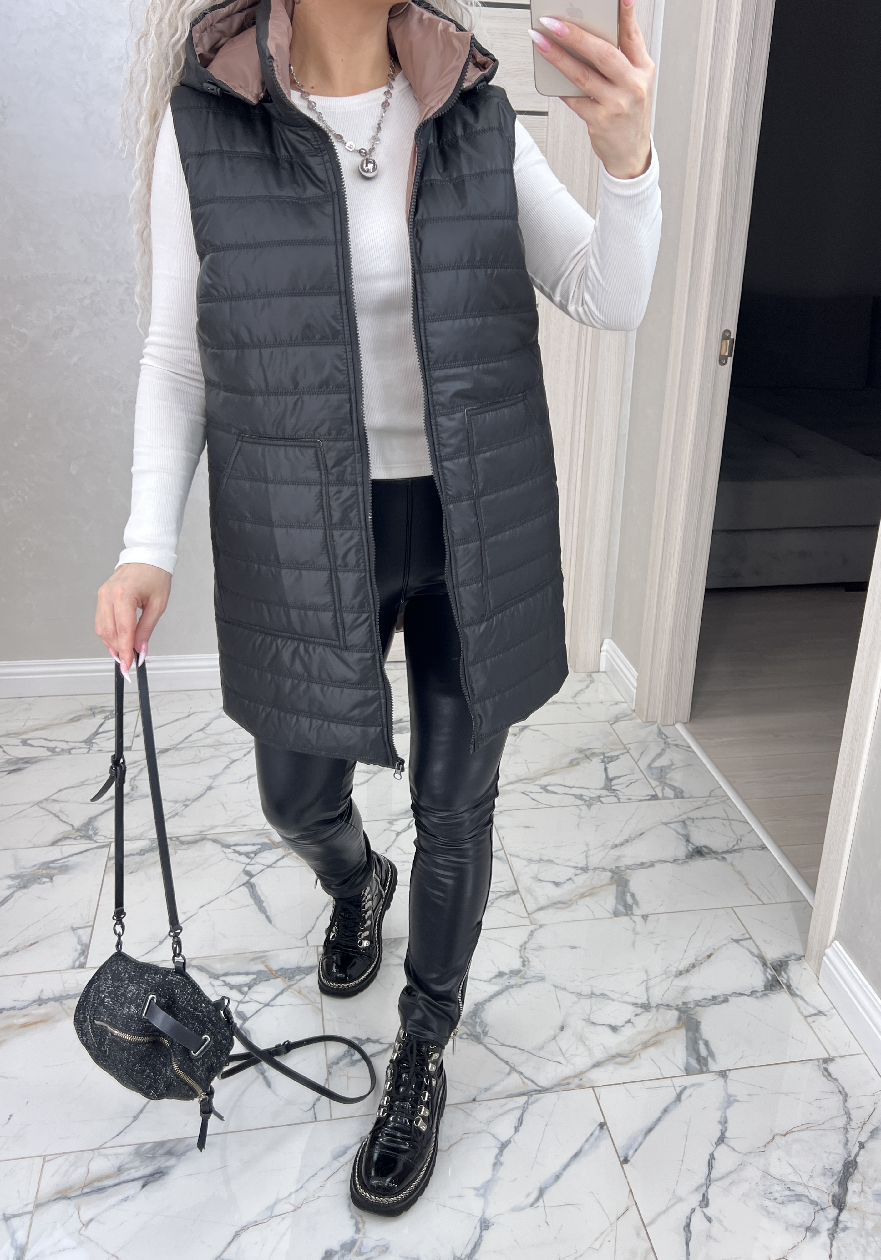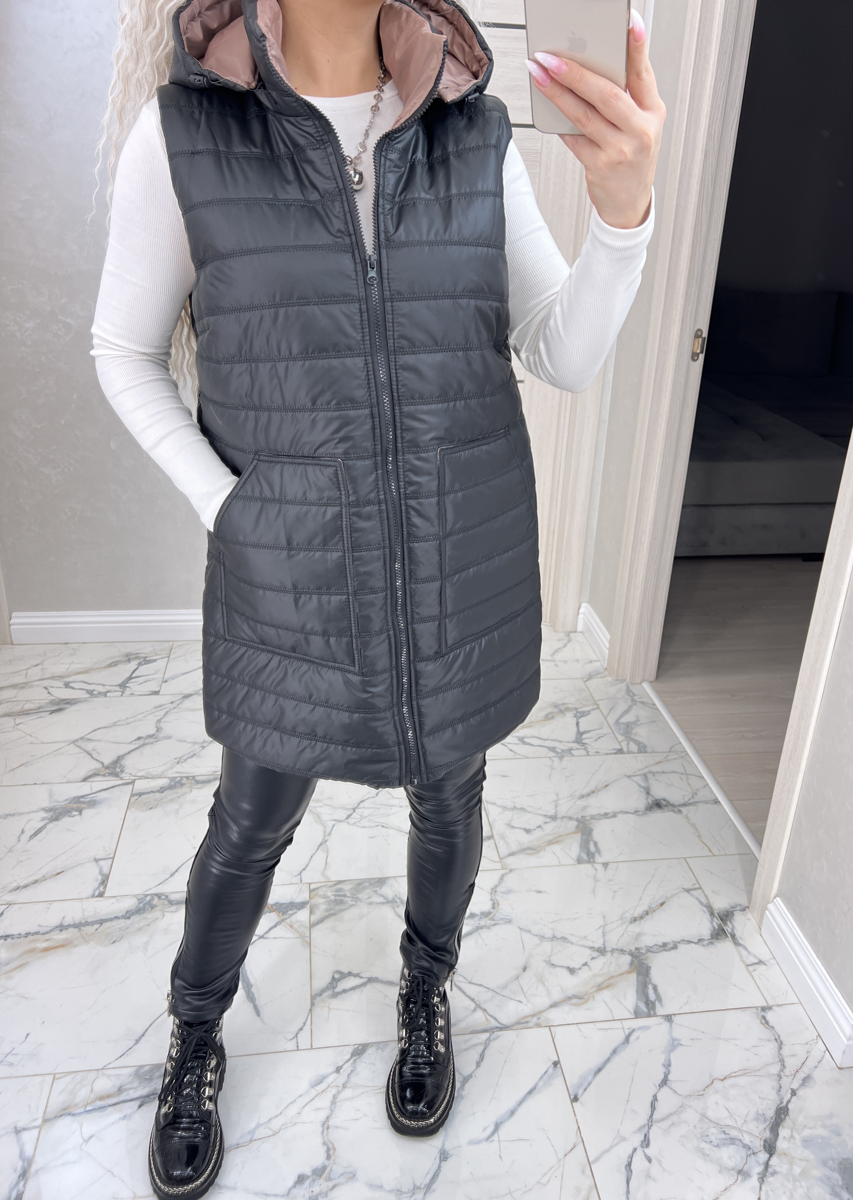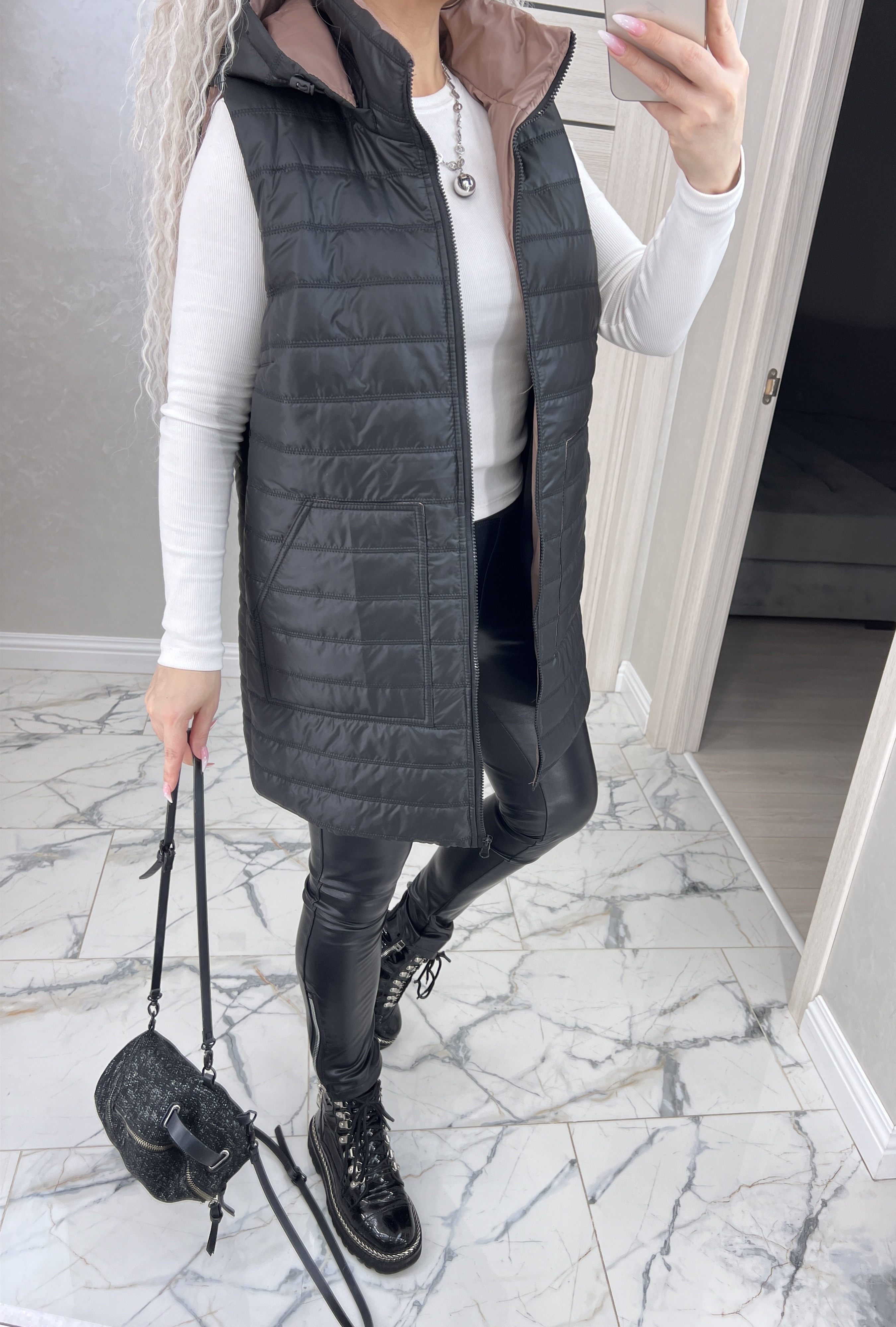 Жилет жіночий стьобаний з синтепоновою підкладкою щільністю 100. Ідеально підходить для весняно-осіннього сезону. Зручні бічні кишені і елегантний замок з високим коміром роблять жилет незамінним. Він підійде під будь-який низ і під неї можна одягти светри і кофти різних фасонів. Практичний в носінні і простий в пранні, тканина не викличе проблем у догляді за нею. Капюшон з'ємний.
