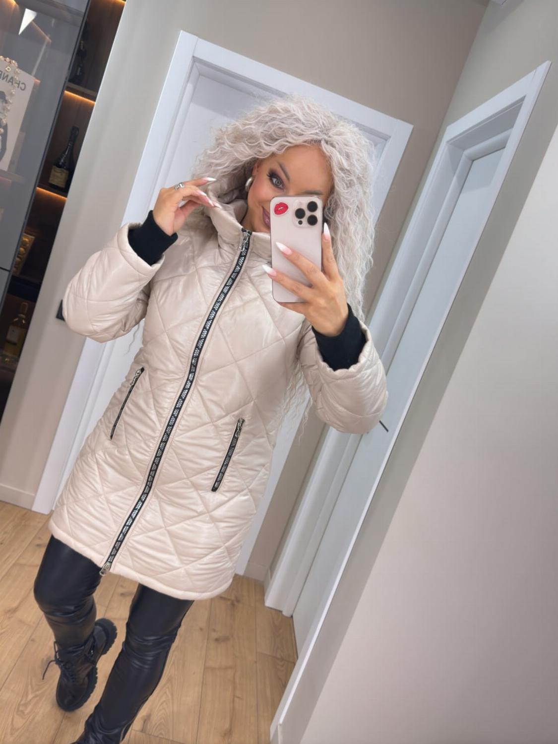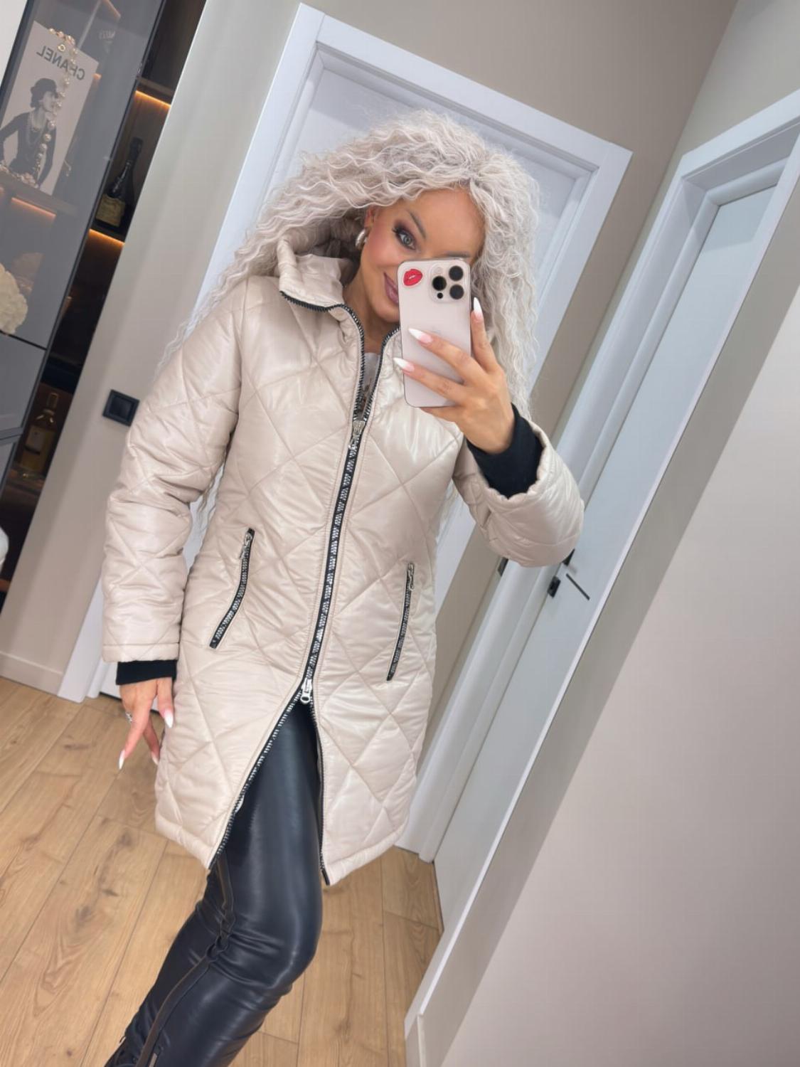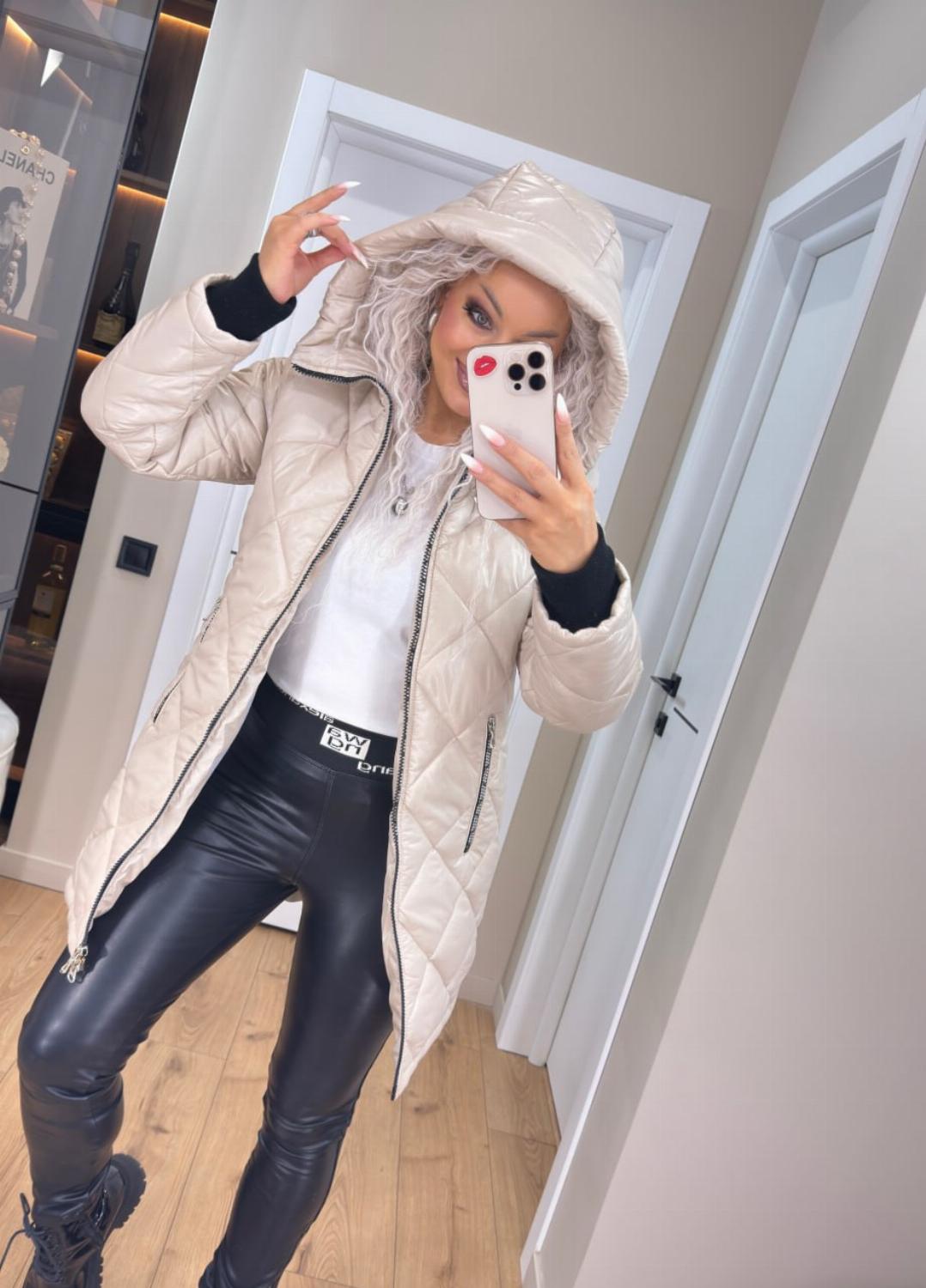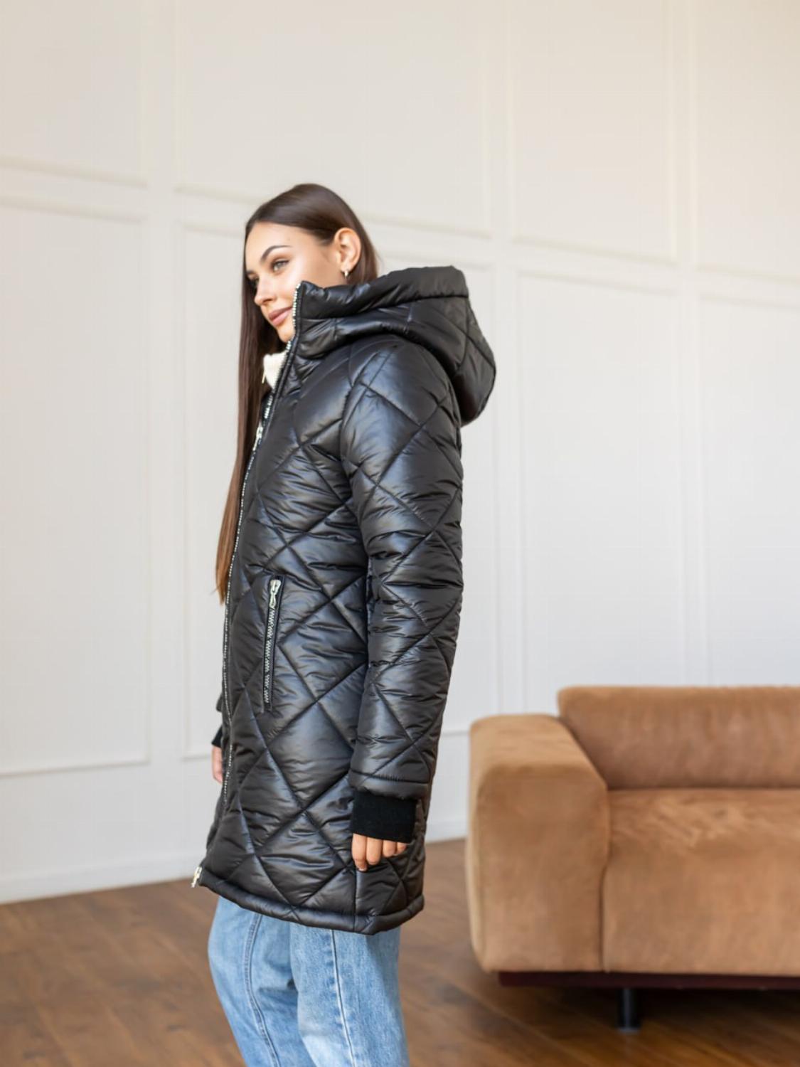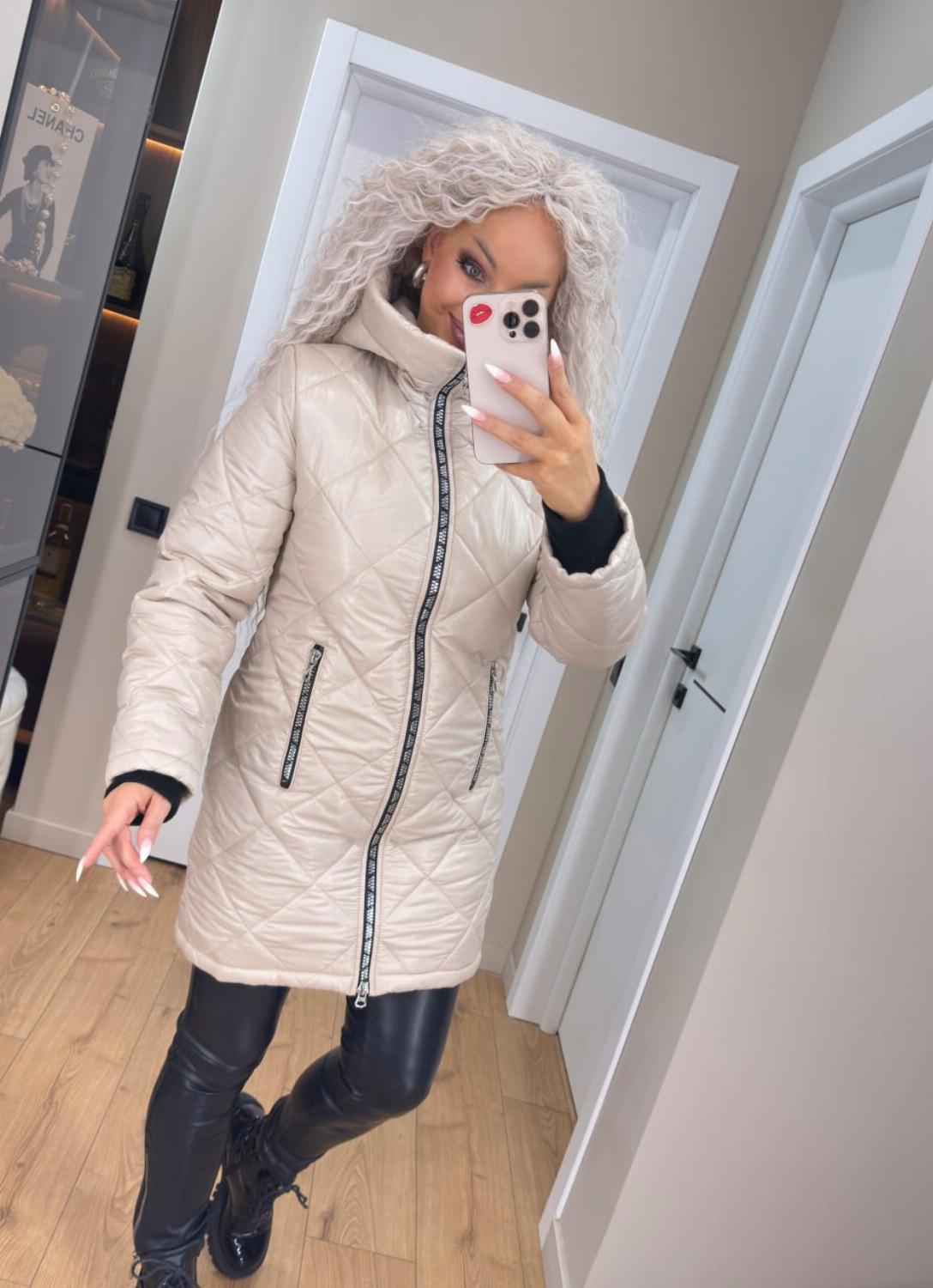 Два класичні кольори — чорний і беж — легко поєднуються як з повсякденними, так і з більш елегантними луками. Куртка чудово виглядає і з джинсами та кросівками, і зі шкіряними штанами чи чоботами.