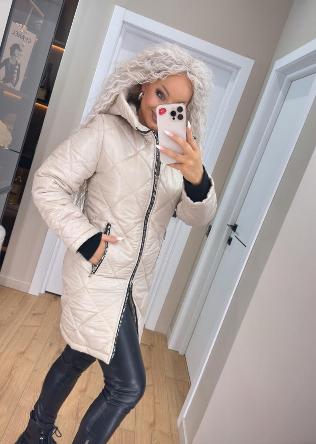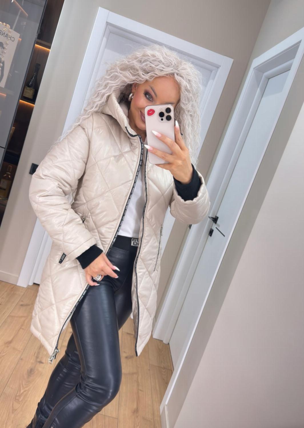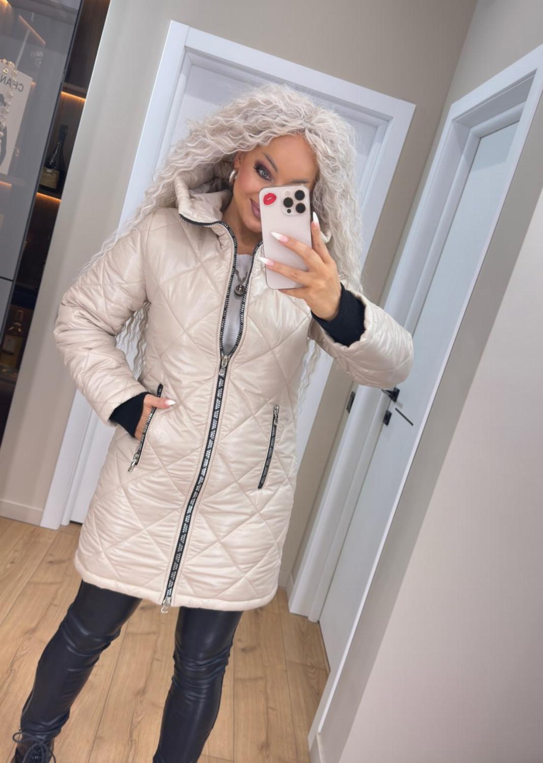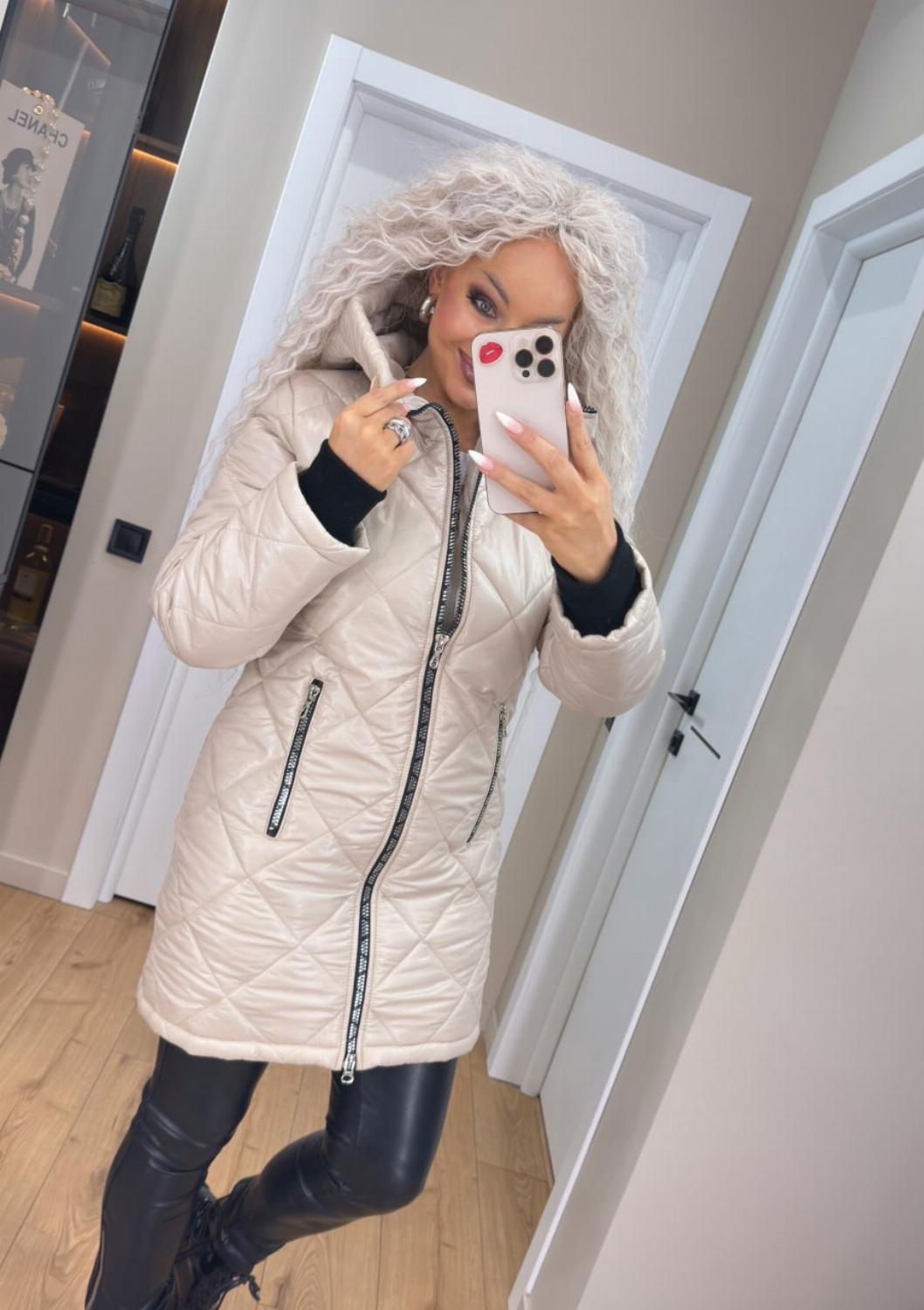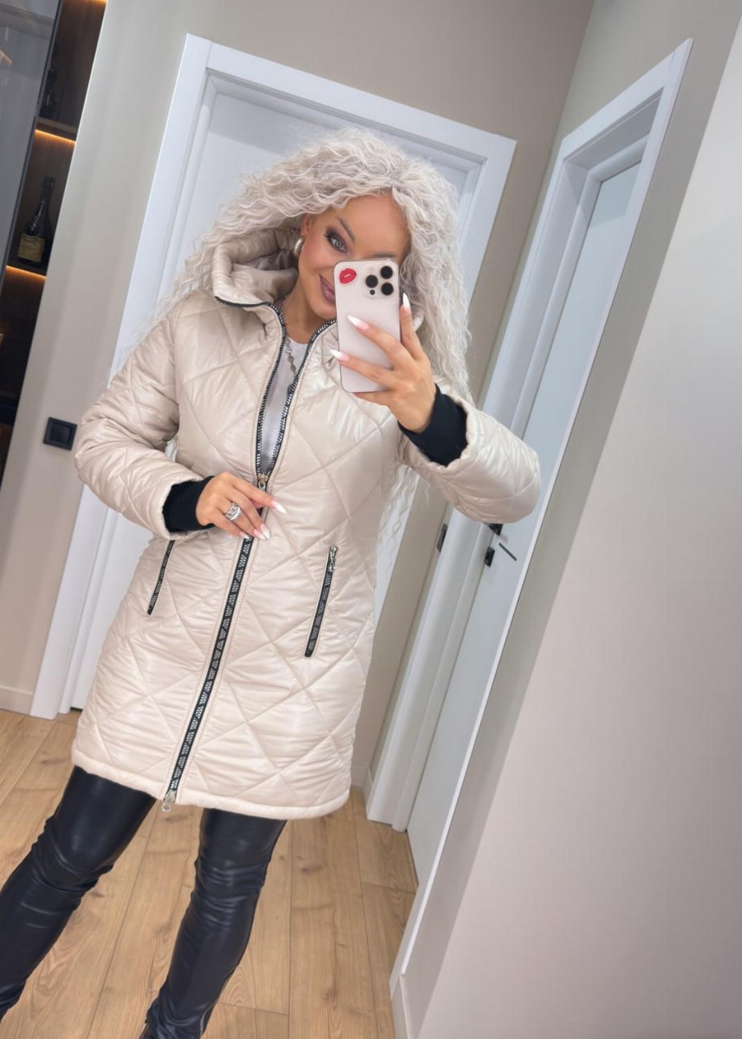 Два класичні кольори — чорний і беж — легко поєднуються як з повсякденними, так і з більш елегантними луками. Куртка чудово виглядає і з джинсами та кросівками, і зі шкіряними штанами чи чоботами.