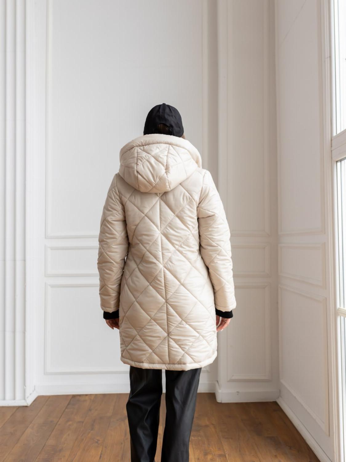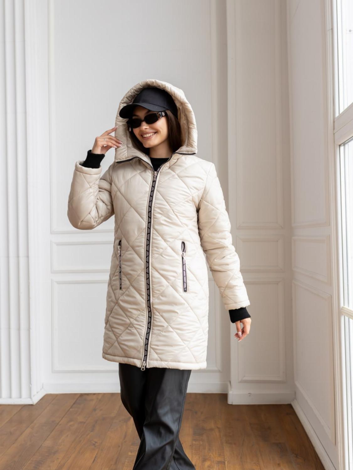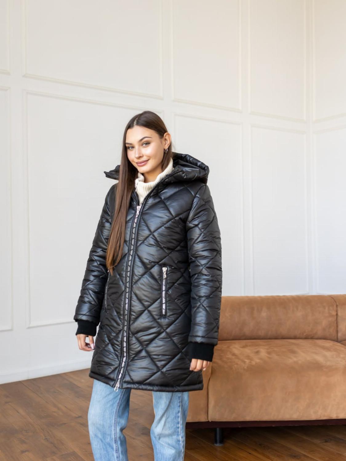 Ця подовжена куртка виготовлена з якісної плащівки та утеплена синтепоном 150, що гарантує надійний захист від холоду навіть у напрохолодніші дні. Лаконічний крій із трендовою стібкою та капюшоном створює сучасний і універсальний образ.