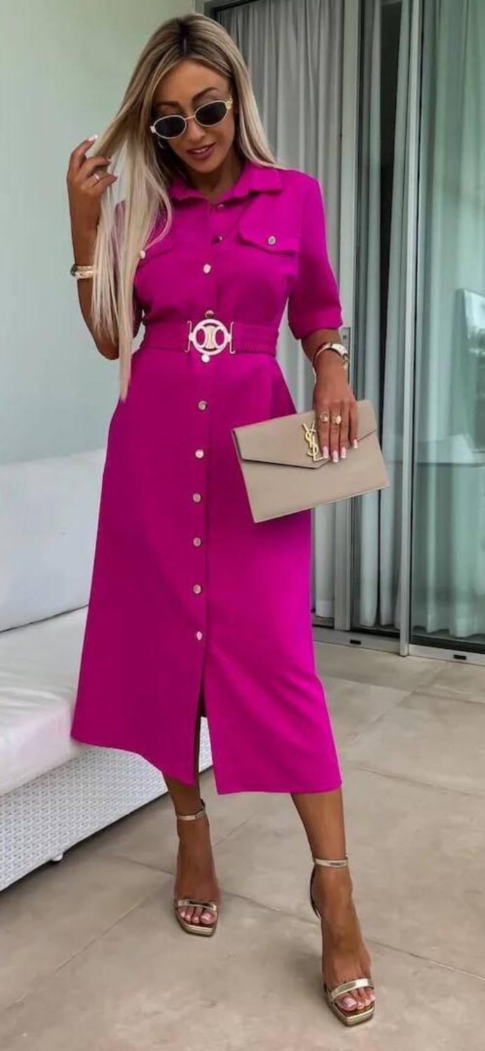 Багато років поспіль неможливо уявити гардероб модниці без універсальної сукні-сорочки. Цей стиль чудово поєднує в собі естетику і практичність, ефектний вигляд і комфорт. Елегантна сукня міді «Vicky» - безпрограшний варіант для тих, хто хоче виглядати жіночно і стильно в спекотну погоду.