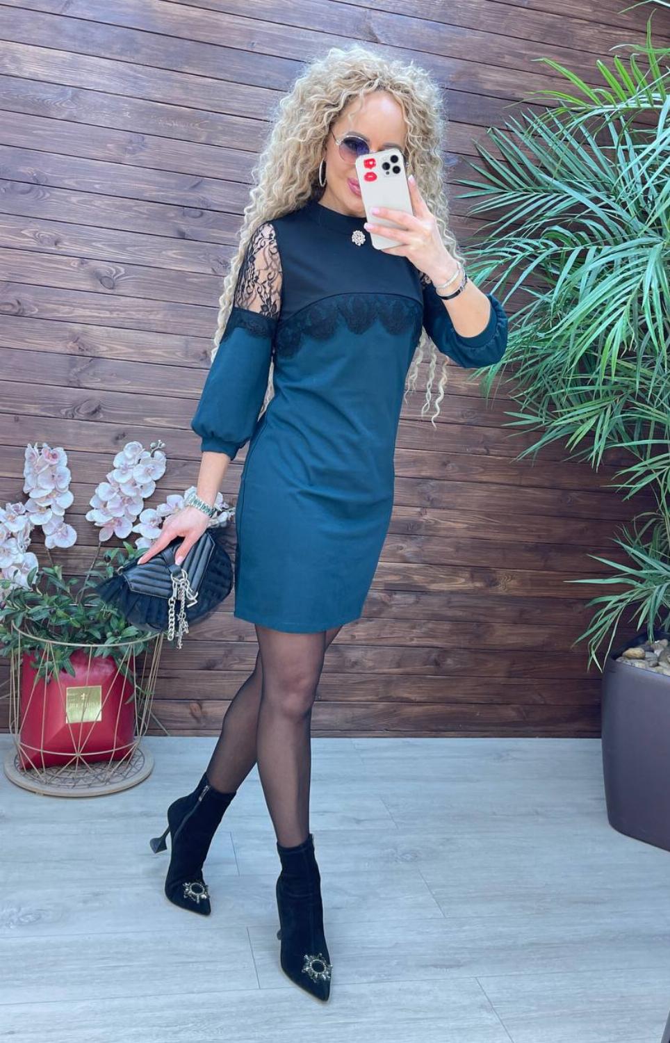 Елегантна сукня з преміального креп-дайвінгу створена для жінок, які цінують комфорт і вишуканий стиль. Лаконічний крій, ніжні мереживні вставки на плечах та плавні лінії силуету підкреслюють жіночність і витонченість.