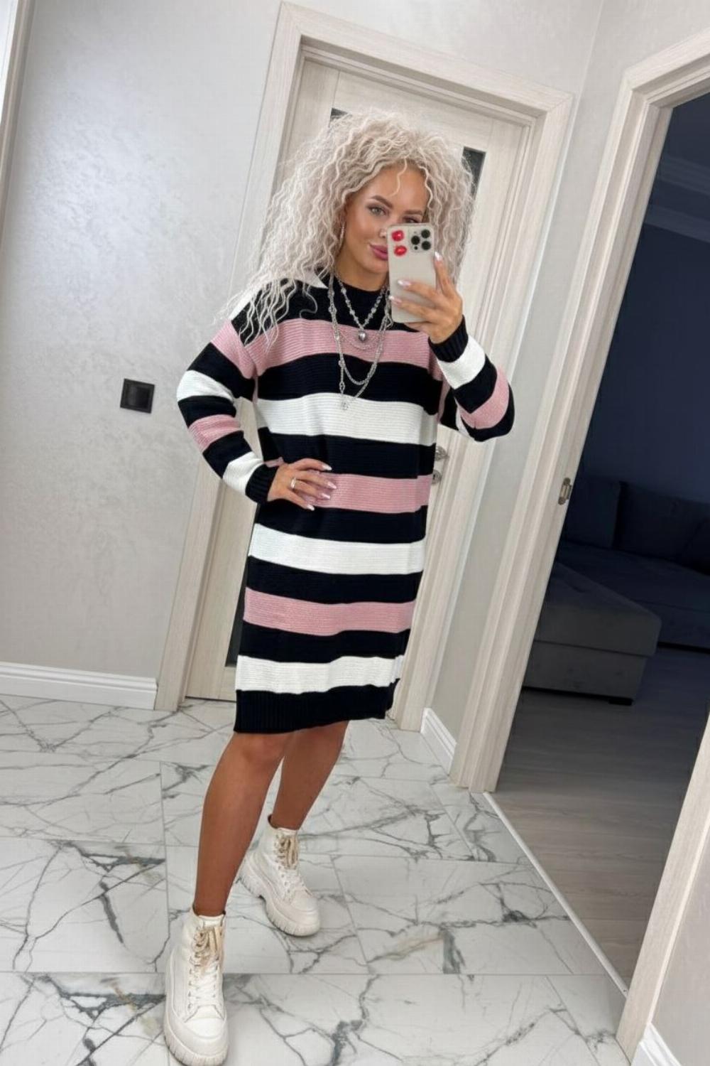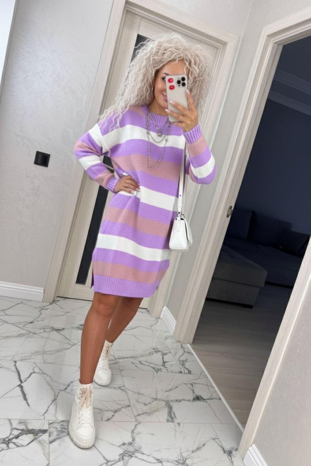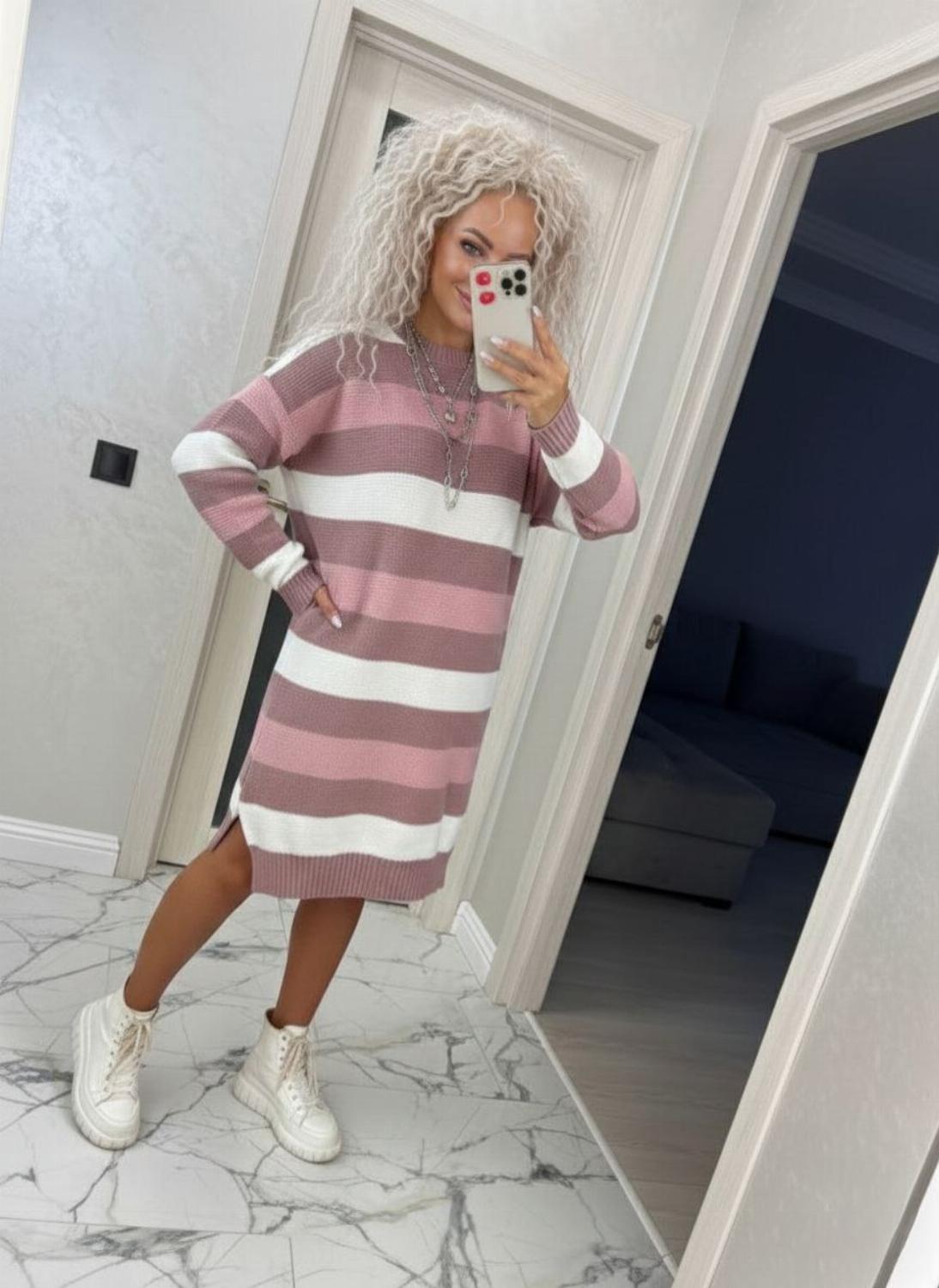 Стильна тепла трикотажна сукня в смужку «Джулія» відмінно підійде на кожен день в прохолодну пору року. Модель виконана з якісної м'якої пряжі, яка зігріє вас в осінньо-зимовий період і подарує відчуття комфорту.