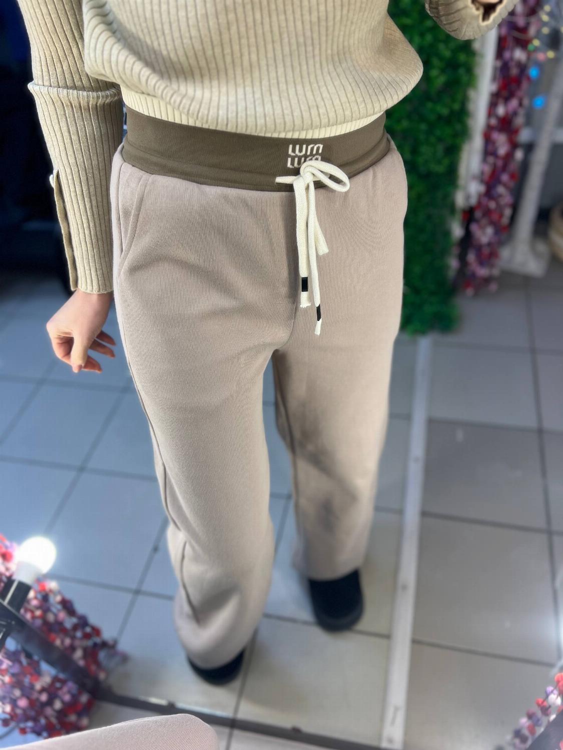Штани чудово поєднуються з в’язаними светрами, лонгслівами, базовими футболками та худі. Для більш акуратного образу комбінуйте з облягаючим гольфом або трикотажним топом. Взуття — кросівки, сліпони, уггі або утеплені лофери. Ідеальний варіант для прогулянок, подорожей та стильних міських образів.