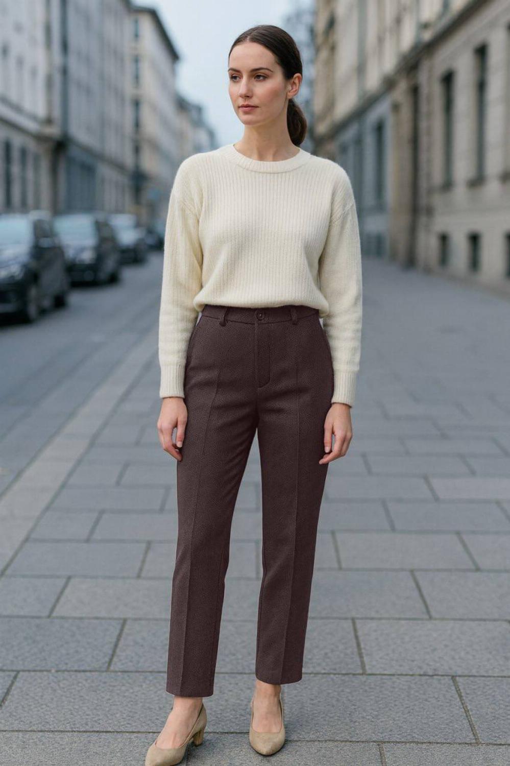 Стильні жіночі штани великих розмірів «Роббі» - шикарна модель на кожен день в осінньо-зимовий період. Зручна посадка, приємна до тіла тканина, штани дуже практичні, підходять під будь-який образ. Штани виготовлені з якісної тканини - вовна ялинка зі стрейчем.