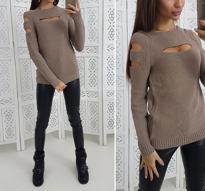 Теплий стильний жіночий светр "Марлен" з вирізами на плечах та грудях – це хіт цього сезону! У кожної модниці в гардеробі має бути такий светр. Приємний до тіла, зручний та практичний, відмінно поєднується з лосинами, брюками, спідницями чи джинсами.