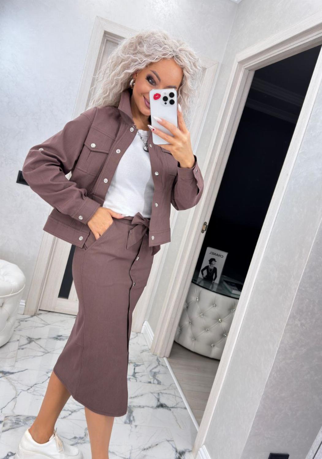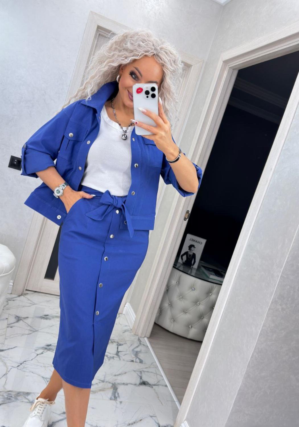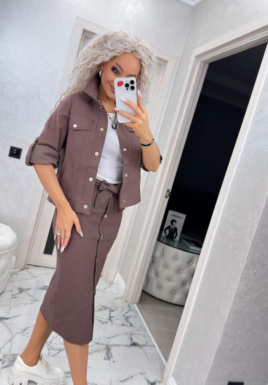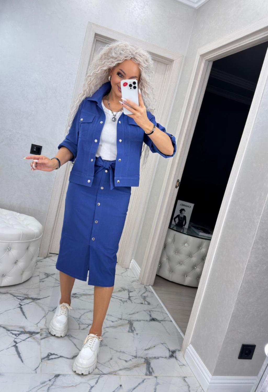 Модний і дуже зручний жіночий костюм. Тільки подивіться наскільки він стильний, гармонія в кожній деталі! Костюм виготовлений з якісної тканини - стрейчевого джинс коттону. Вироби з такої тканини мають багато переваг, таких як : повітряпроникність, гігроскопічність, пратичність та довговічність.