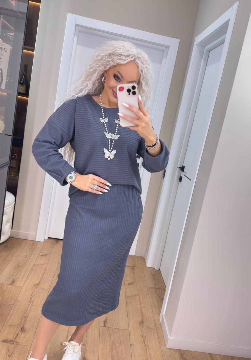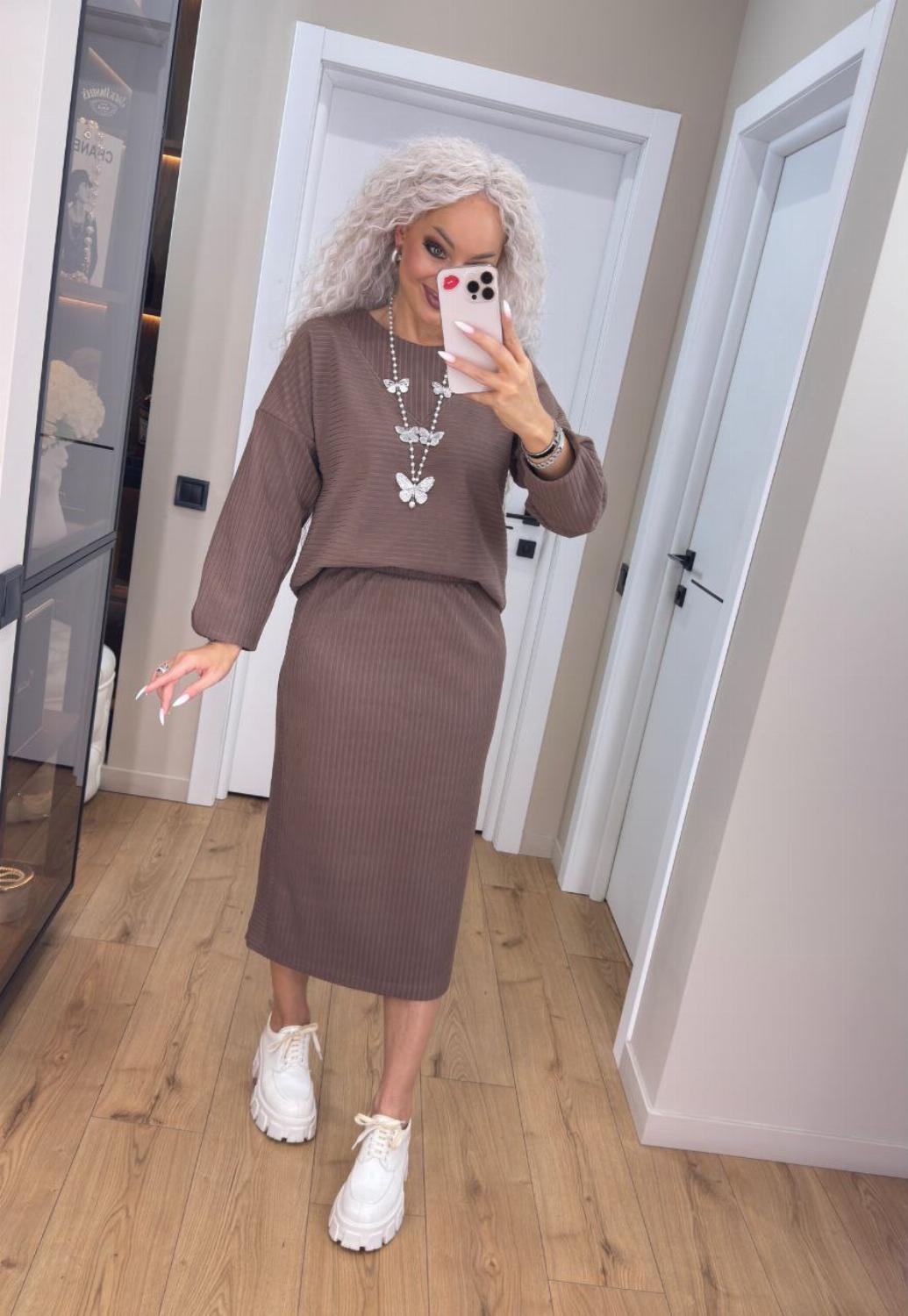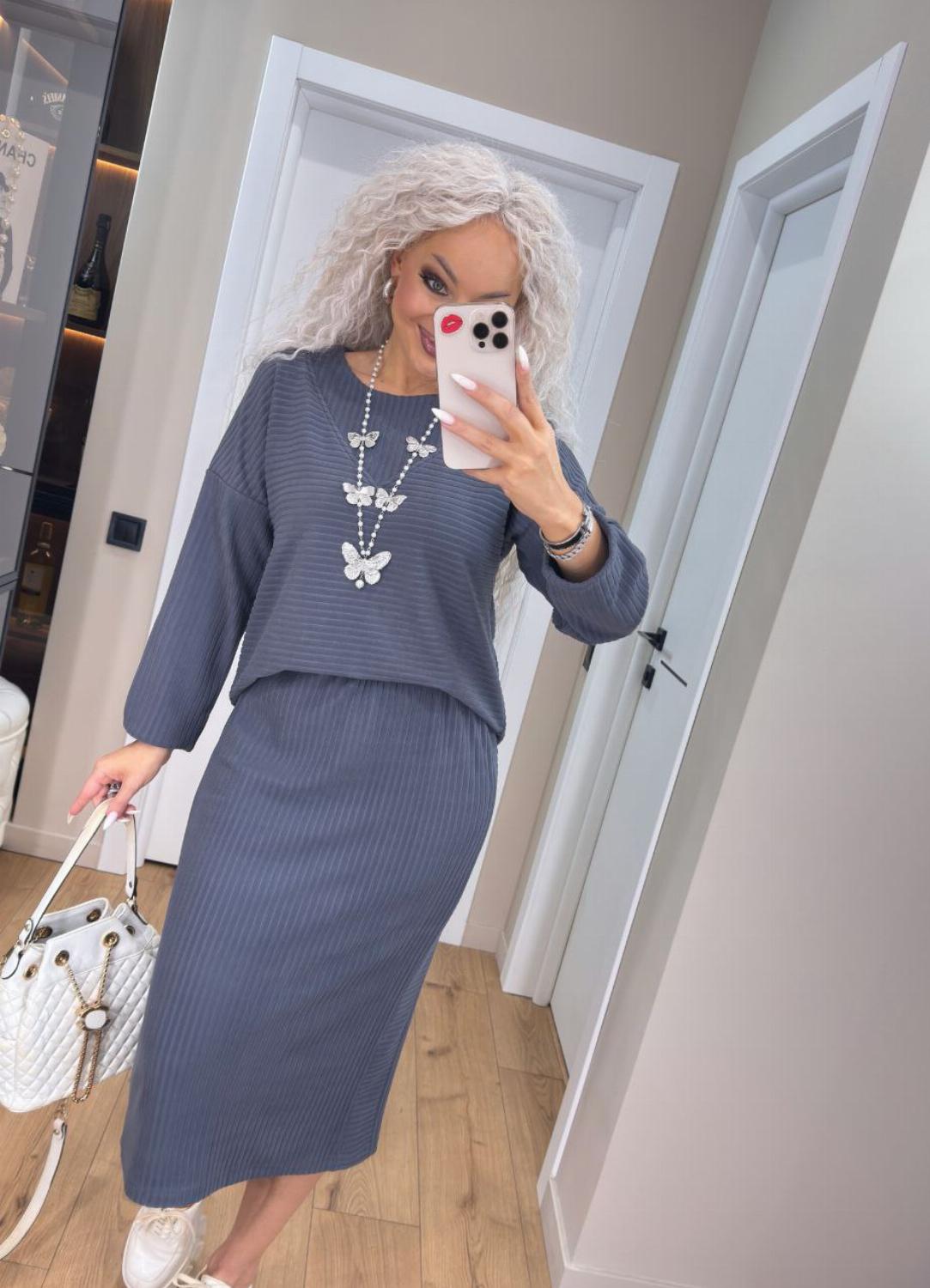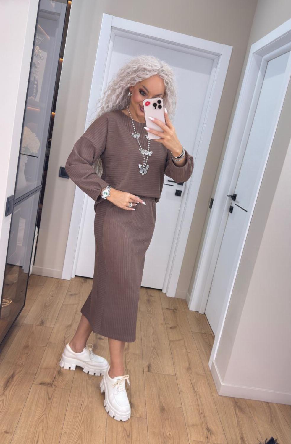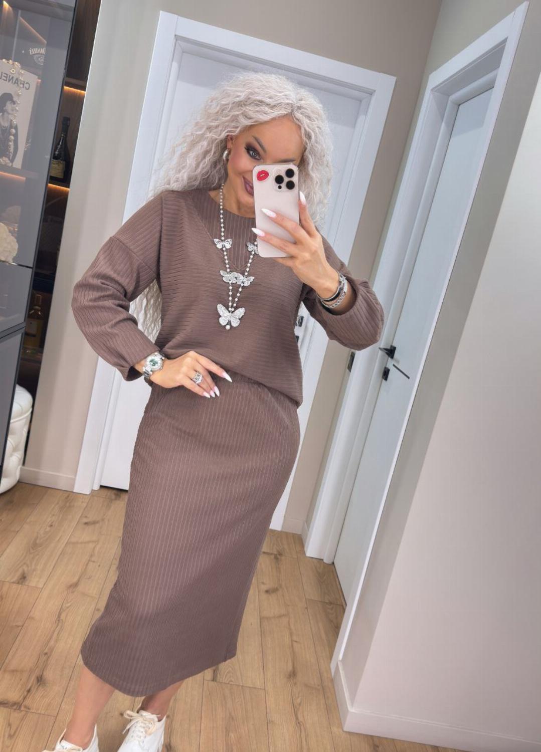 Костюм складається з вільного светра та спідниці міді, які красиво підкреслюють фігуру та дарують абсолютний комфорт.