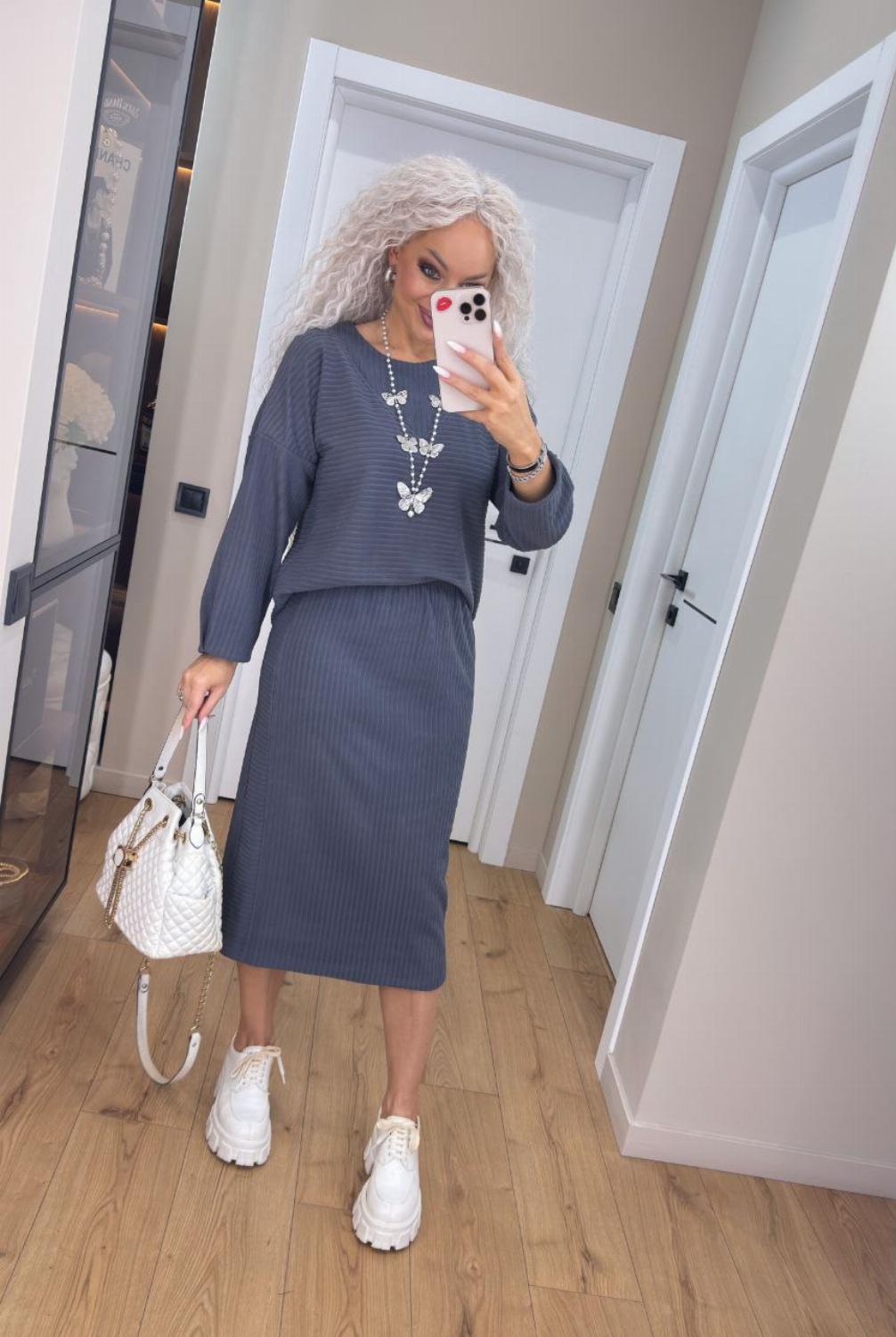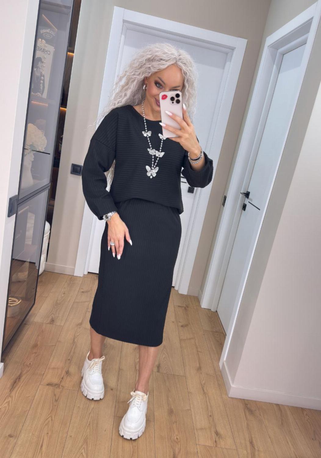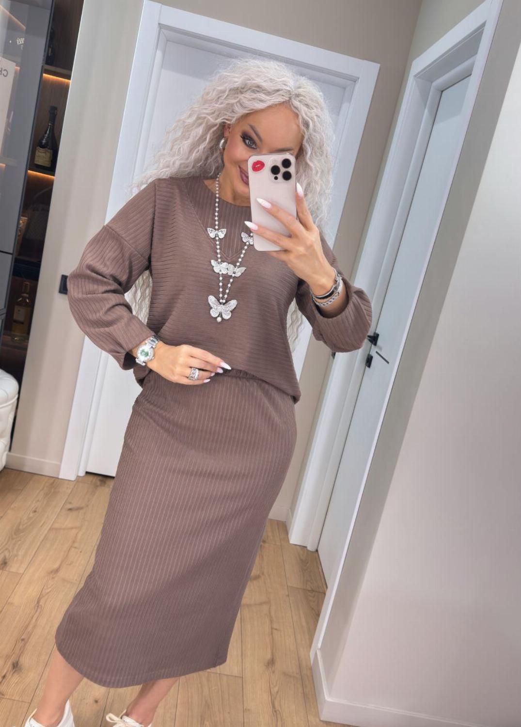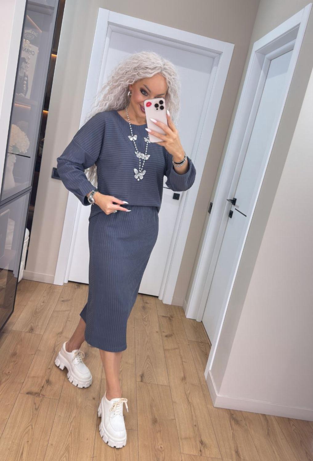 Костюм складається з вільного светра та спідниці міді, які красиво підкреслюють фігуру та дарують абсолютний комфорт.