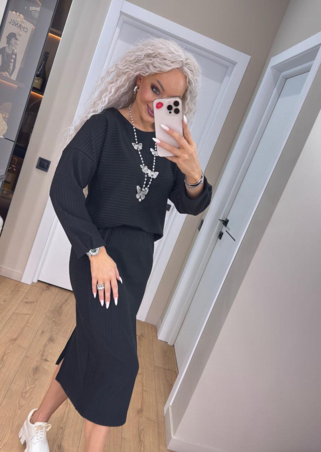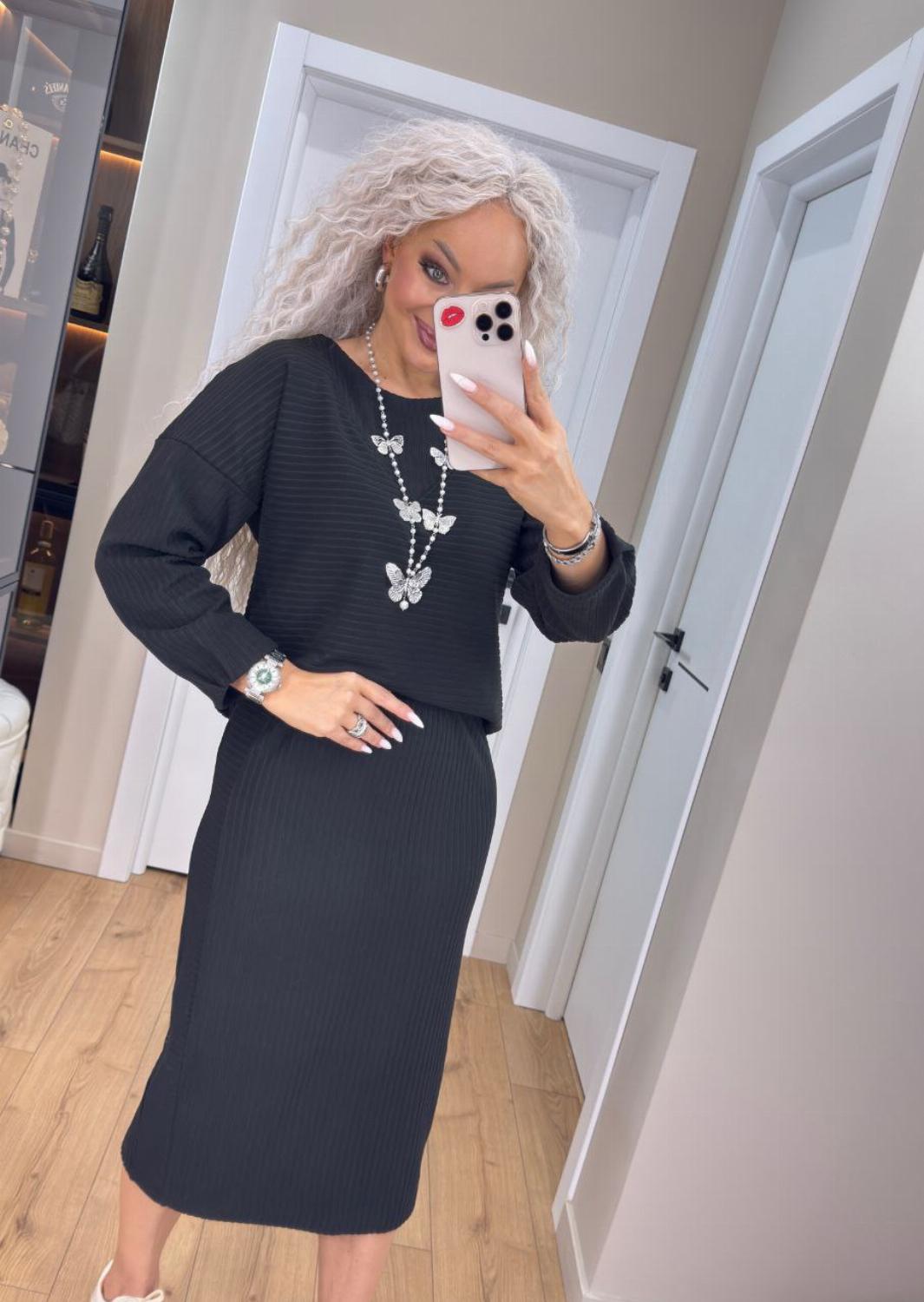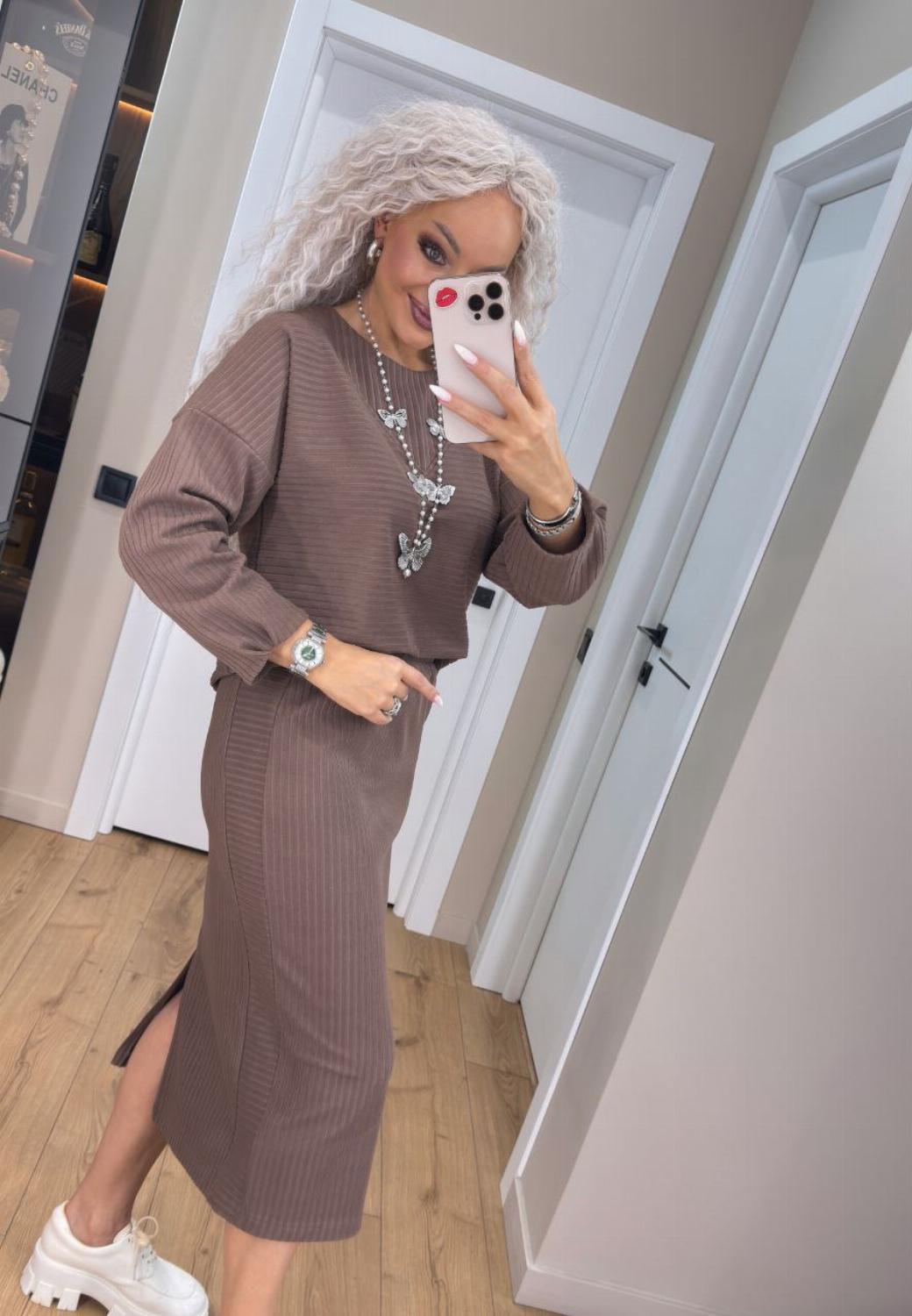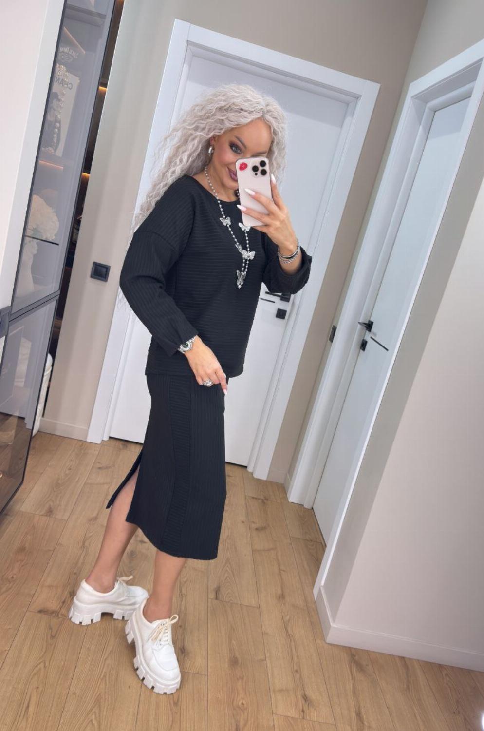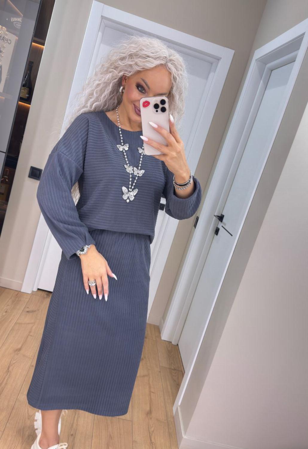 Костюм складається з вільного светра та спідниці міді, які красиво підкреслюють фігуру та дарують абсолютний комфорт.