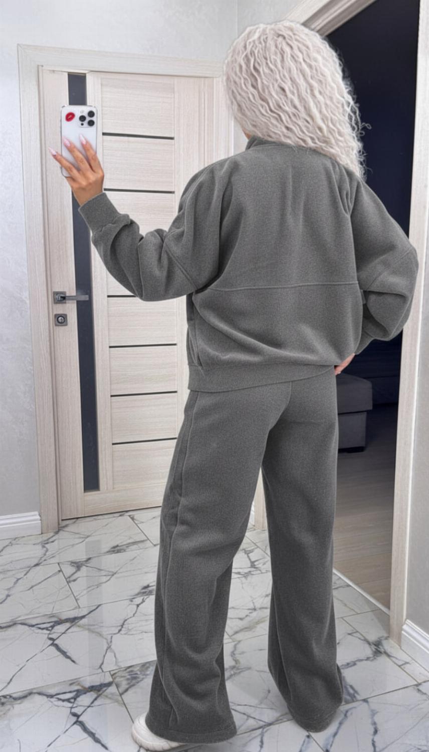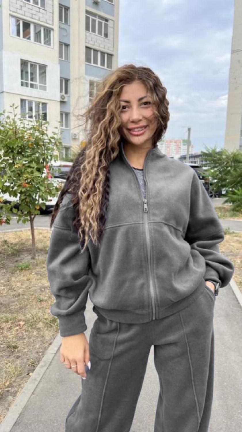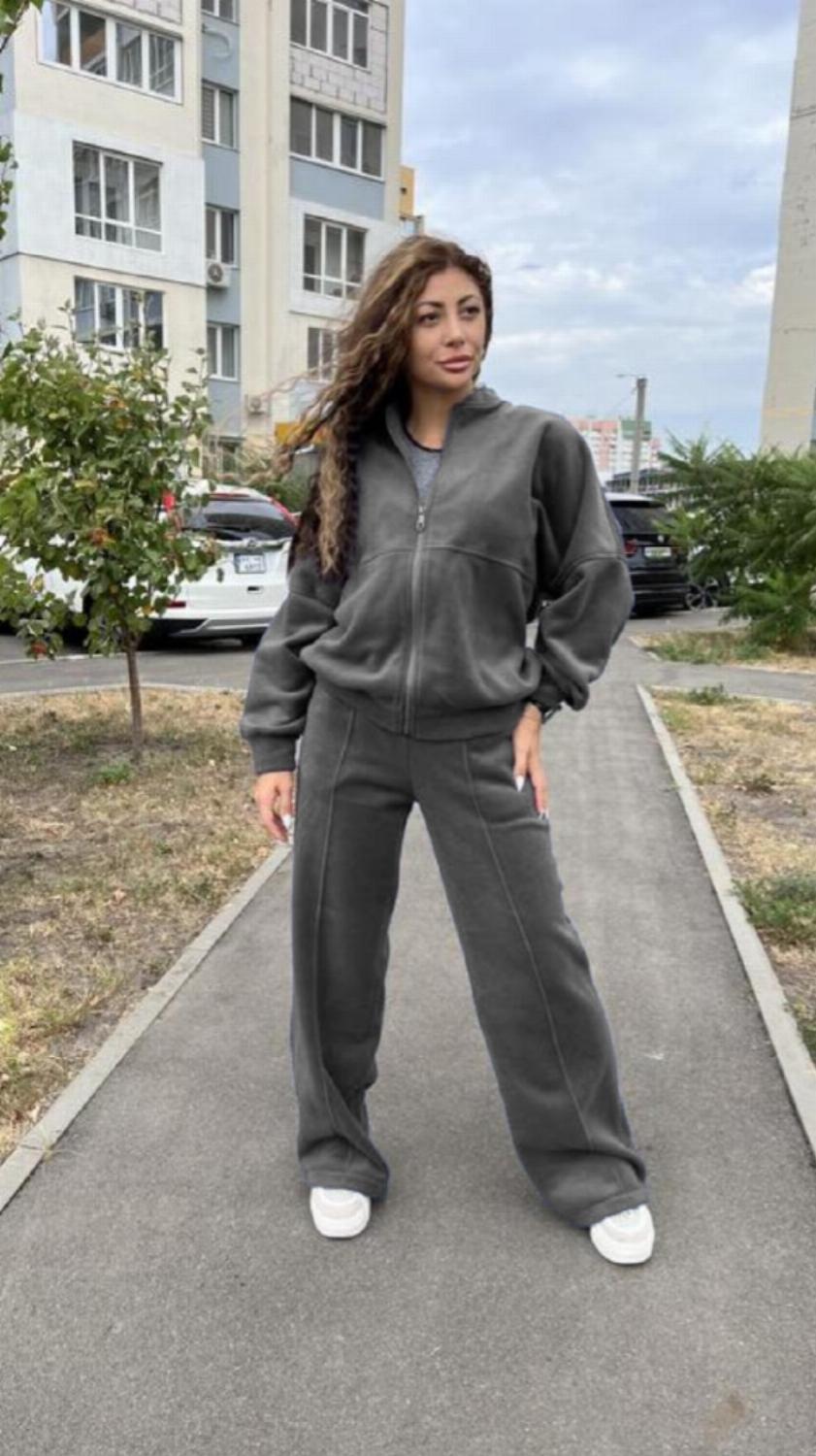Костюм складається з двох деталей - кофти на блискавці вільного крою та штанів-палаццо на резинці. Він буде прекрасно поєднуватися з кросівками та ботинками, а також підійде під будь-яку куртку або жилетку.