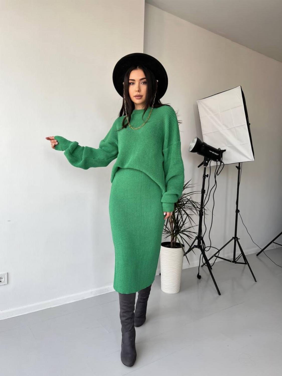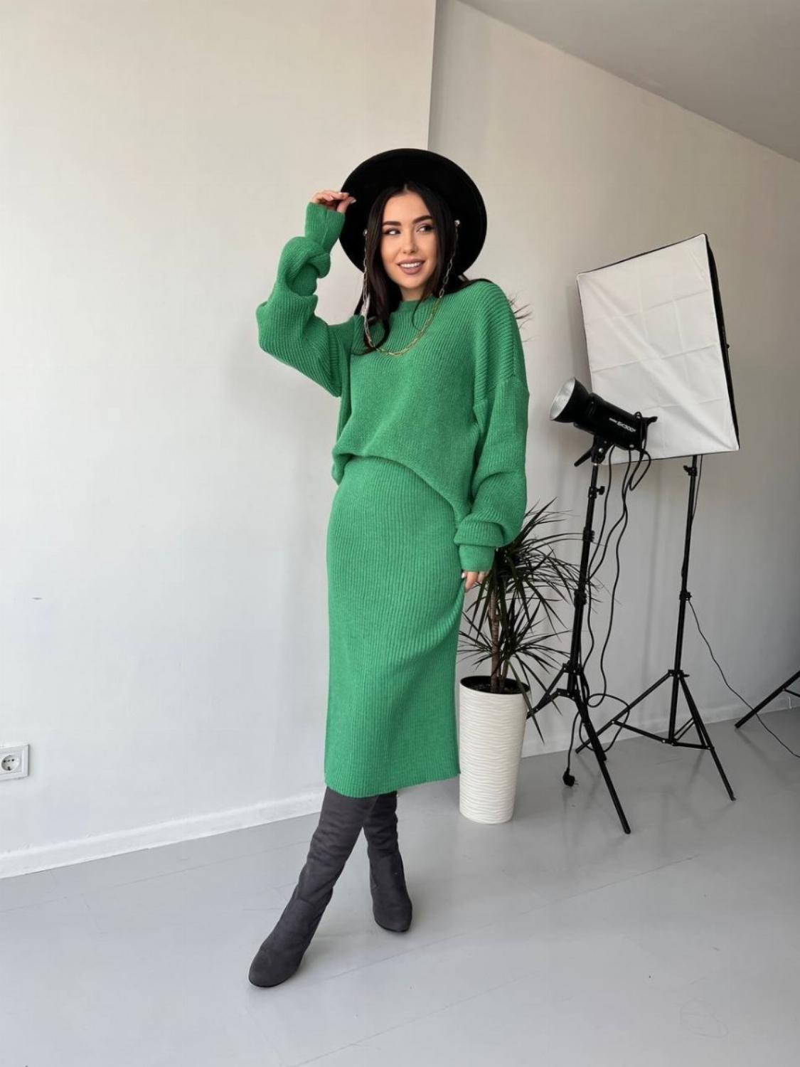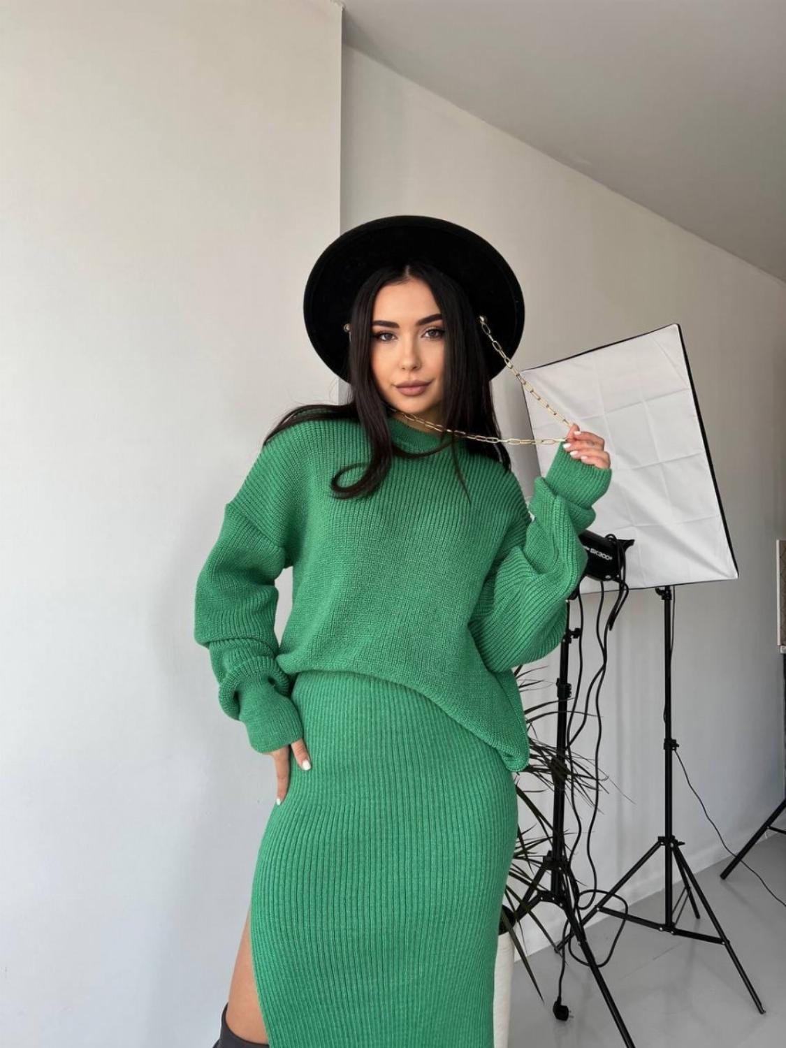 Костюм “Masha” — це поєднання затишку та сучасного стилю. М’яка в’язка й трендовий крій із розрізом на спідниці роблять його універсальним варіантом як для щоденних образів, так і для стильних прогулянок чи зустрічей із друзями.