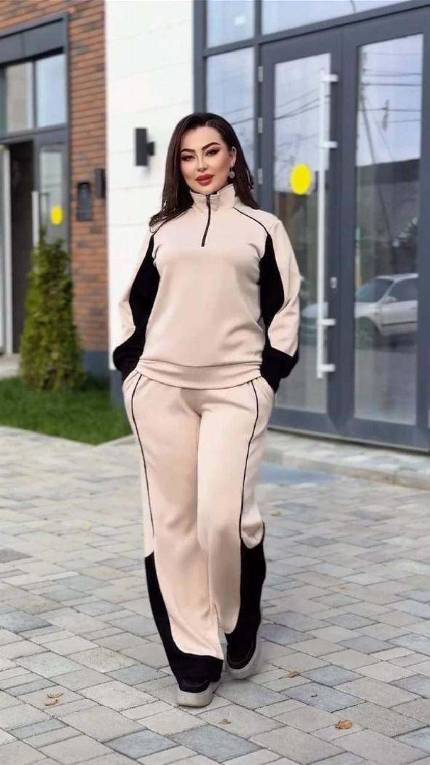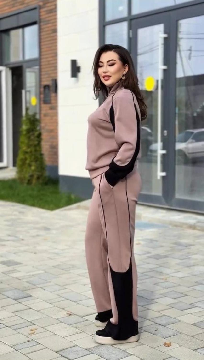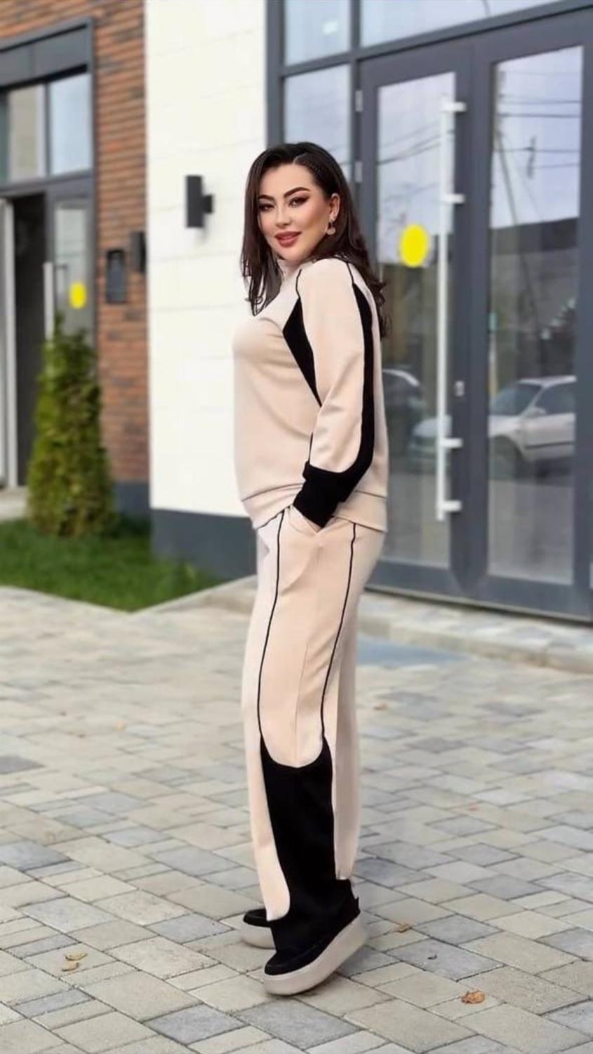 Костюм легко поєднується з кросівками, кедами, уггами чи черевиками, а також чудово виглядає з пальтами, куртками та жилетами.