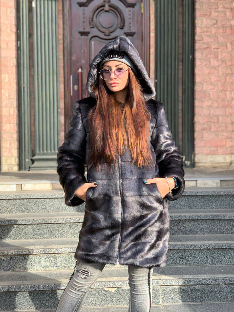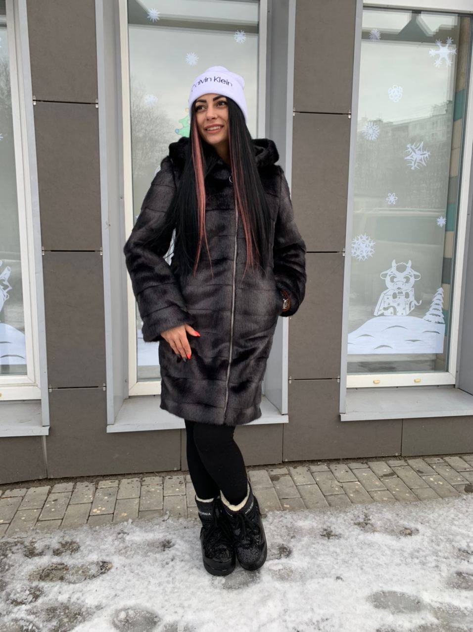 Чудова шуба, в якій ви завжди будете в центрі уваги! Модель має прямий крій, вільний капюшон, дві місткі щілинні кишені з боків і стильний ремінь з екошкіри. Шуба застібається на блискавку. Виріб виконано з чудової екомеханіки під ніркою, м'яке, пухнасте і неймовірно тепле, за зовнішнім виглядом не відрізняється від натурального. Розмір 62 довжина 90 см, рукав 65 см, плечі 52 см, ПОГ 68 см, ПОБ 74 см