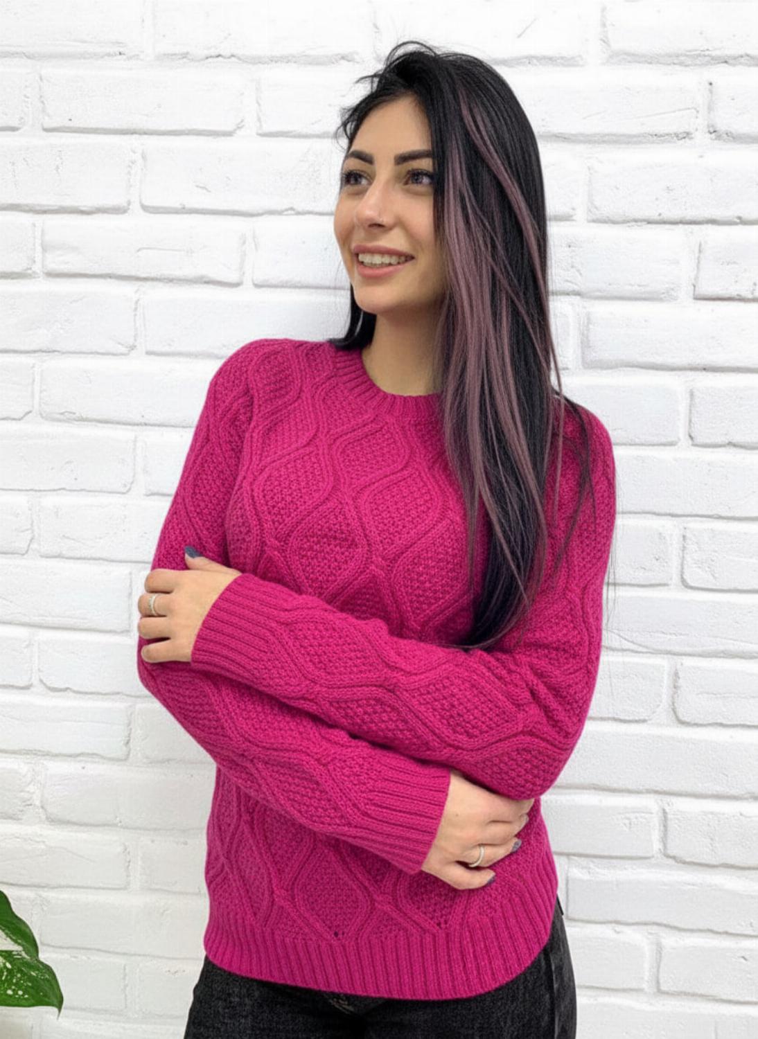 Яскравий елегантний жіночий светр "Anna" - ошатна повсякденна модель для любительок в'язаних речей. Виконано модель із якісної м'якої пряжі, у складі якої є шерсть. Приємний до тіла, не шкутильгає, добре поєднується з будь-яким низом, дуже зручний. Такий светр повинен обов'язково потрапити до Вашого гардеробу!