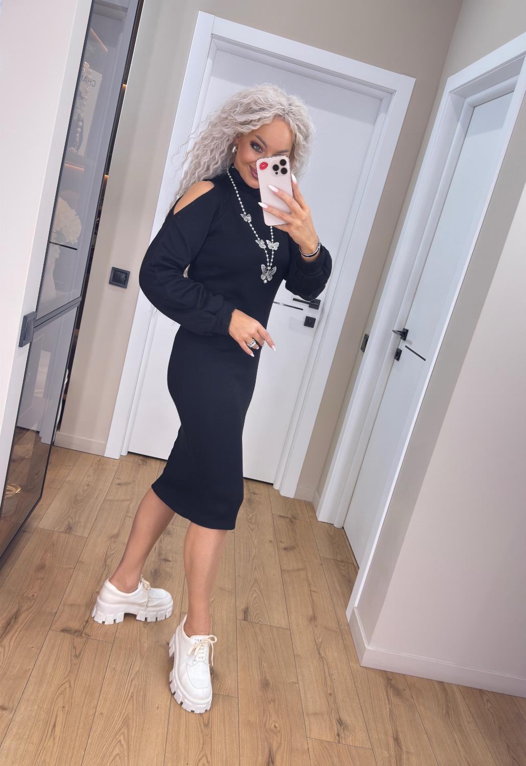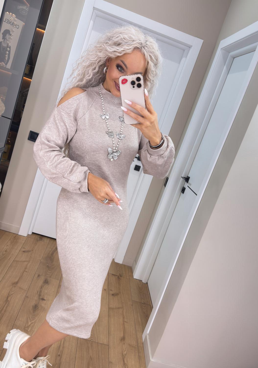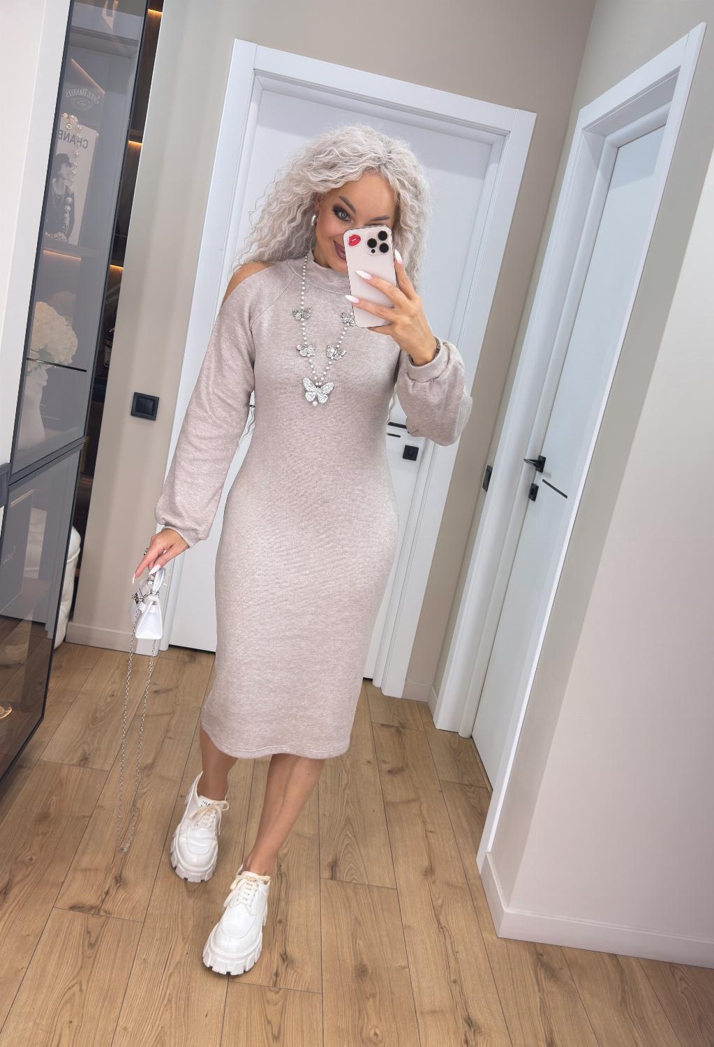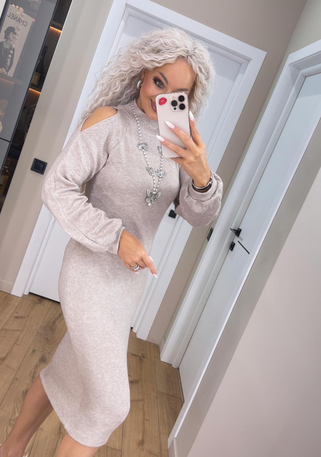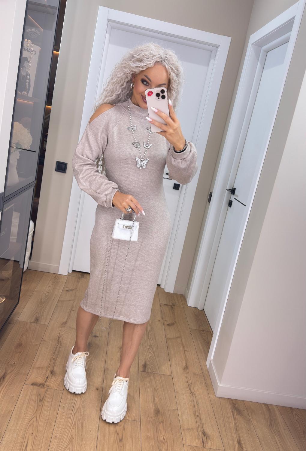 Елегантна тепла сукня-міді з ангори з відкритими плечима "Tess" створена для жінок, що володіють тонким смаком і непереборним бажанням виглядати на мільйон. Сукня з відкритими плечима буде доречна на будь-якому святковому заході чи побаченні. Модель приталеного силуету підкреслить всі переваги фігури і не залишить вас непоміченою. Родзинкою даної моделі можна сміливо вважати оригінальні довгі рукави з розрізами на плечах. Вони кокетливо оголюють плечі, роблячи стриманий образ ніжним і романтичним.