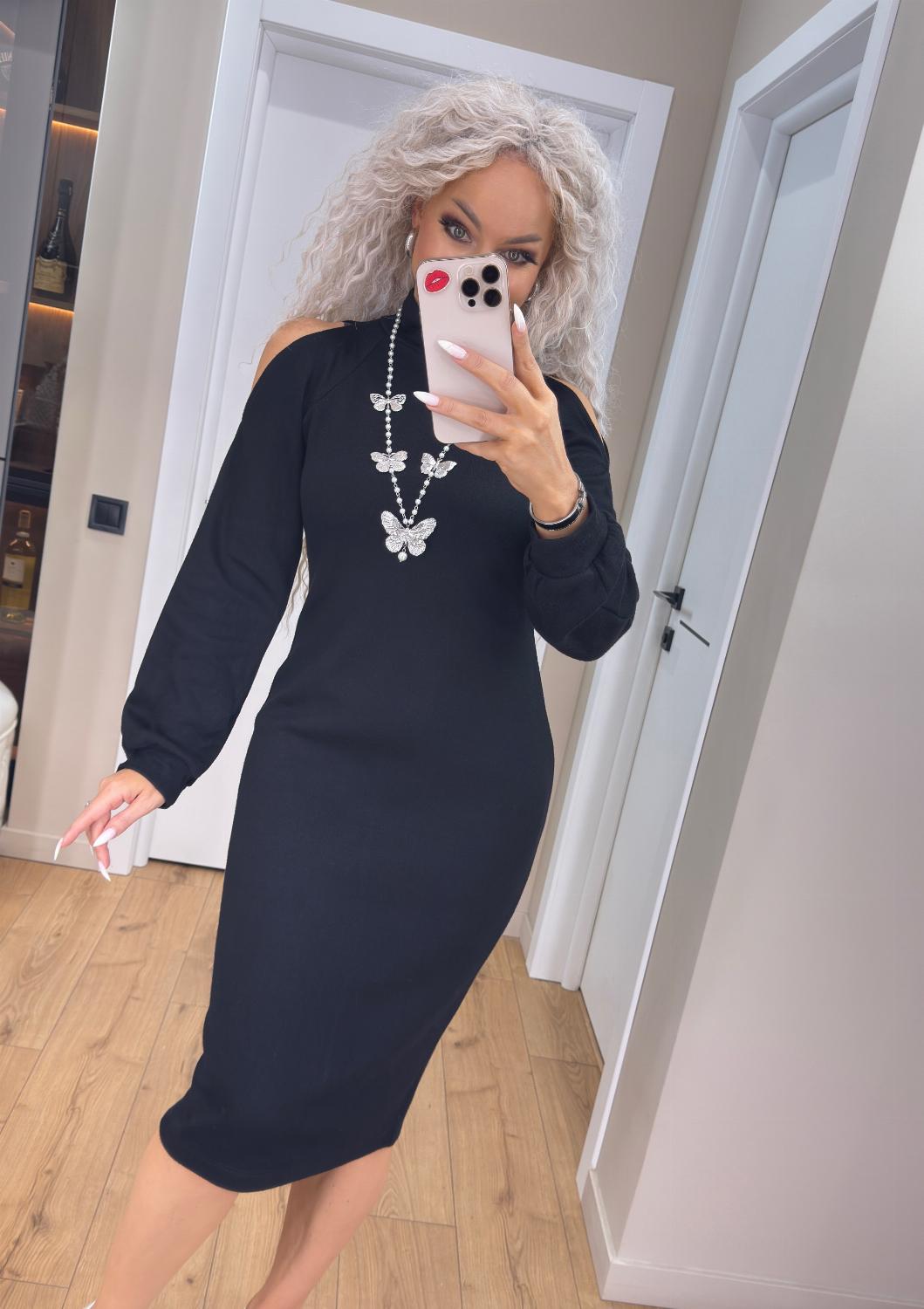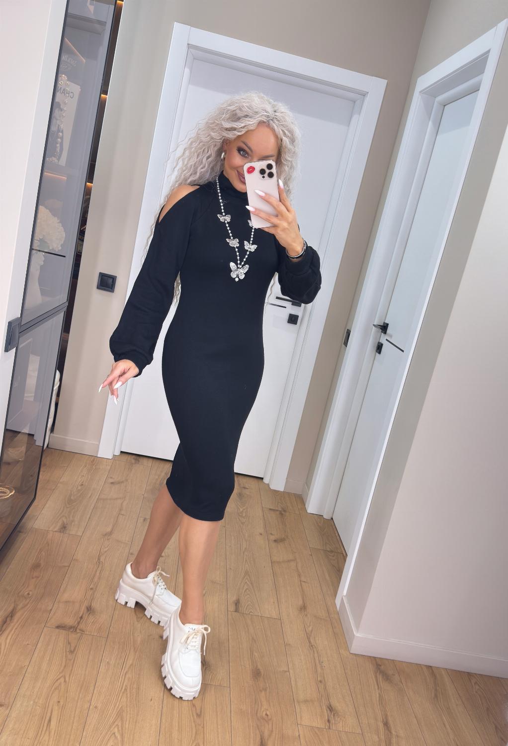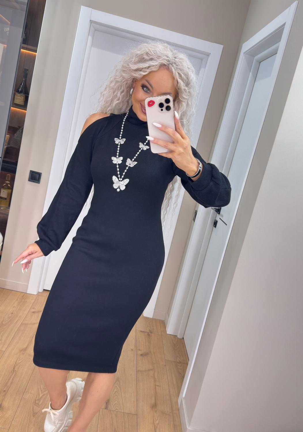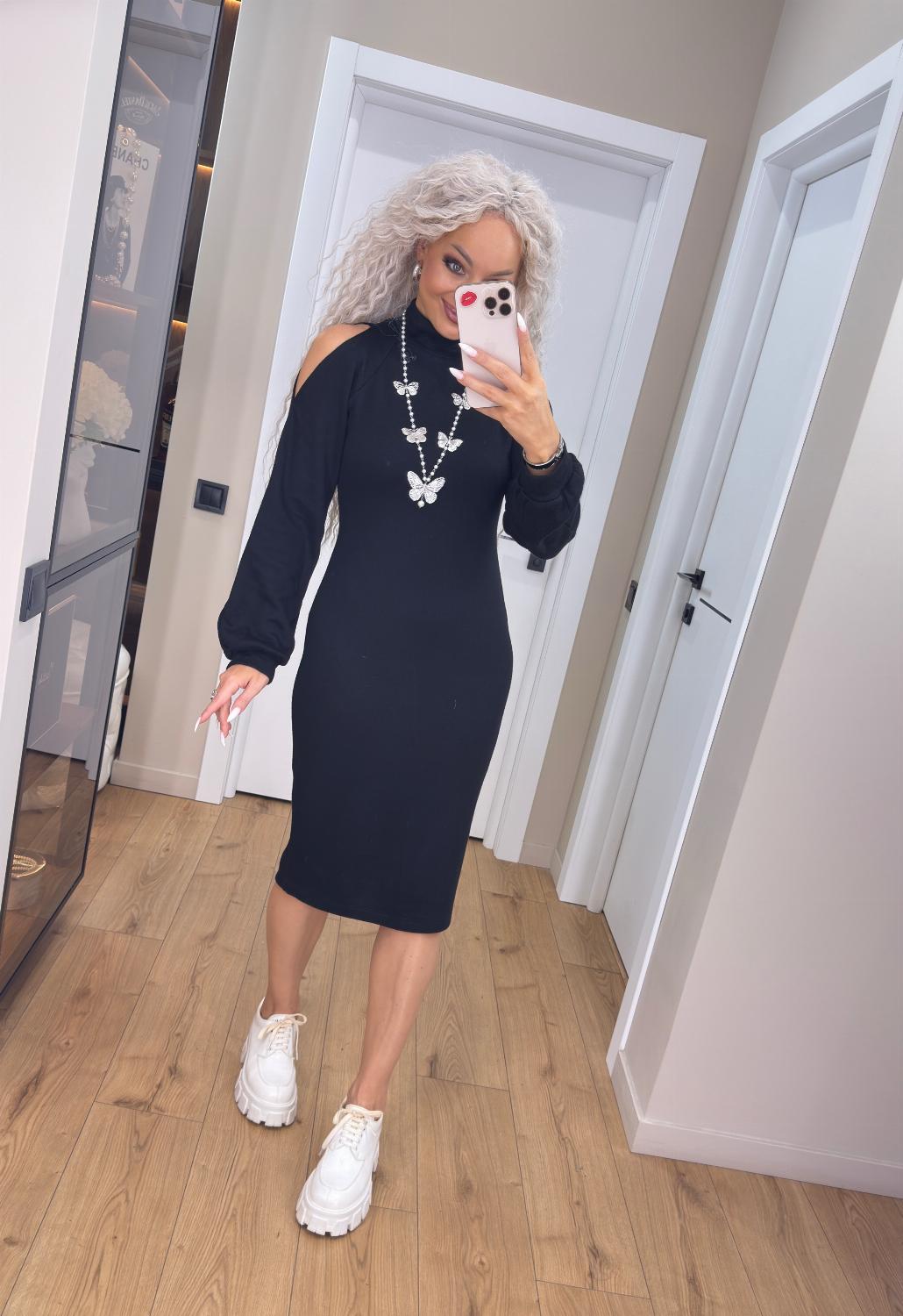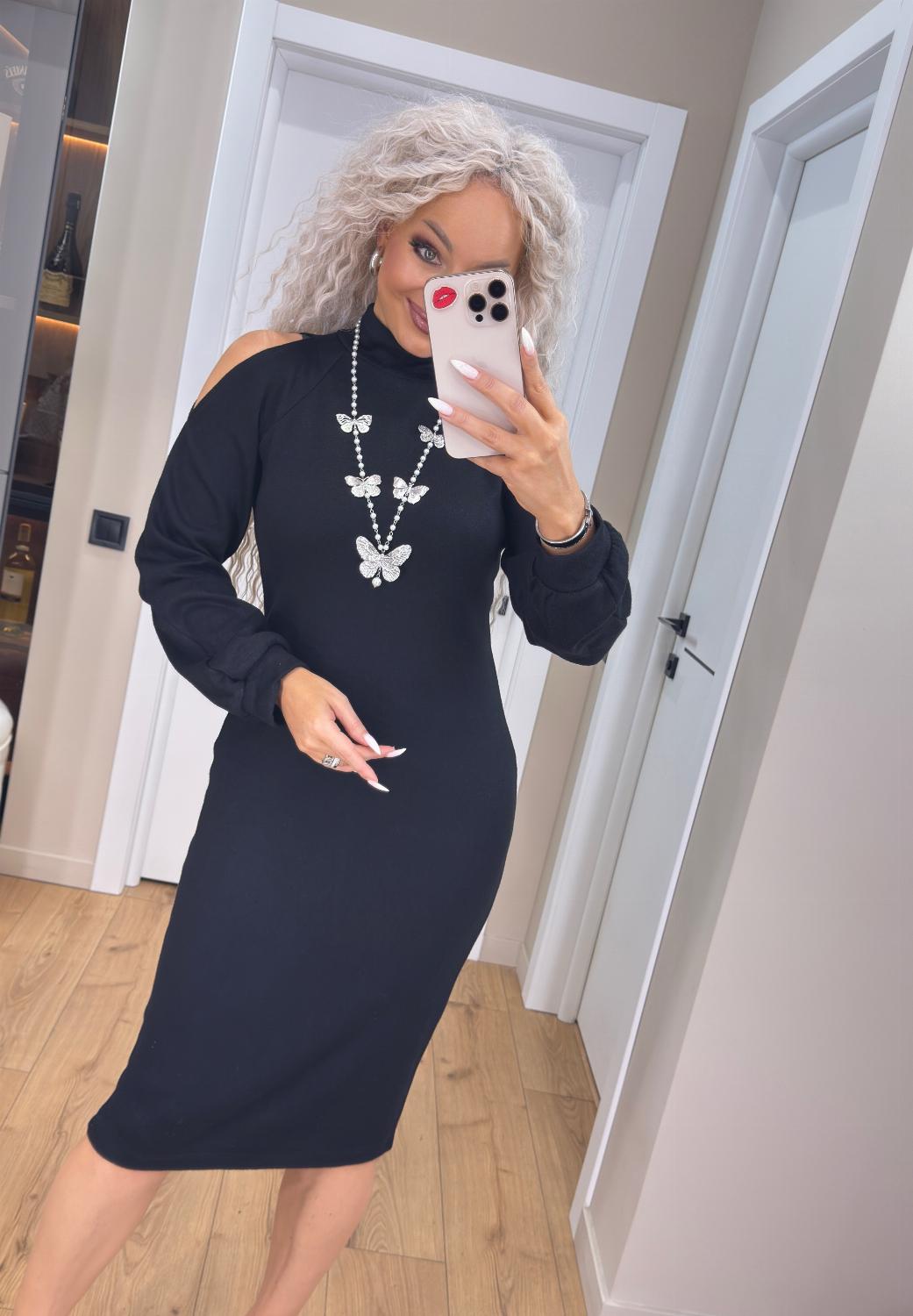 Елегантна тепла сукня-міді з ангори з відкритими плечима "Tess" створена для жінок, що володіють тонким смаком і непереборним бажанням виглядати на мільйон. Сукня з відкритими плечима буде доречна на будь-якому святковому заході чи побаченні. Модель приталеного силуету підкреслить всі переваги фігури і не залишить вас непоміченою. Родзинкою даної моделі можна сміливо вважати оригінальні довгі рукави з розрізами на плечах. Вони кокетливо оголюють плечі, роблячи стриманий образ ніжним і романтичним.