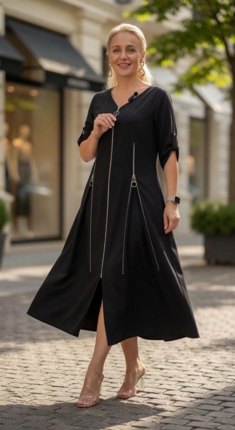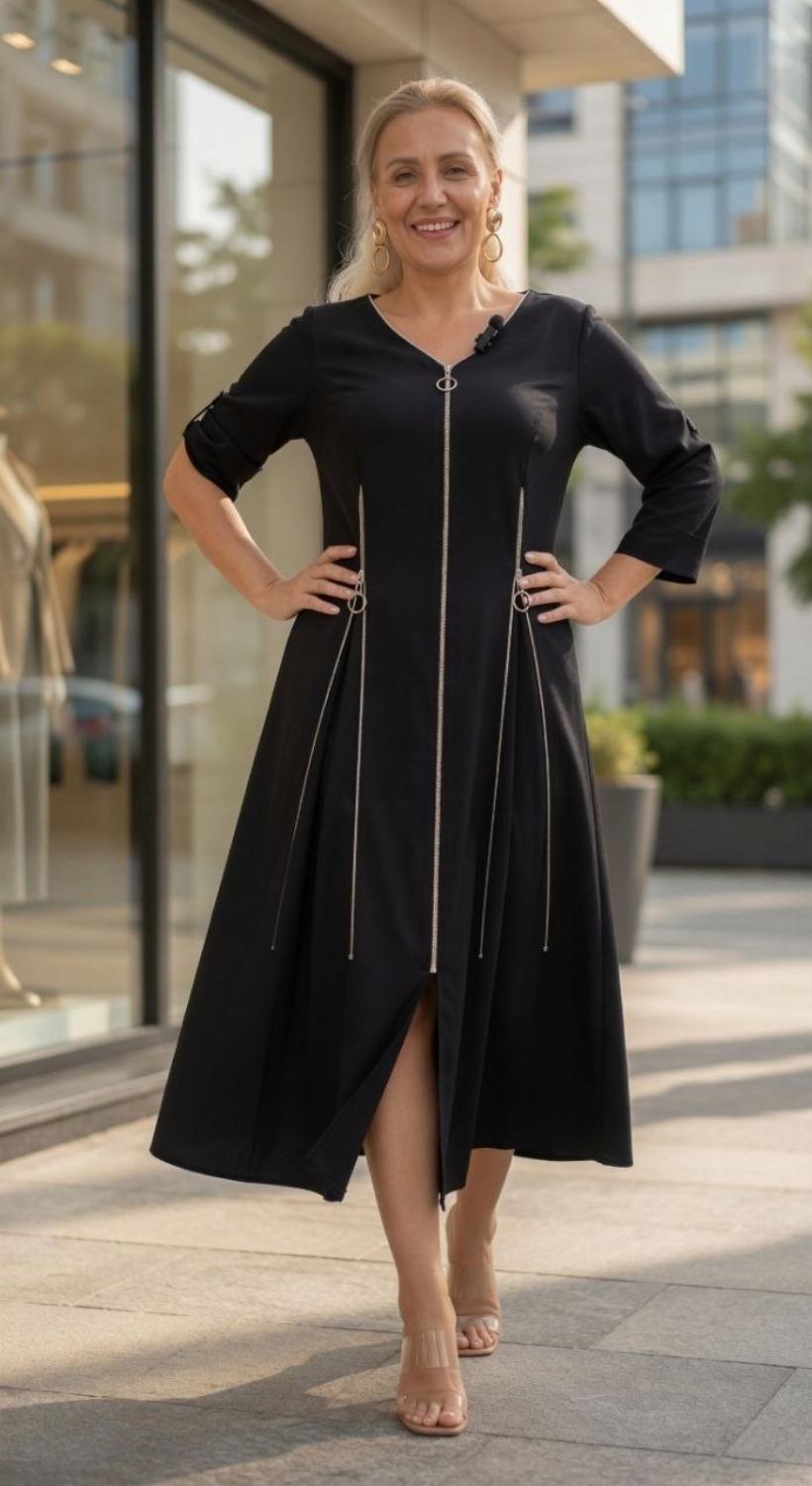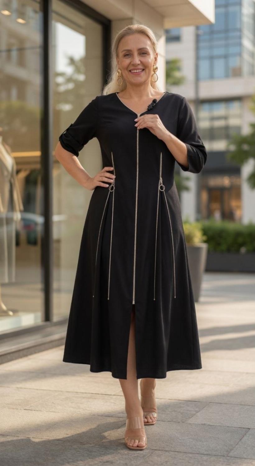 Секрет стрункості: Вертикальні блискавки візуально витягують силует, роблячи фігуру витонченою та гармонійною.