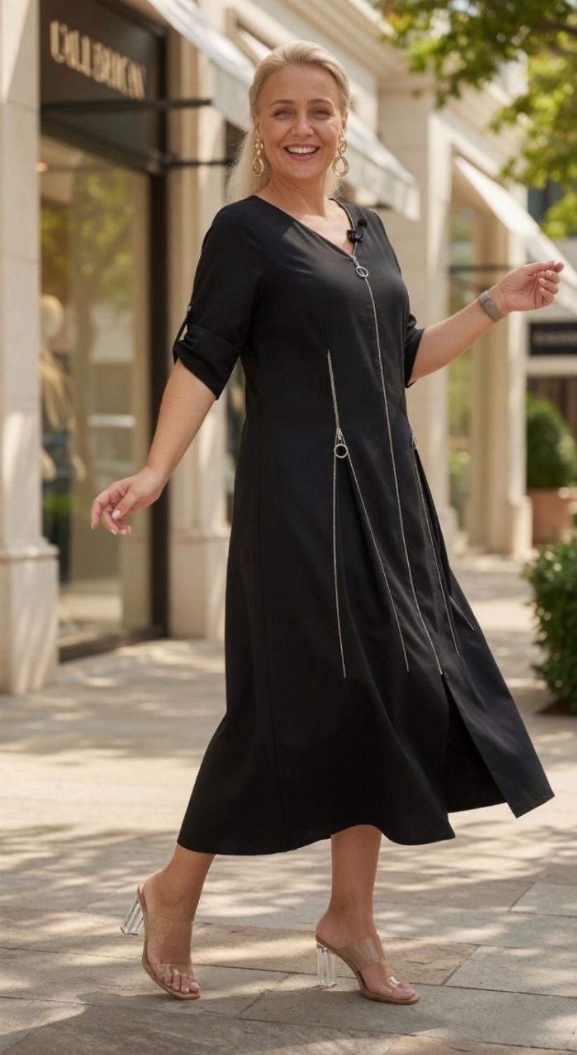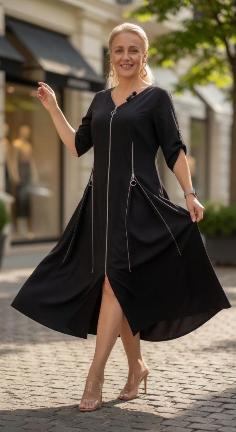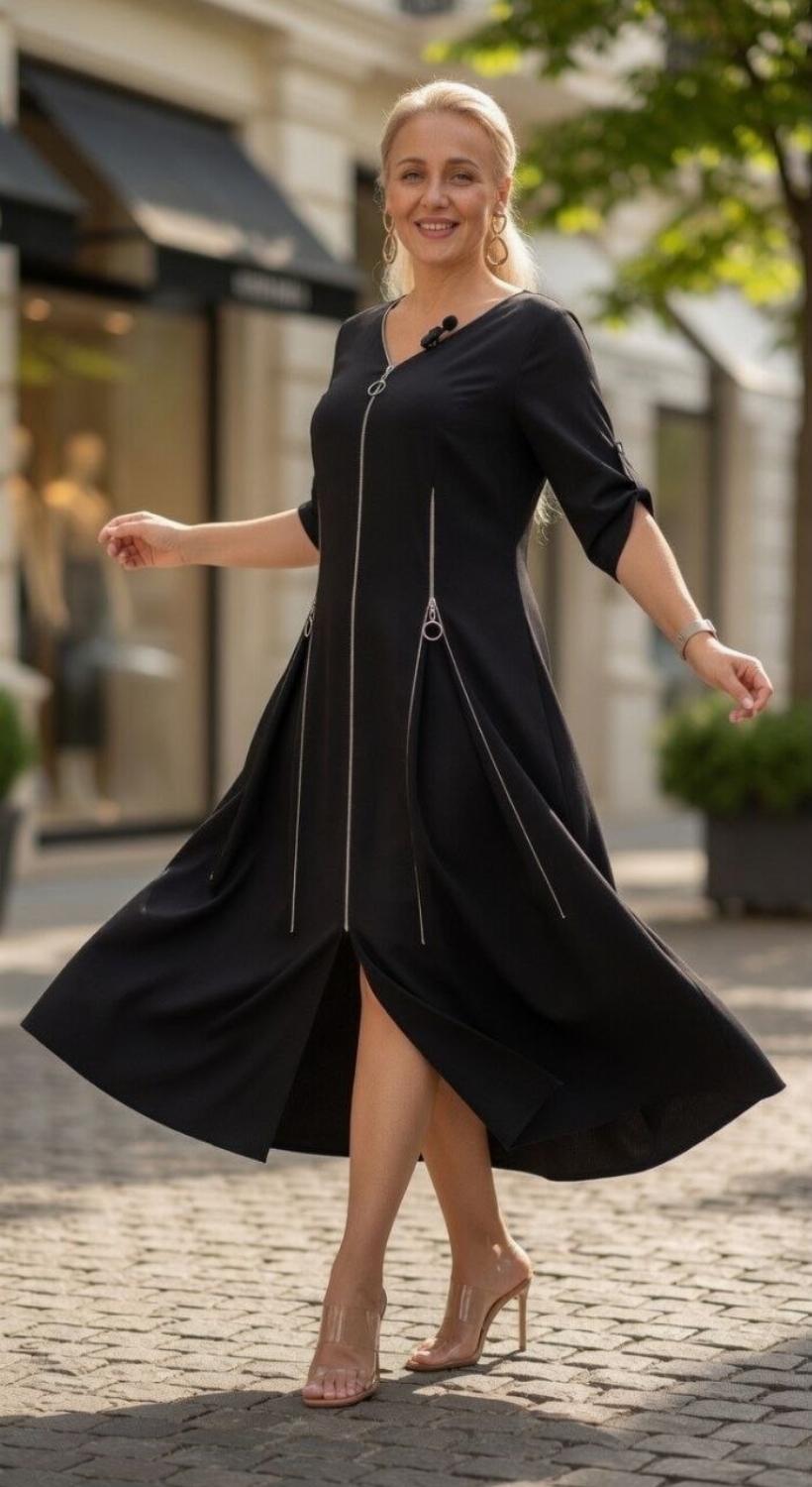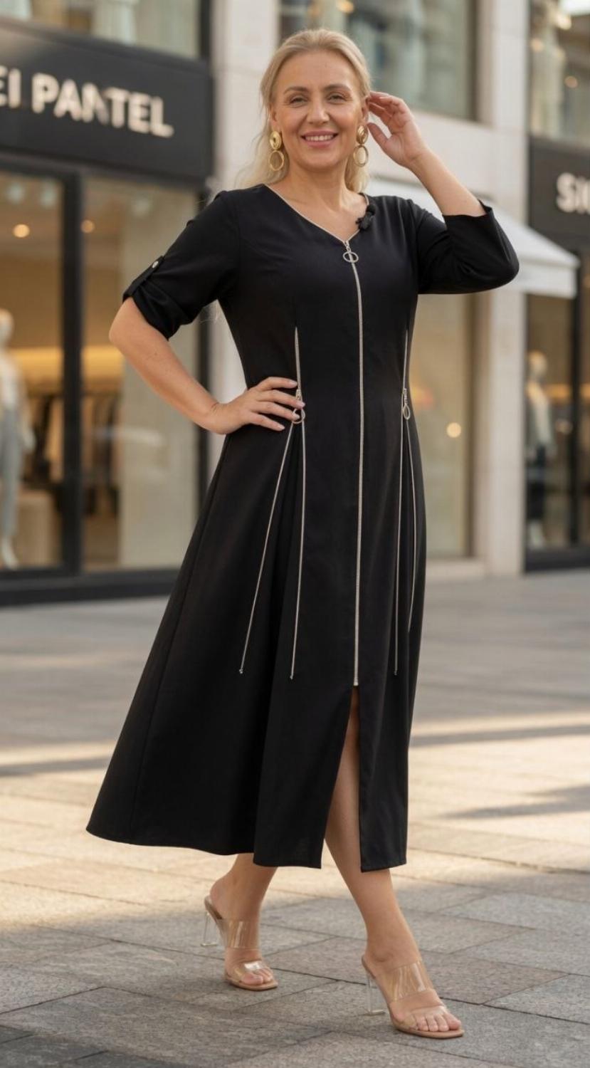 Секрет стрункості: Вертикальні блискавки візуально витягують силует, роблячи фігуру витонченою та гармонійною.