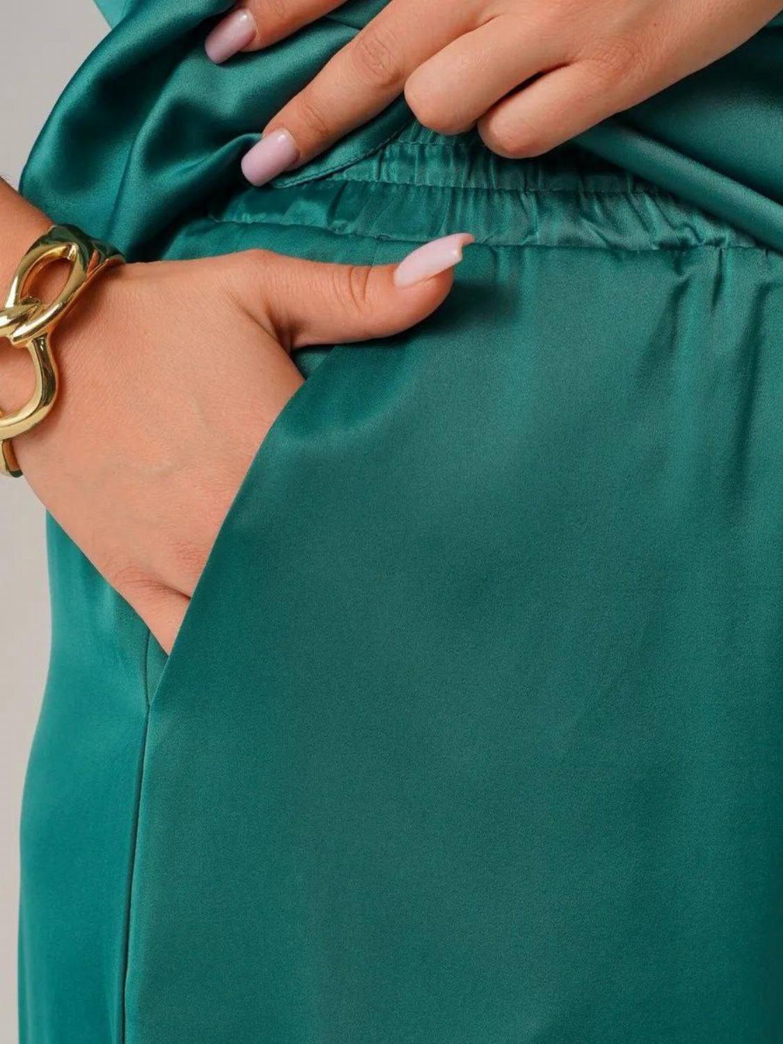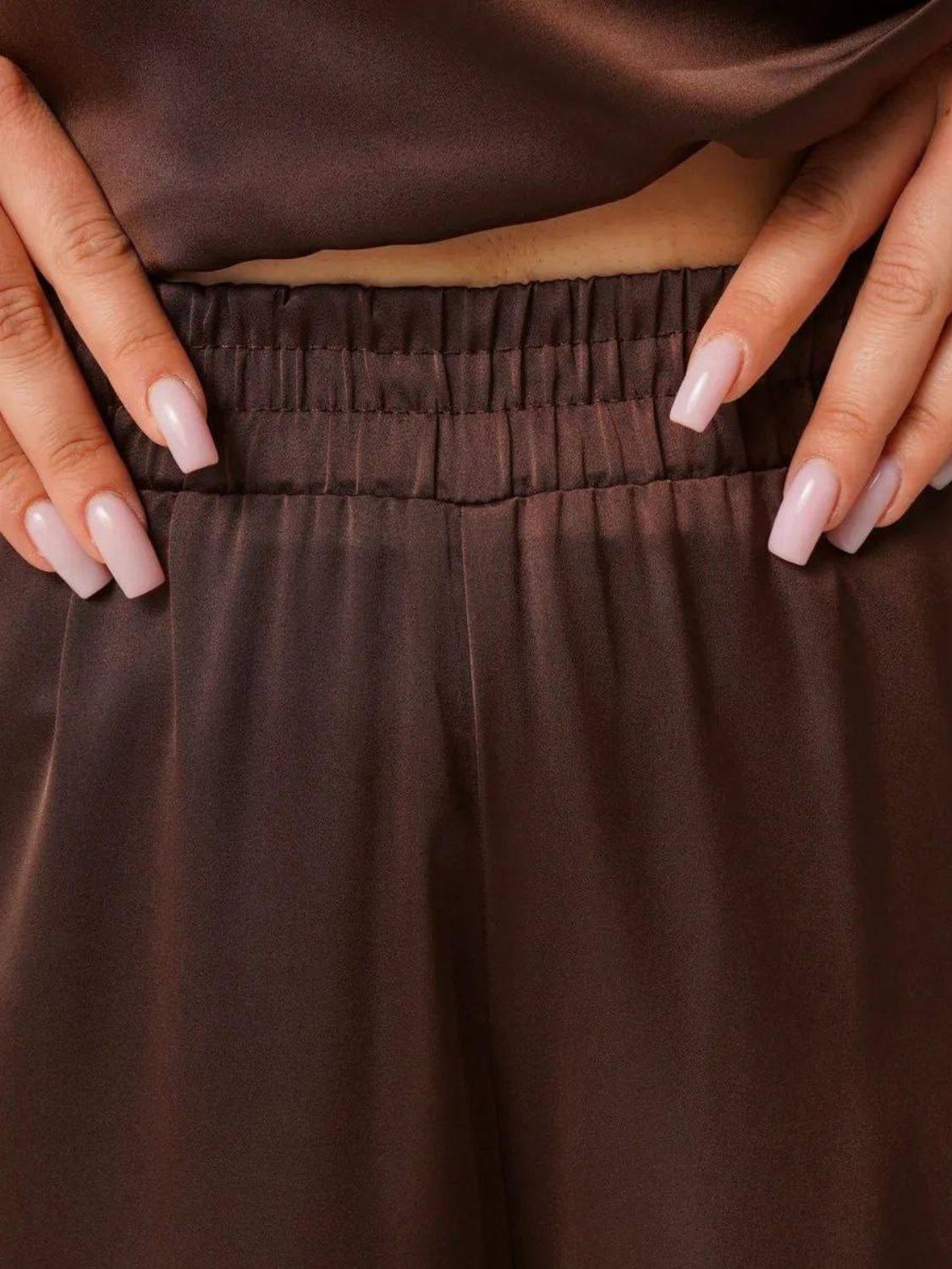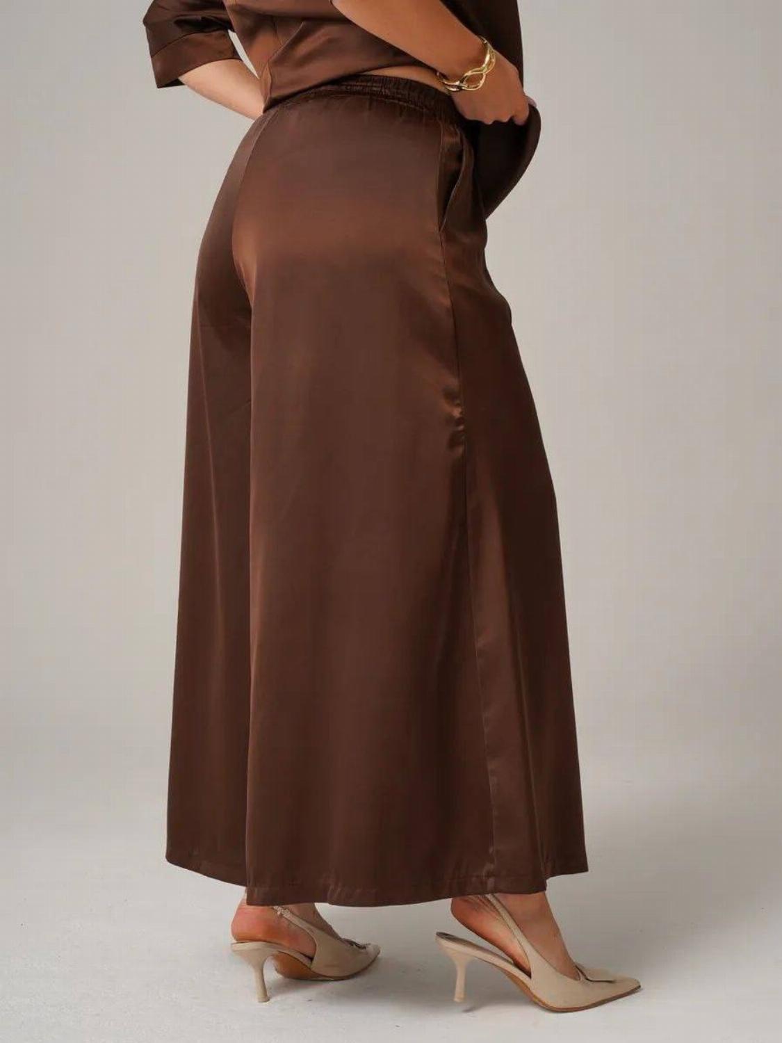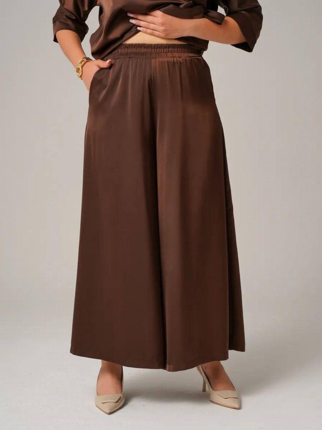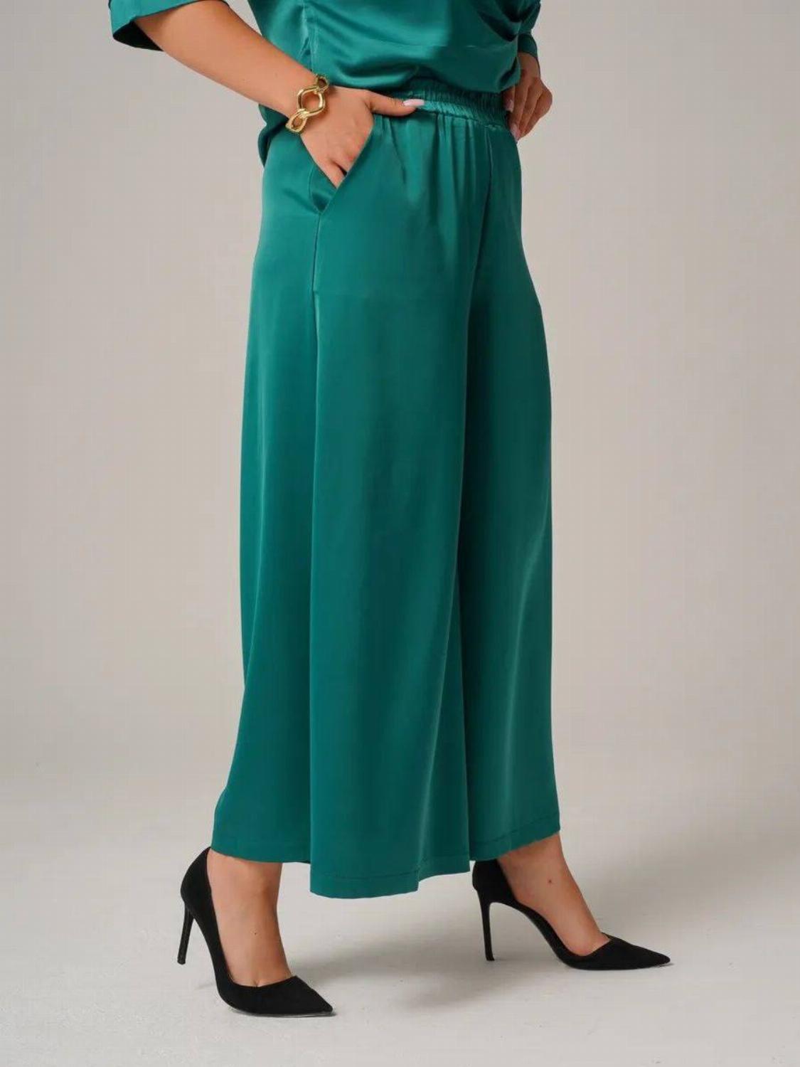 Костюм складається з блузи вільного крою із зав'язкою на талії, яка вигідно підкреслить твою фігуру, та широких штанів, які подарують свободу рухів. Цей комплект ідеально підійде як для офісу, так і для вечірнього виходу.