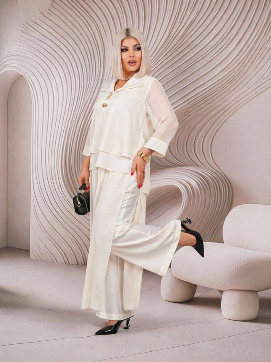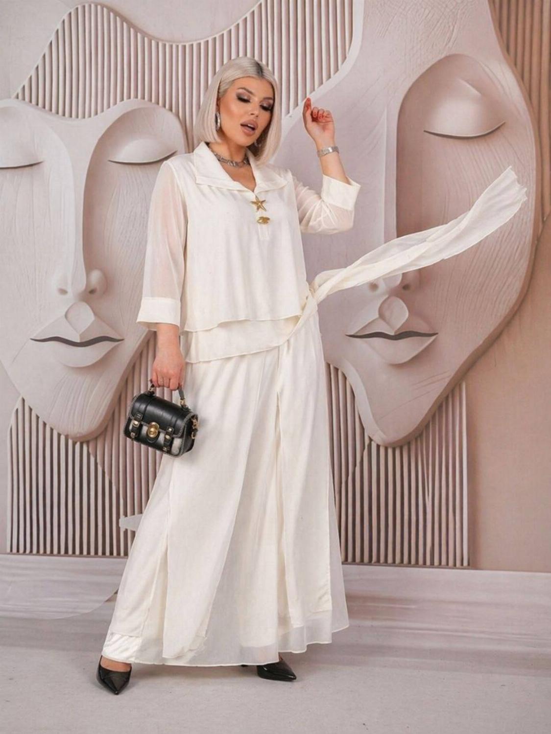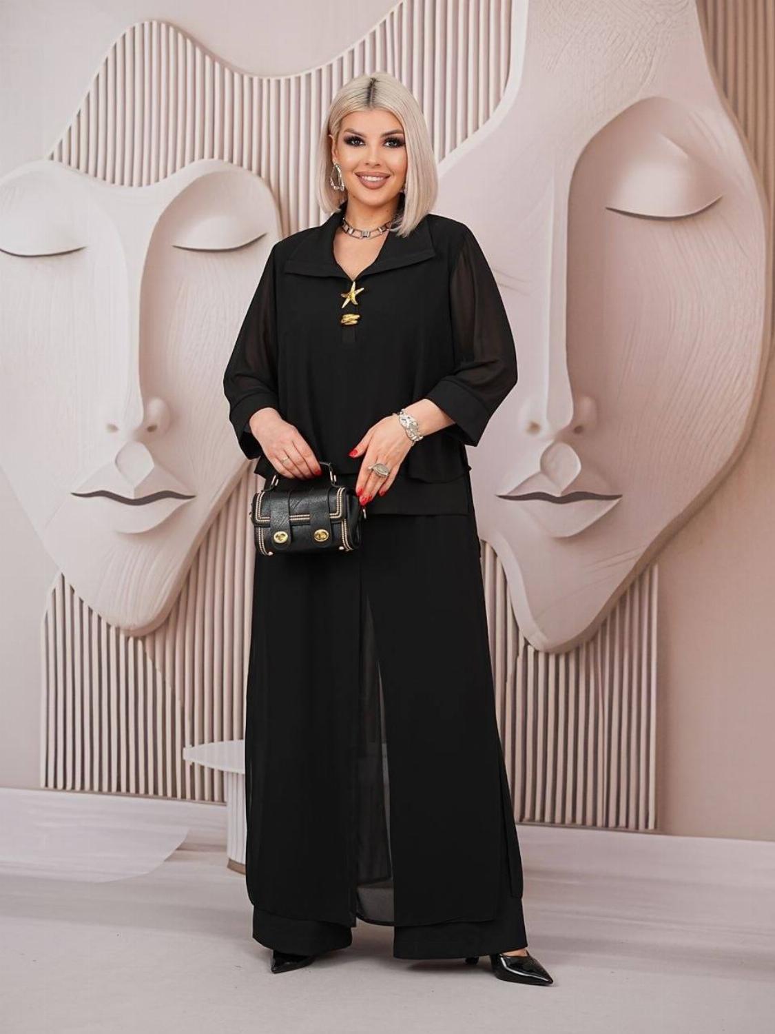Секрет стрункості: Унікальний крій із легким шифоновим шаром візуально витягує силует, створюючи гармонійний та витончений образ.