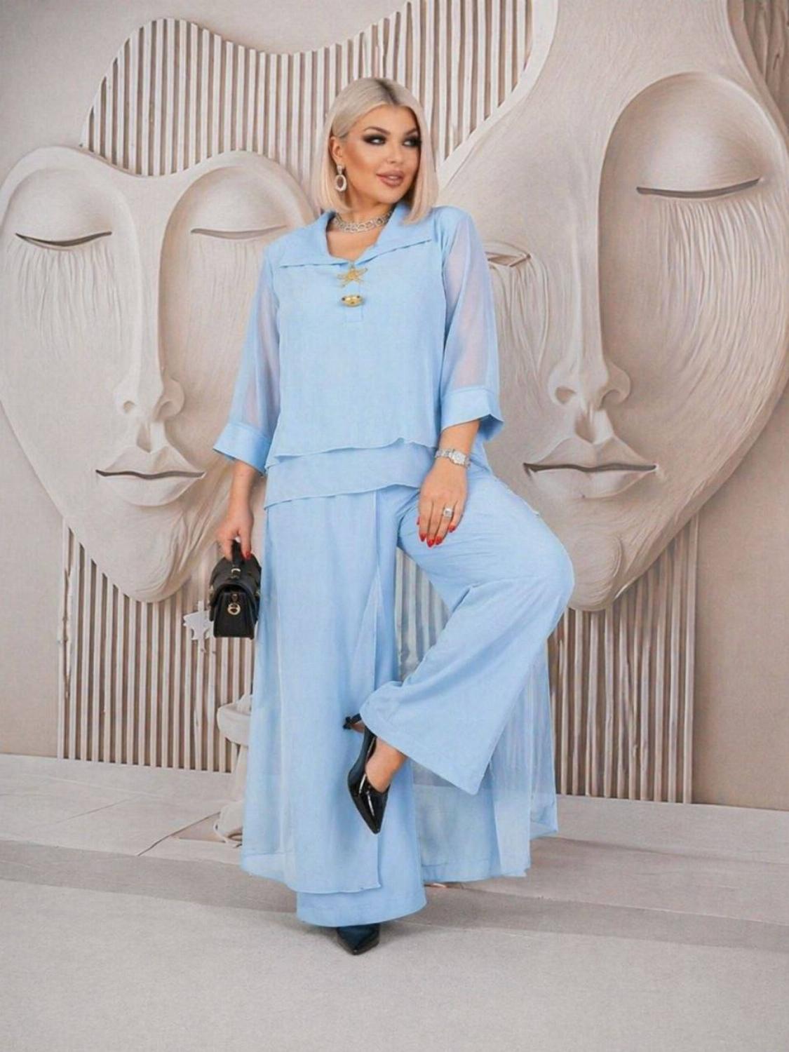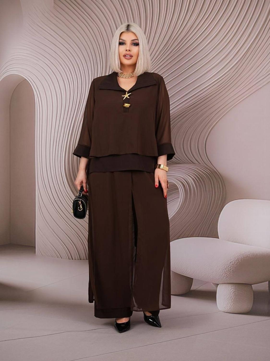 Комфорт у деталях: Тандем софту та шифону забезпечує легкість у теплу погоду, а стильні прикраси у комплекті роблять ваш образ завершеним.