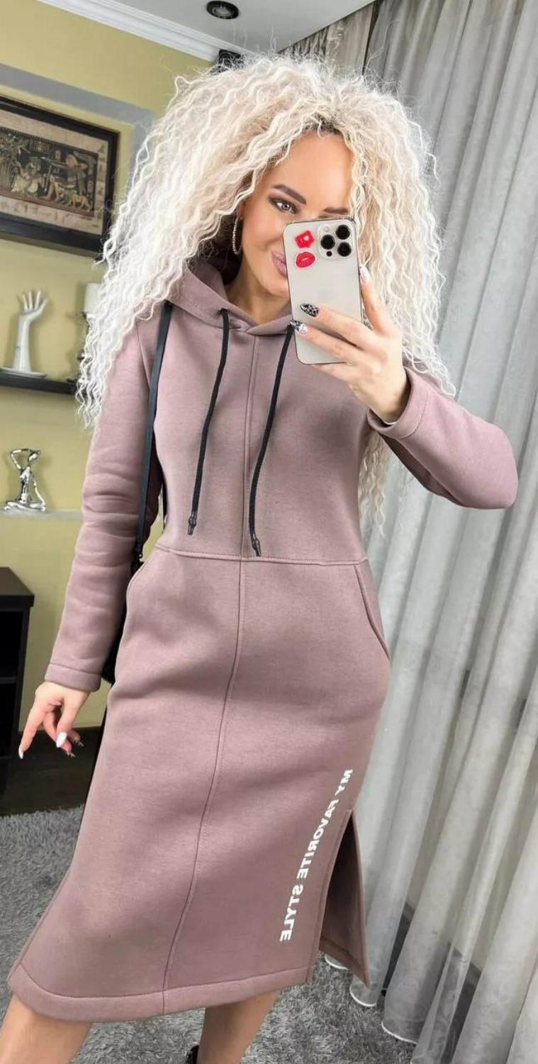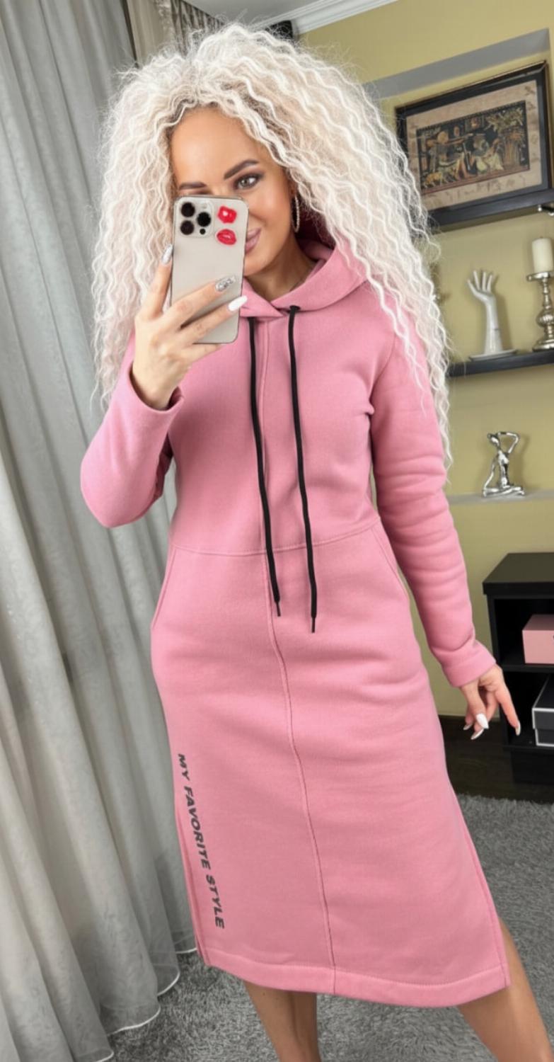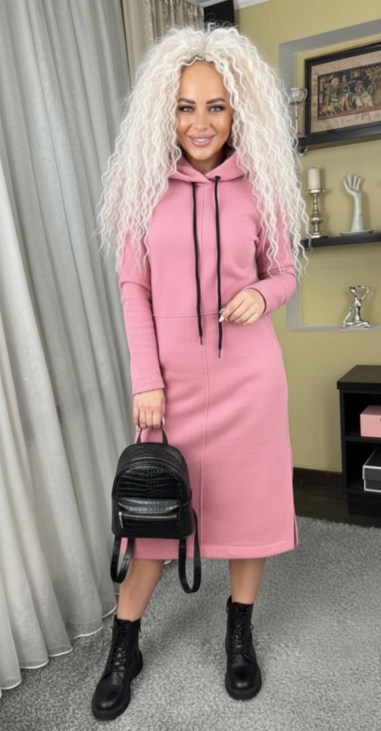 Забудь про компроміси між «тепло» та «красиво». Наша сукня-худі з трьохнитки на флісі створена для тих, хто цінує комфорт у русі та бездоганний вигляд.