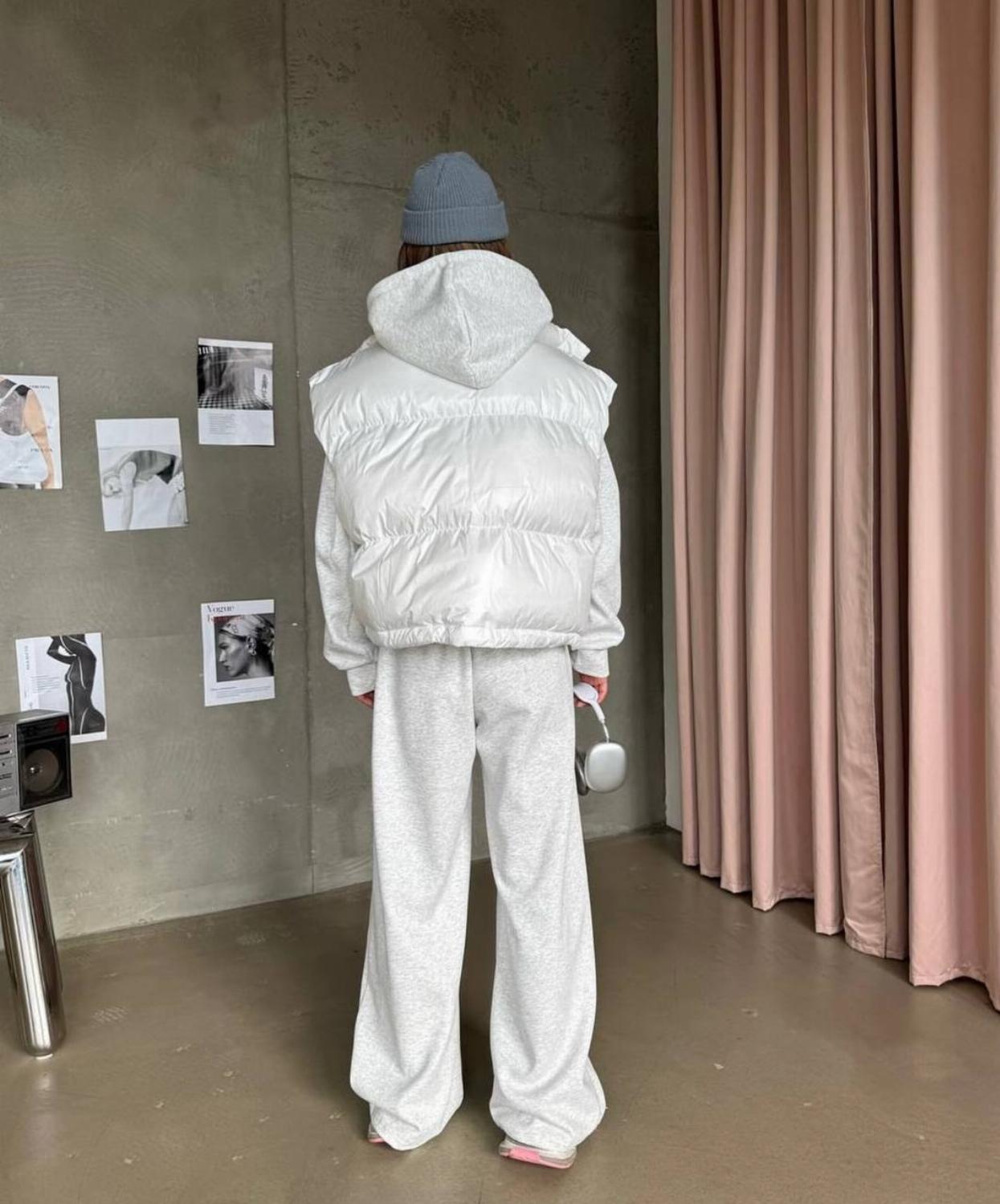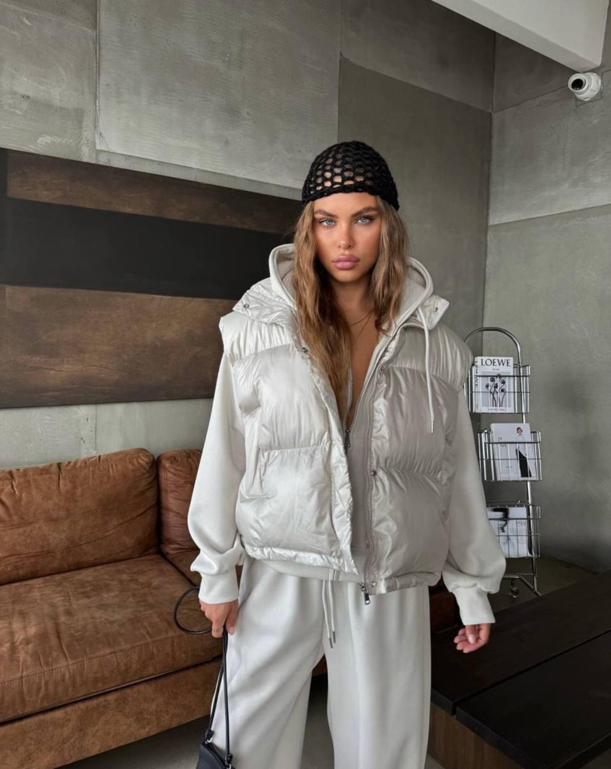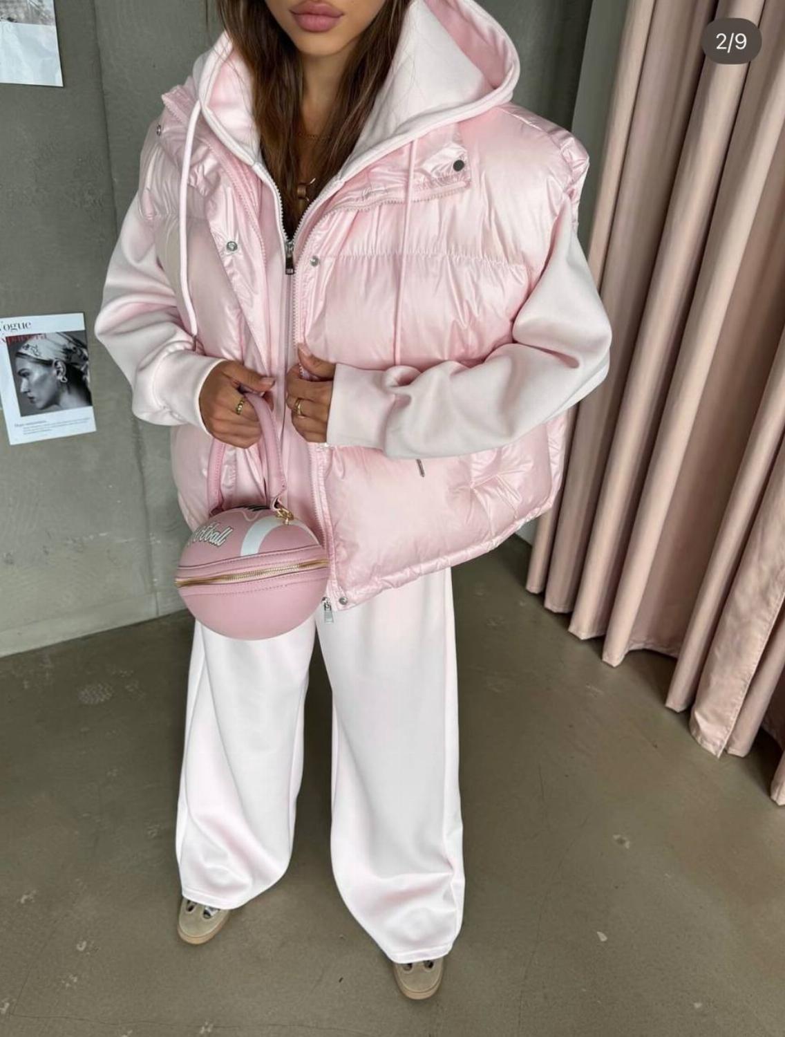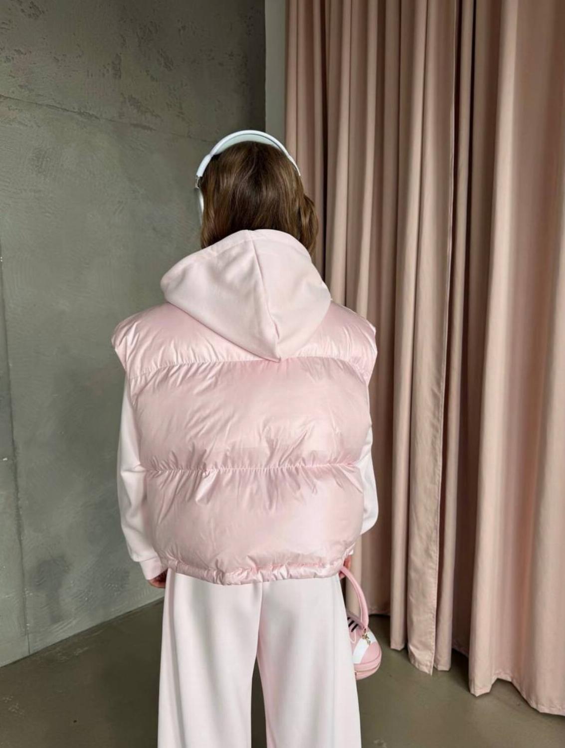 Жилетка: виконана з плащівки лаке, наповнена еко-пухом 200 – легка, але тепла, захищає від вітру та створює стильний акцент в образі.