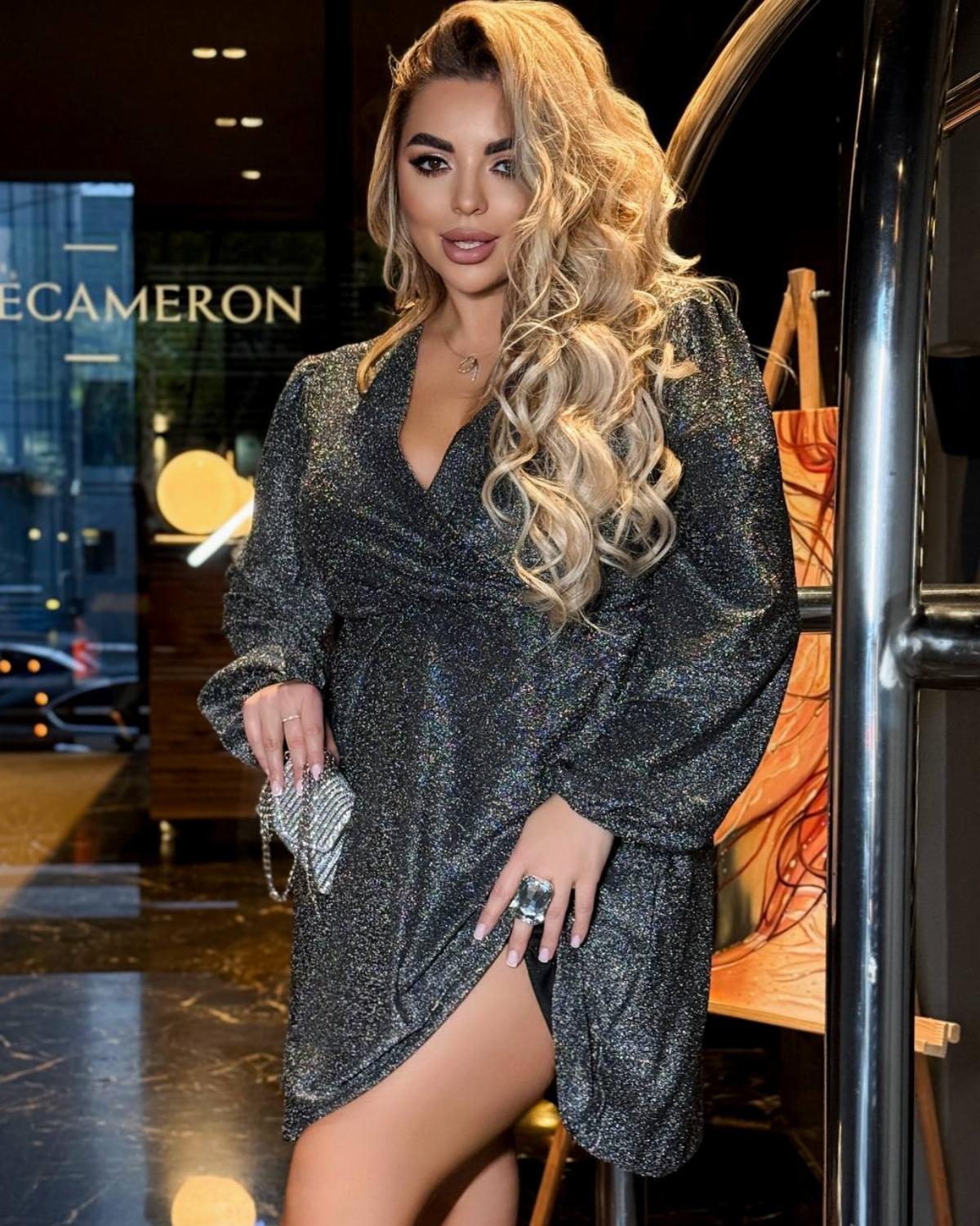 Блискуча сукня з люрексу на м’якій трикотажній основі — бездоганний вибір для тих, хто цінує комфорт і яскравий образ. Легкий матеріал красиво лягає по фігурі та додає впевненості у кожному кроці.