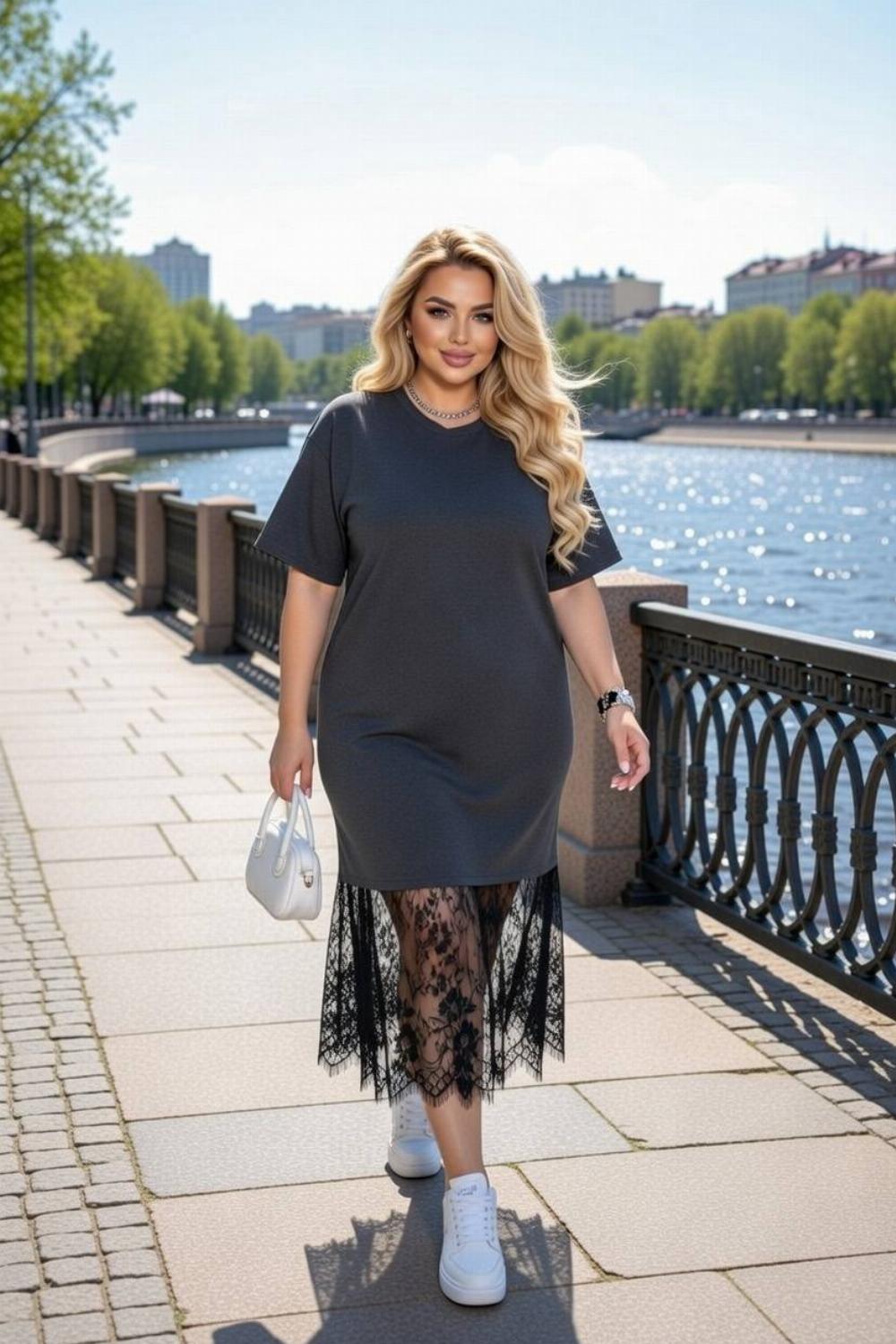Пропонуємо вам стильну та зручну сукню з турецького куліру, оздоблену вишуканим французьким мереживом по подолу. Ідеальний вибір для вечірніх прогулянок, побачень або святкових зустрічей.