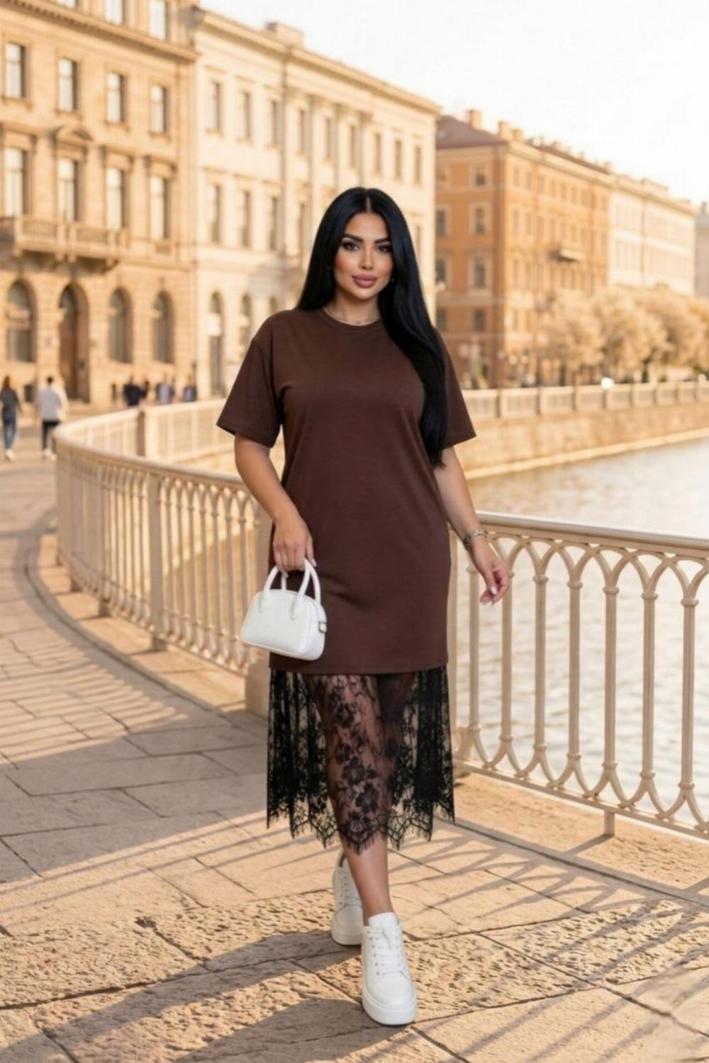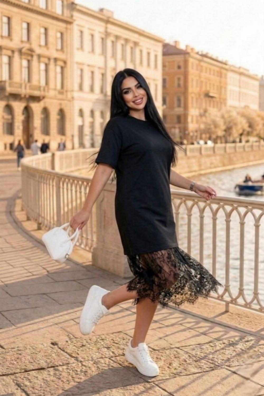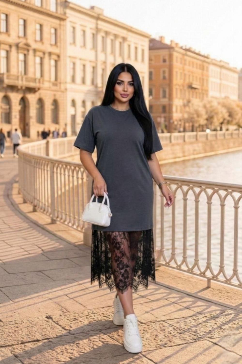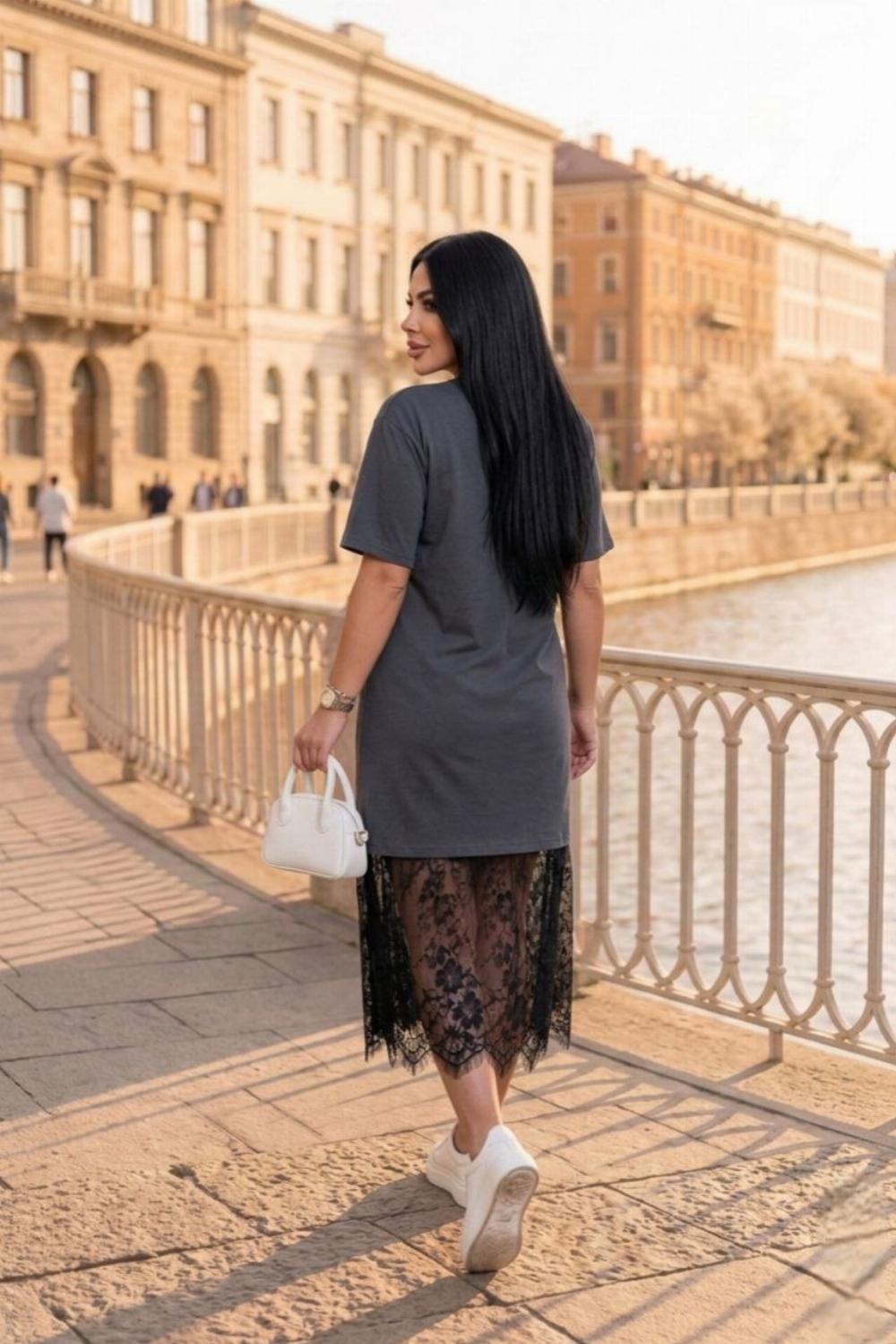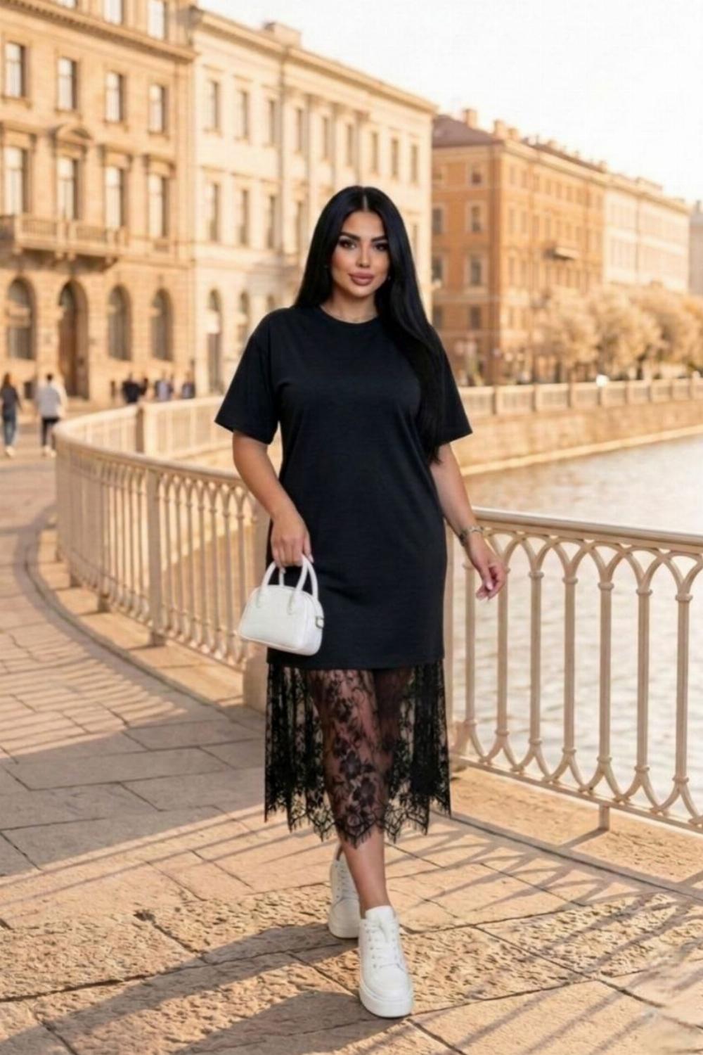 Пропонуємо вам стильну та зручну сукню з турецького куліру, оздоблену вишуканим французьким мереживом по подолу. Ідеальний вибір для вечірніх прогулянок, побачень або святкових зустрічей.