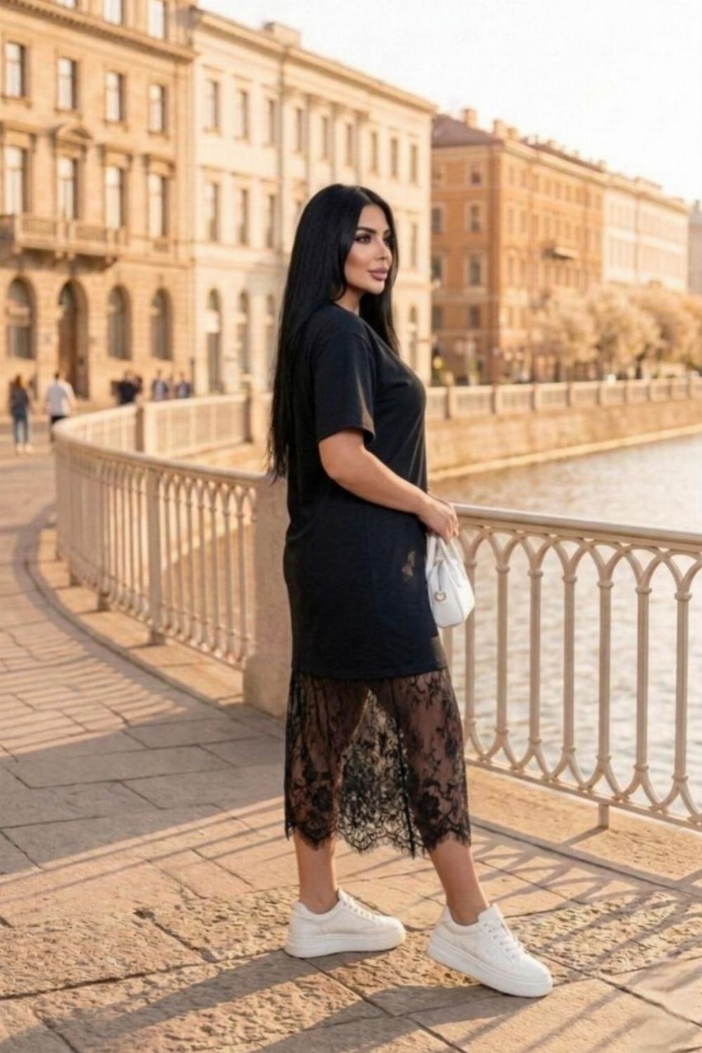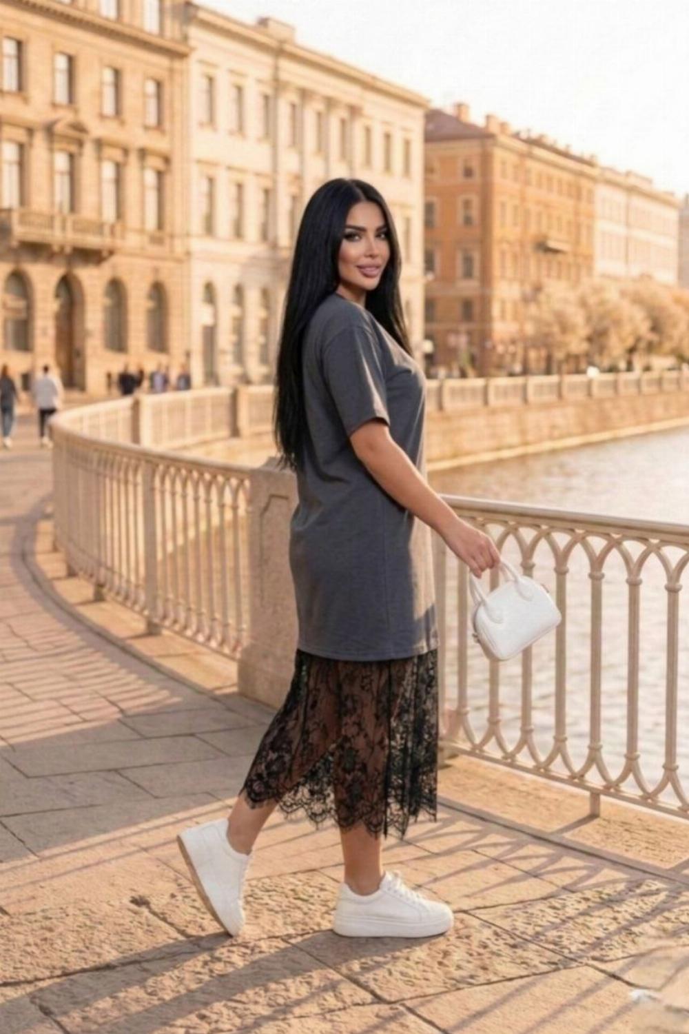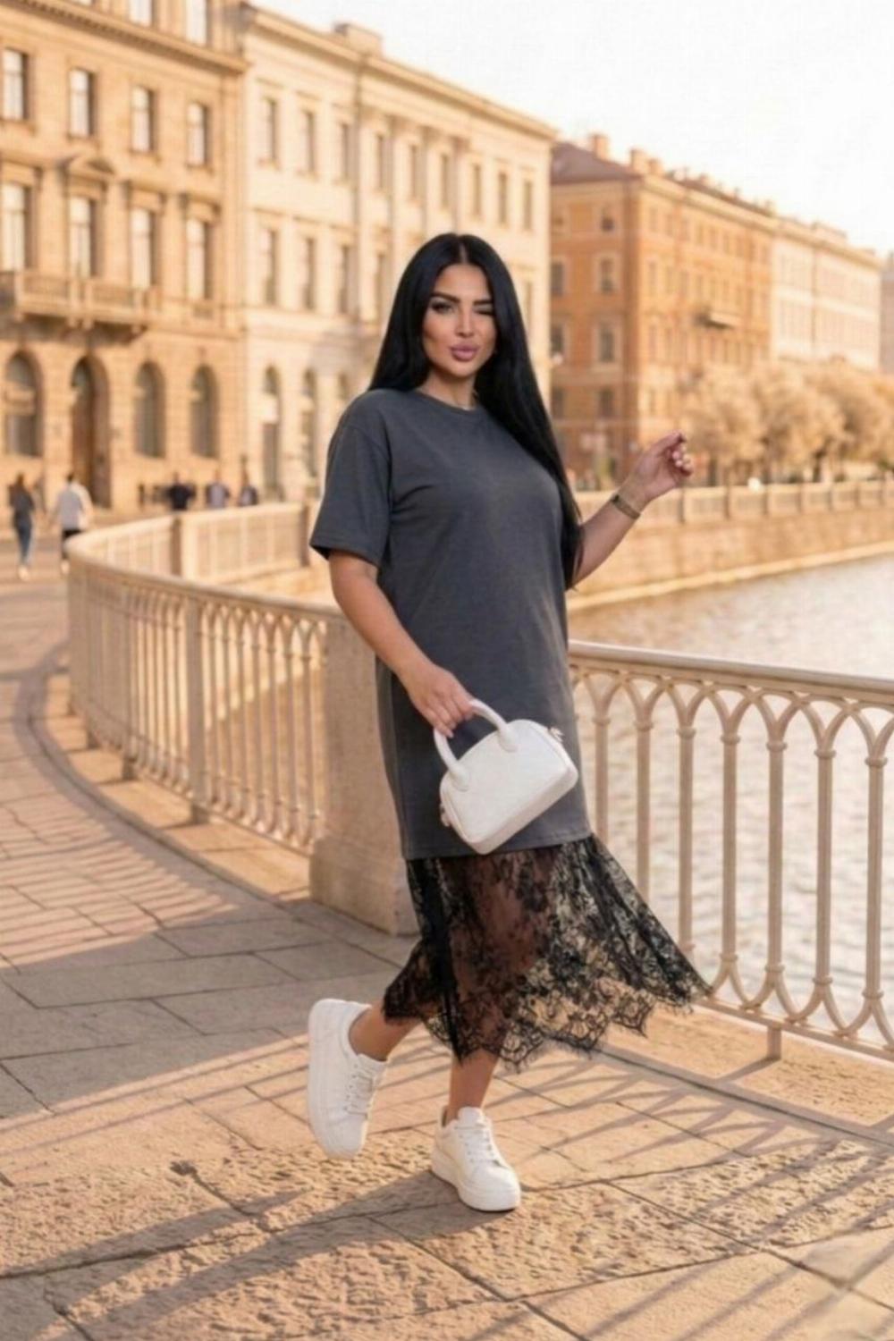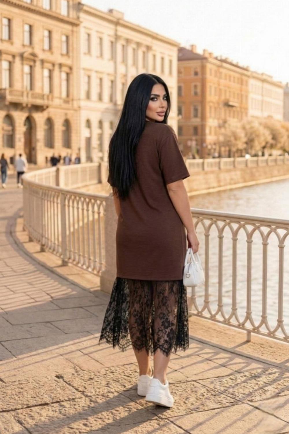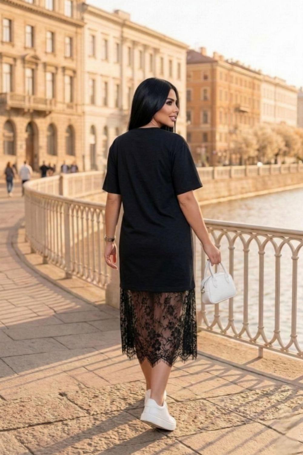 Пропонуємо вам стильну та зручну сукню з турецького куліру, оздоблену вишуканим французьким мереживом по подолу. Ідеальний вибір для вечірніх прогулянок, побачень або святкових зустрічей.