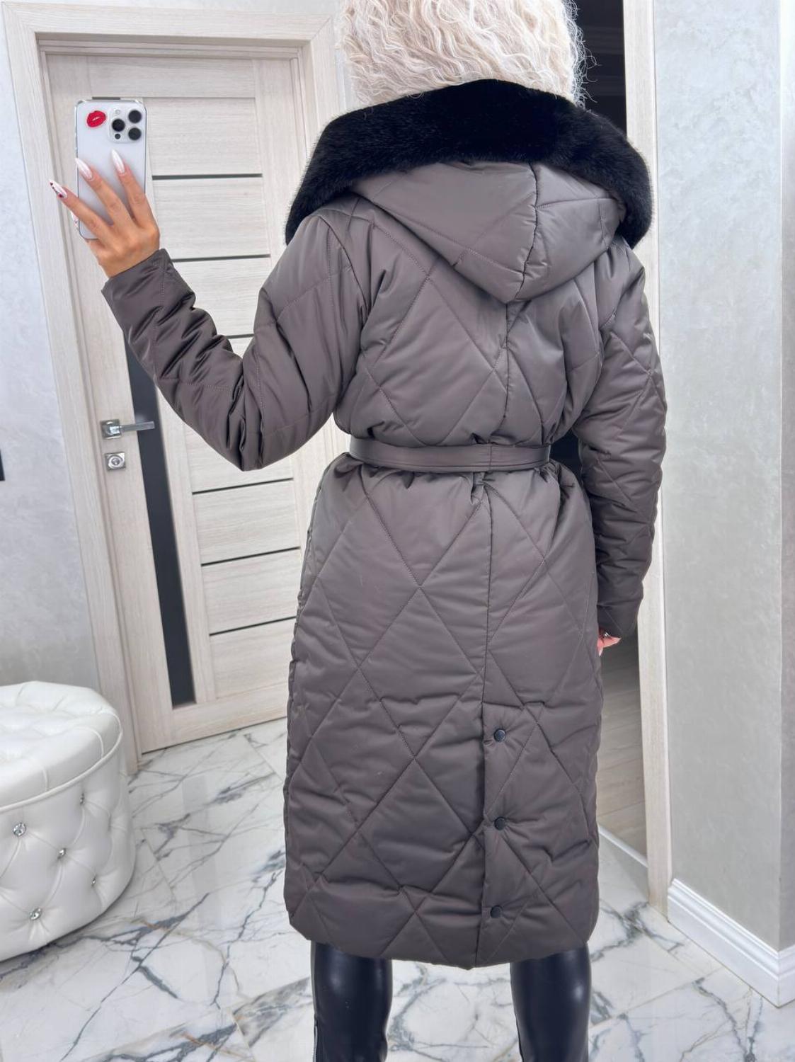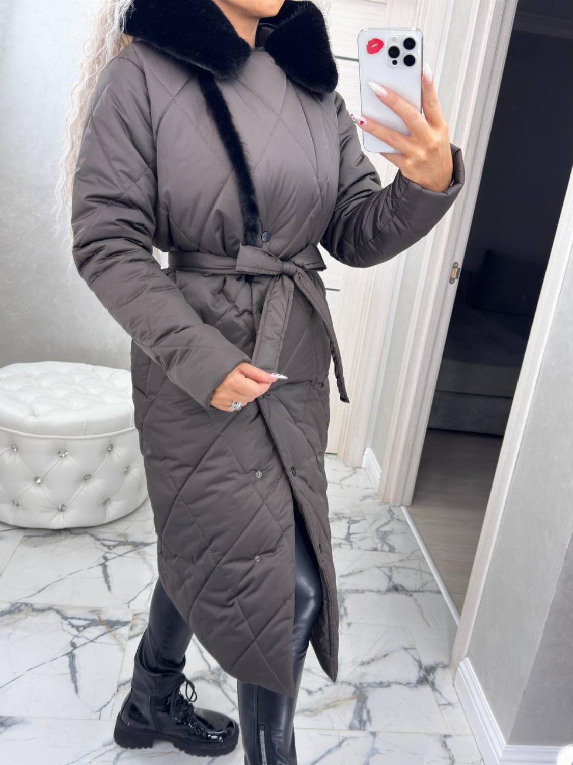 Виготовлене з міцної плащівки та утеплене сучасним наповнювачем силікон 250, що надійно зберігає тепло, залишаючись легким і комфортним. Подовжений фасон із поясом візуально витягує силует та підкреслює жіночність.
