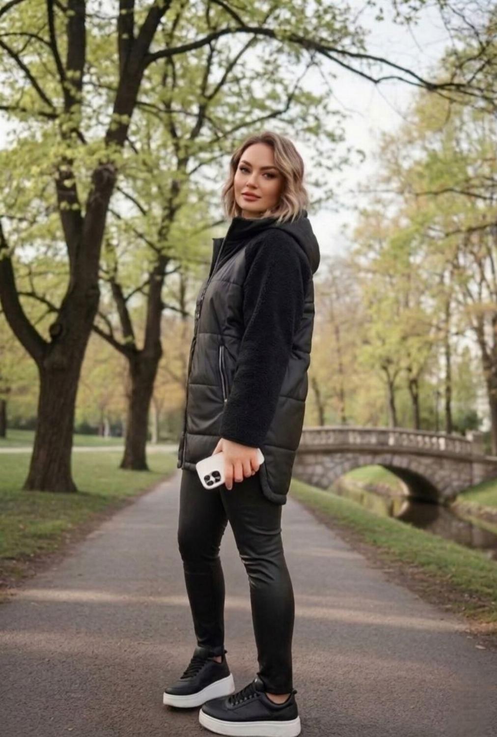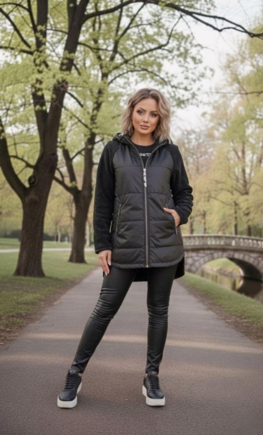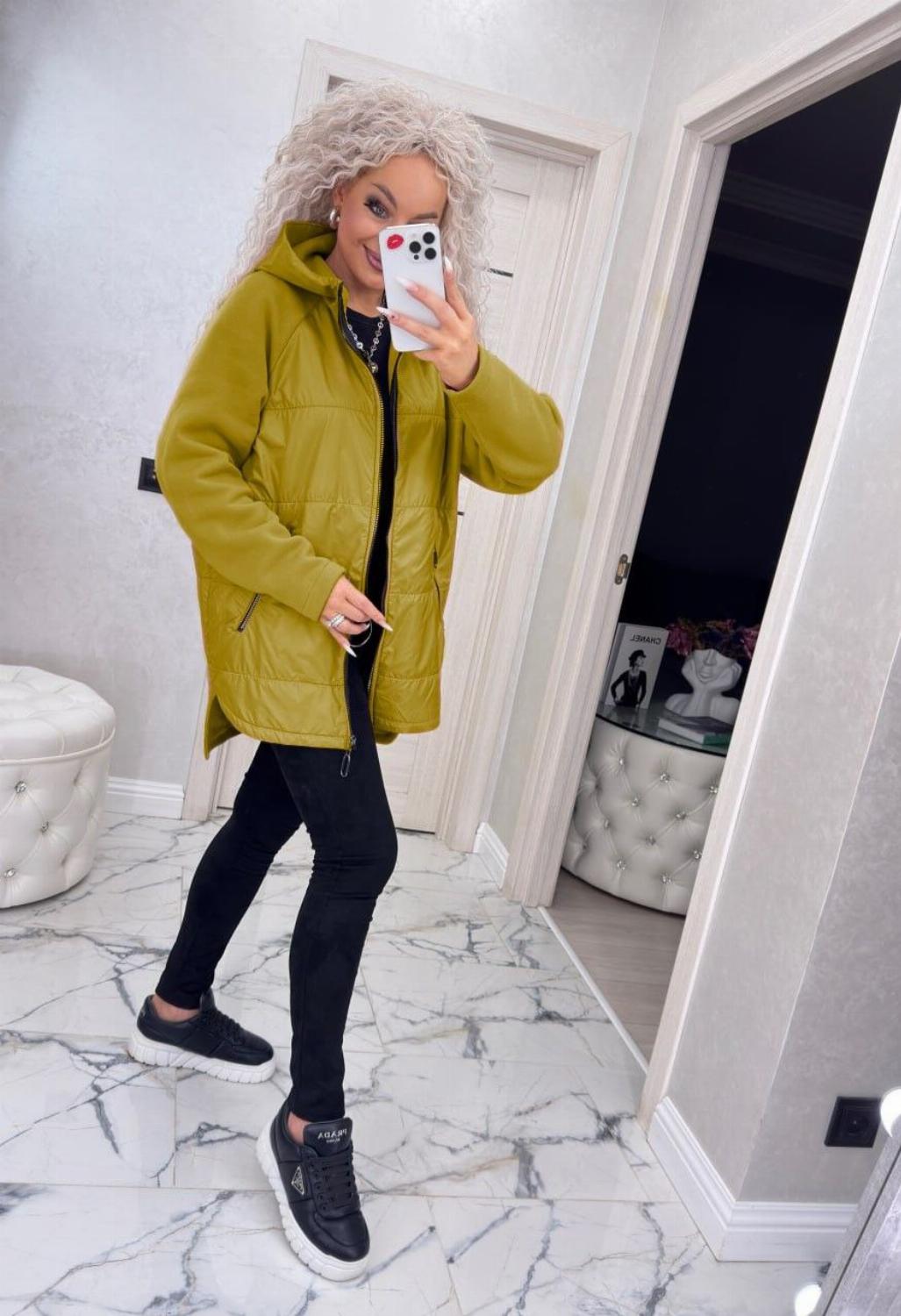 Стильна жіноча куртка в стилі оверсайз чудово доповнить ваш модний лук. Виконана з якісної турецької тринитки зі вставками із плащової тканини. Великий вшитий капюшон захистить від холодів та дощу, з обох боків кишені на змійках. Спинка подовжена. Дуже зручна та практична, підійде щодня в осінньо-весняний період.