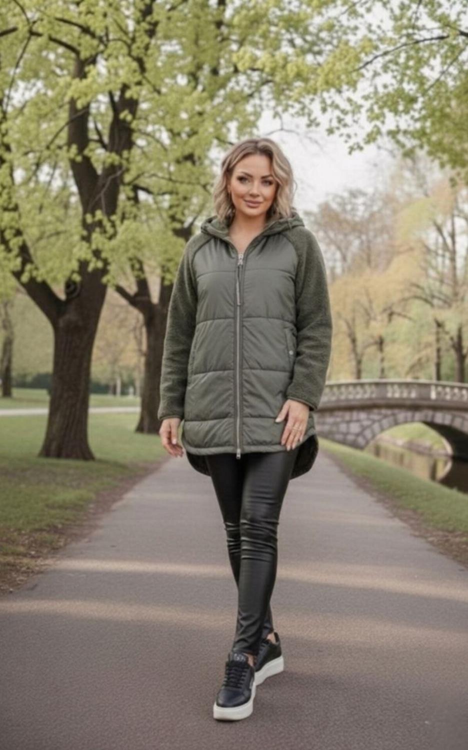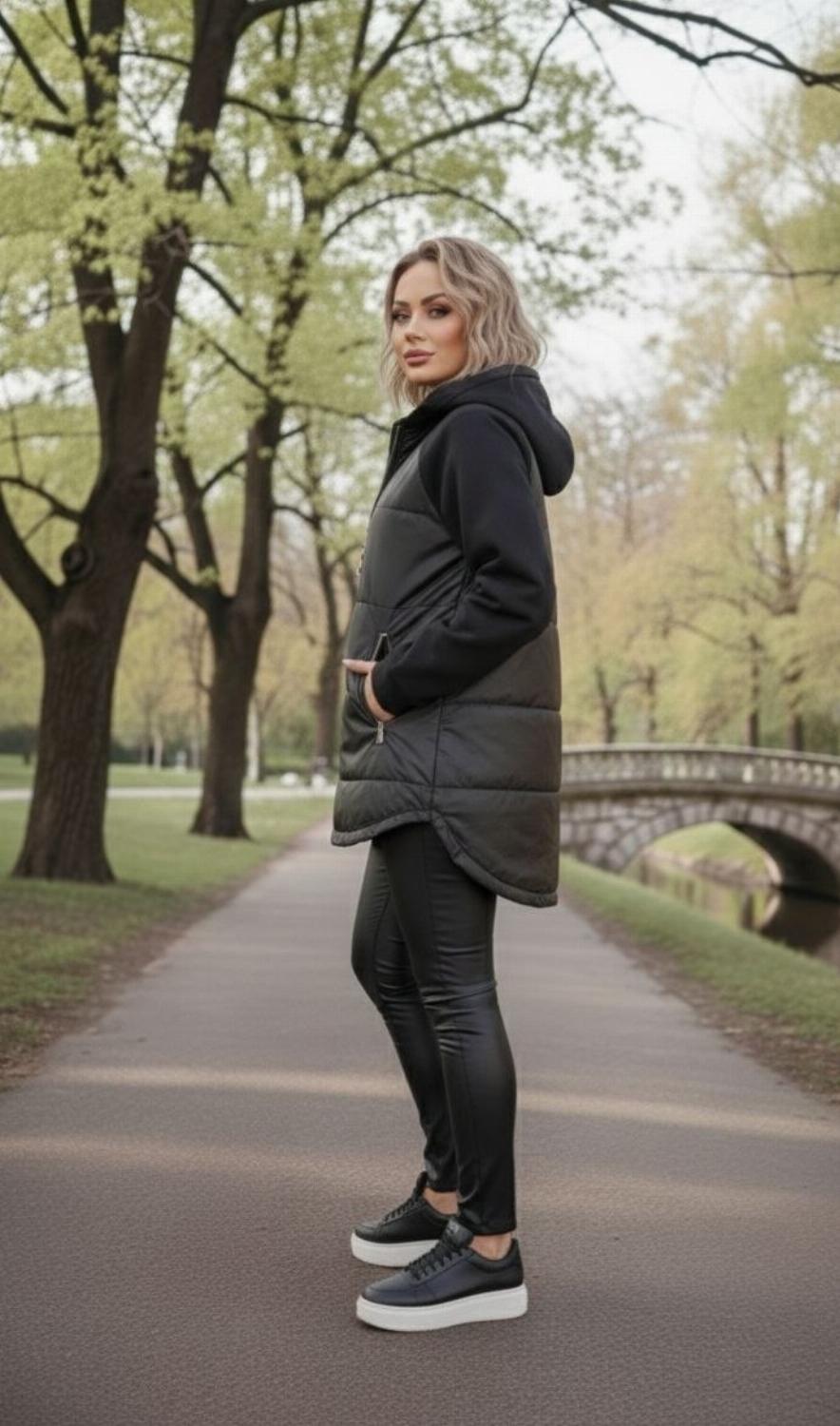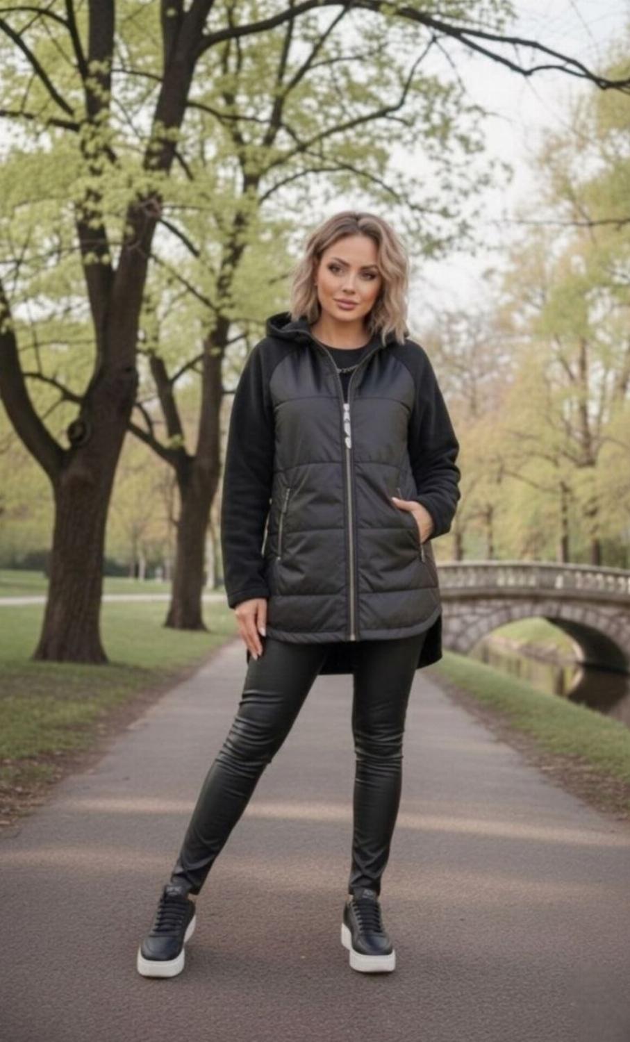 Стильна жіноча куртка в стилі оверсайз чудово доповнить ваш модний лук. Виконана з якісної турецької тринитки зі вставками із плащової тканини. Великий вшитий капюшон захистить від холодів та дощу, з обох боків кишені на змійках. Спинка подовжена. Дуже зручна та практична, підійде щодня в осінньо-весняний період.