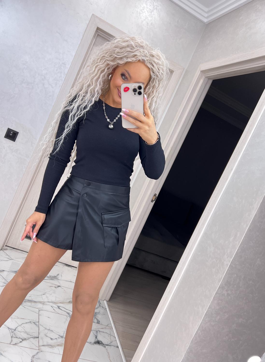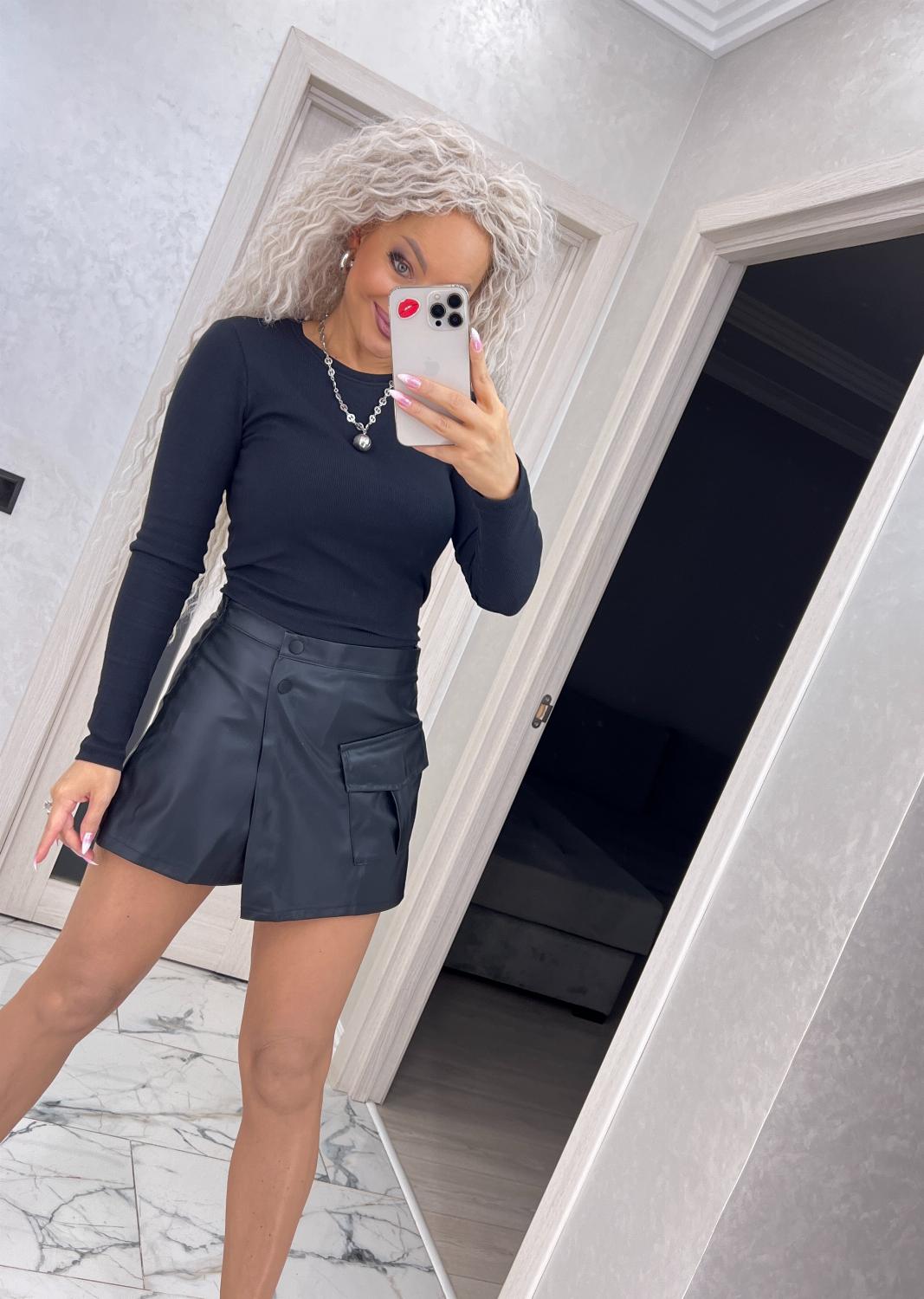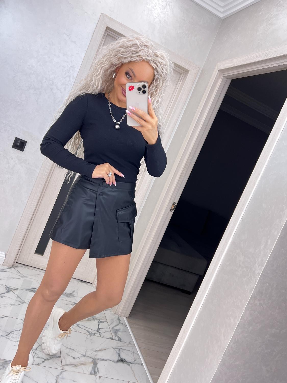 Спідниця-шорти з еко-шкіри на трикотажній основі — поєднання трендового дизайну та максимального комфорту.