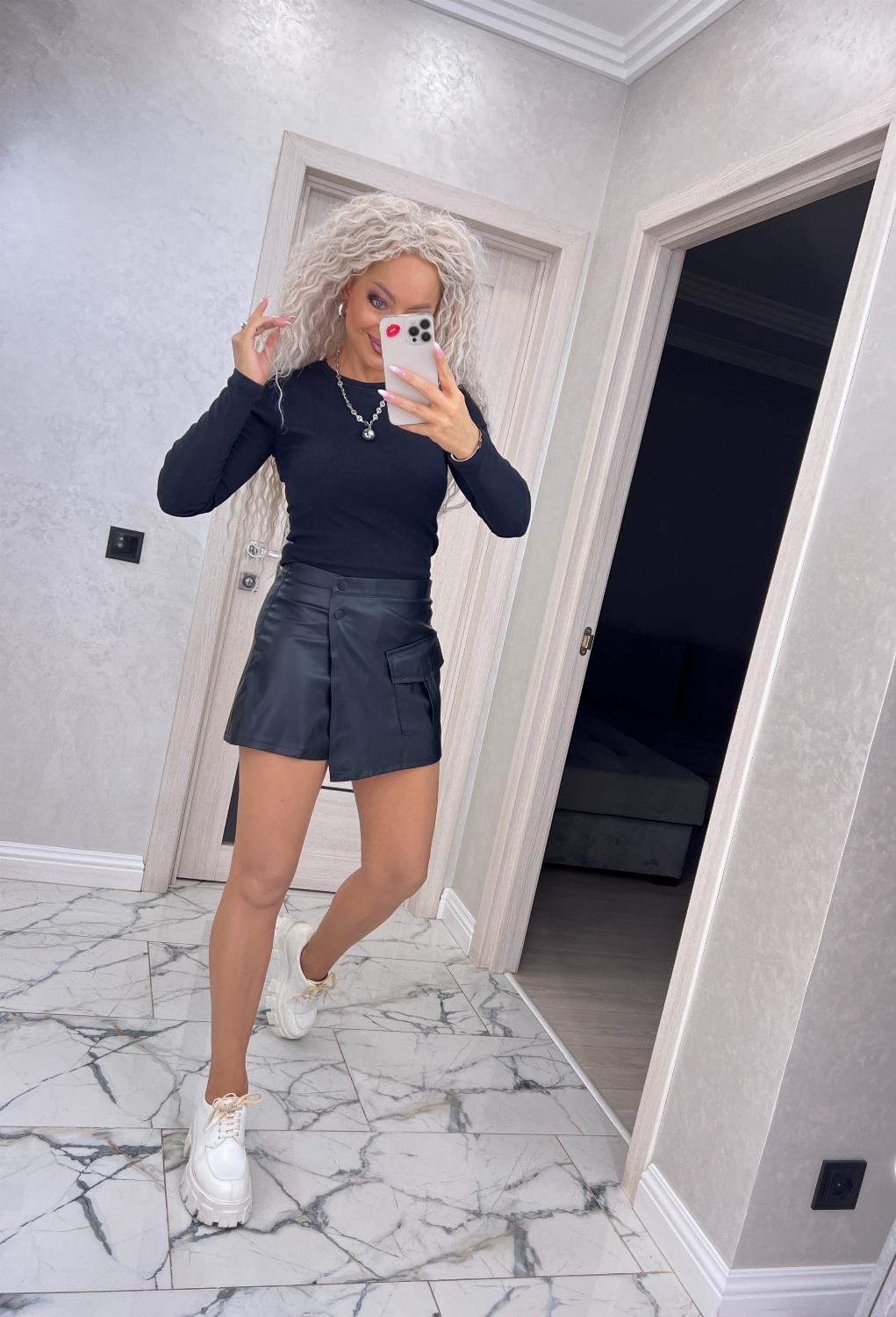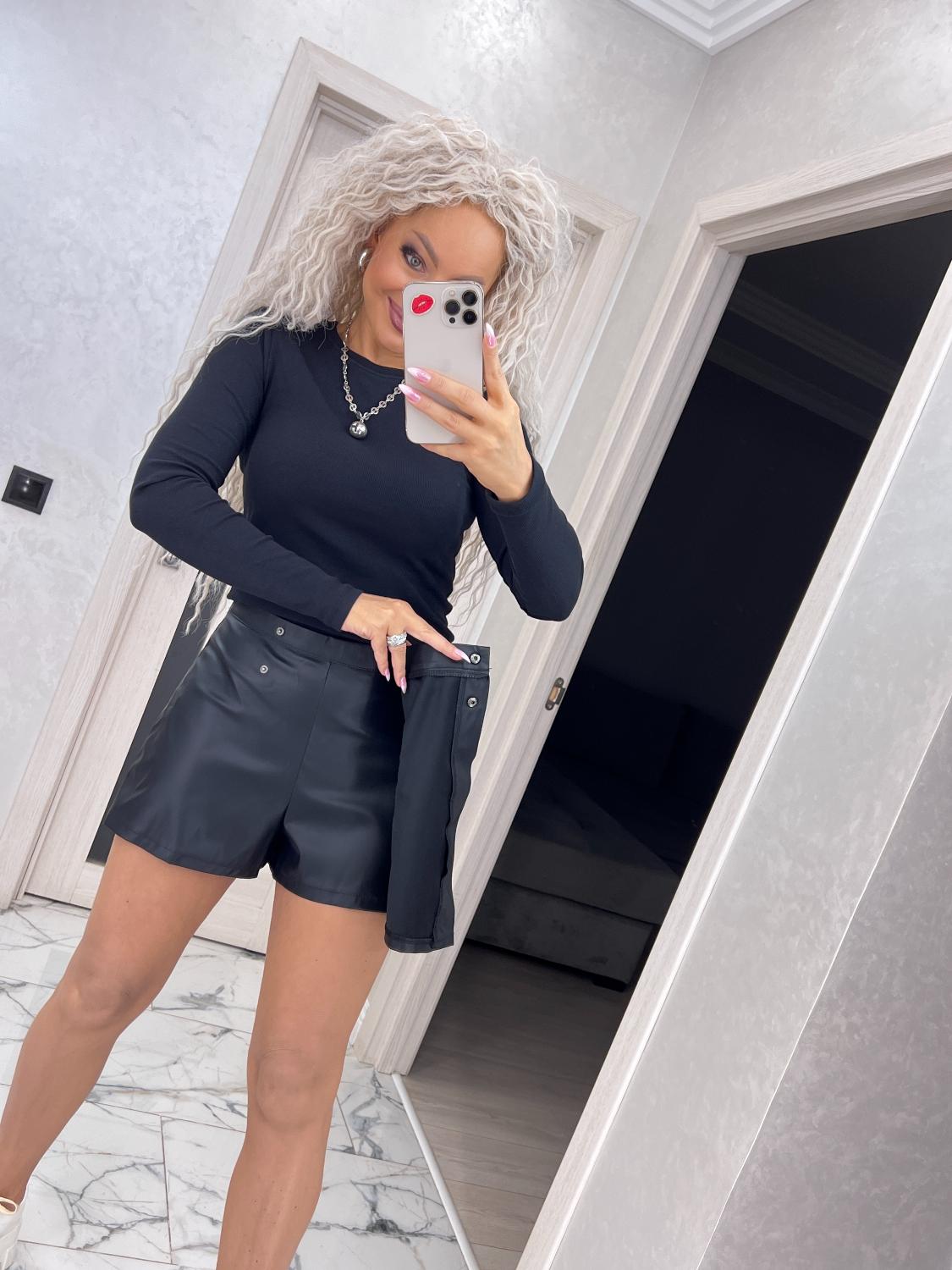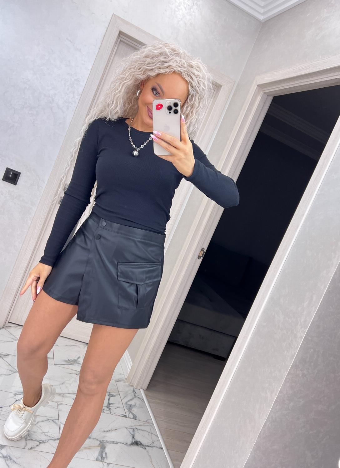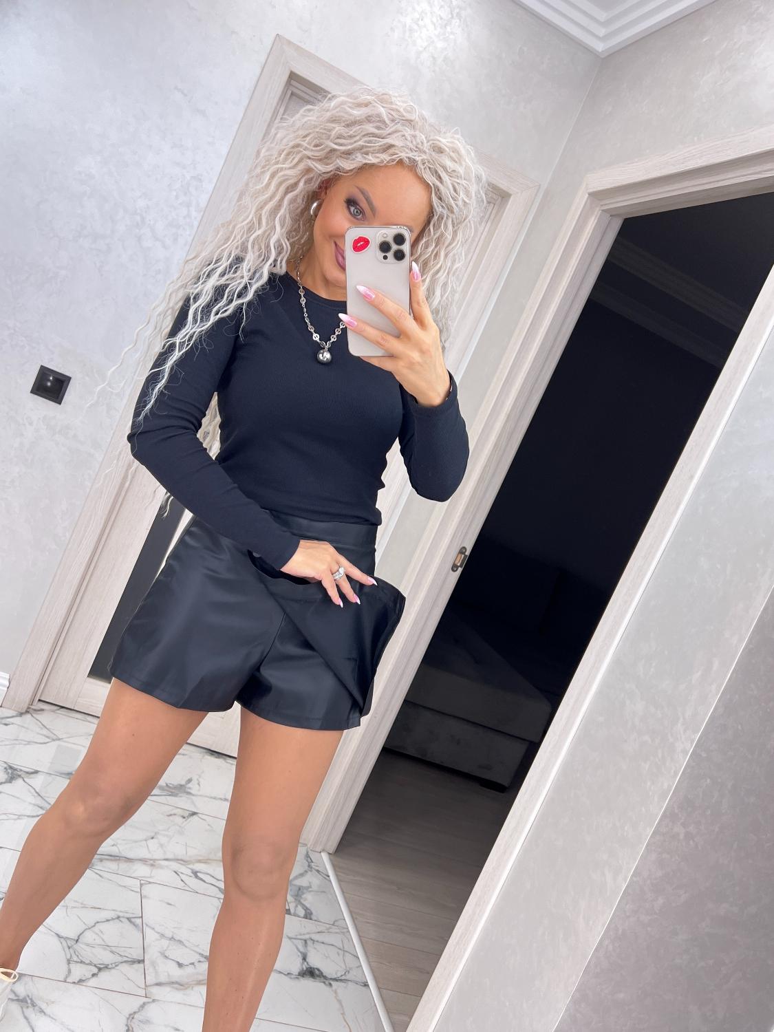 Спідниця-шорти з еко-шкіри на трикотажній основі — поєднання трендового дизайну та максимального комфорту.